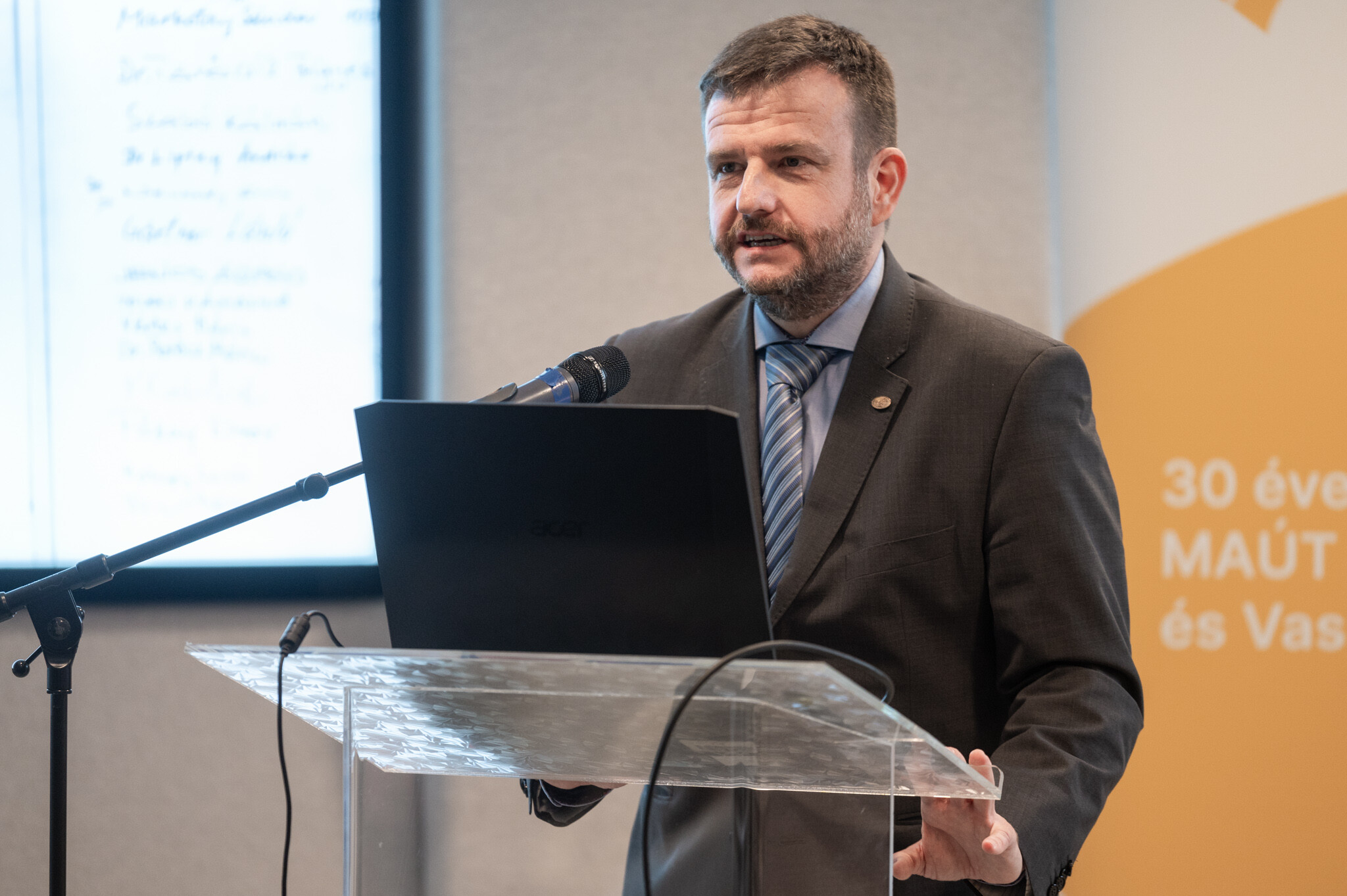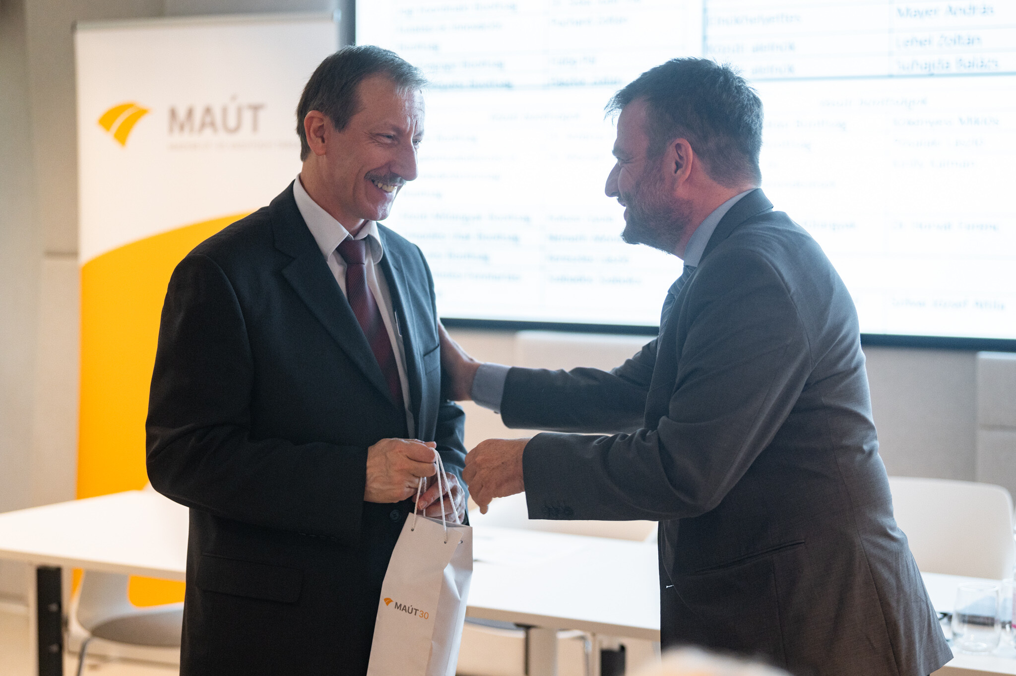 A szünet után a MAÚT Alapítói találkozóján készült hangulatos kisfilmmel lepték meg a közönséget, amiben az alapító tagok közül néhányan küldenek jókívánságokat a szervezetnek a 30. évforduló alkalmából, majd Nyiri Szabolcs elnök megtartotta elnöki beszámolóját.