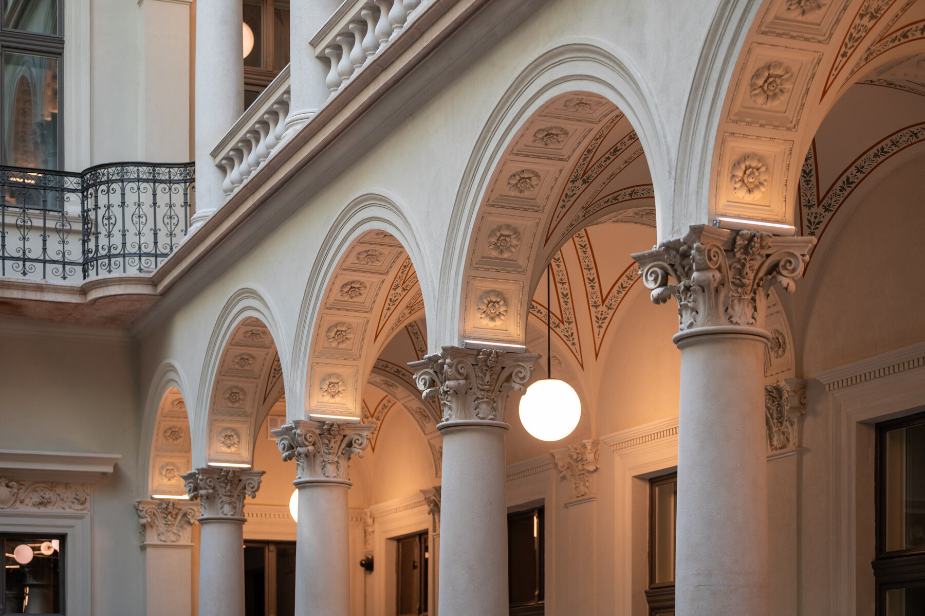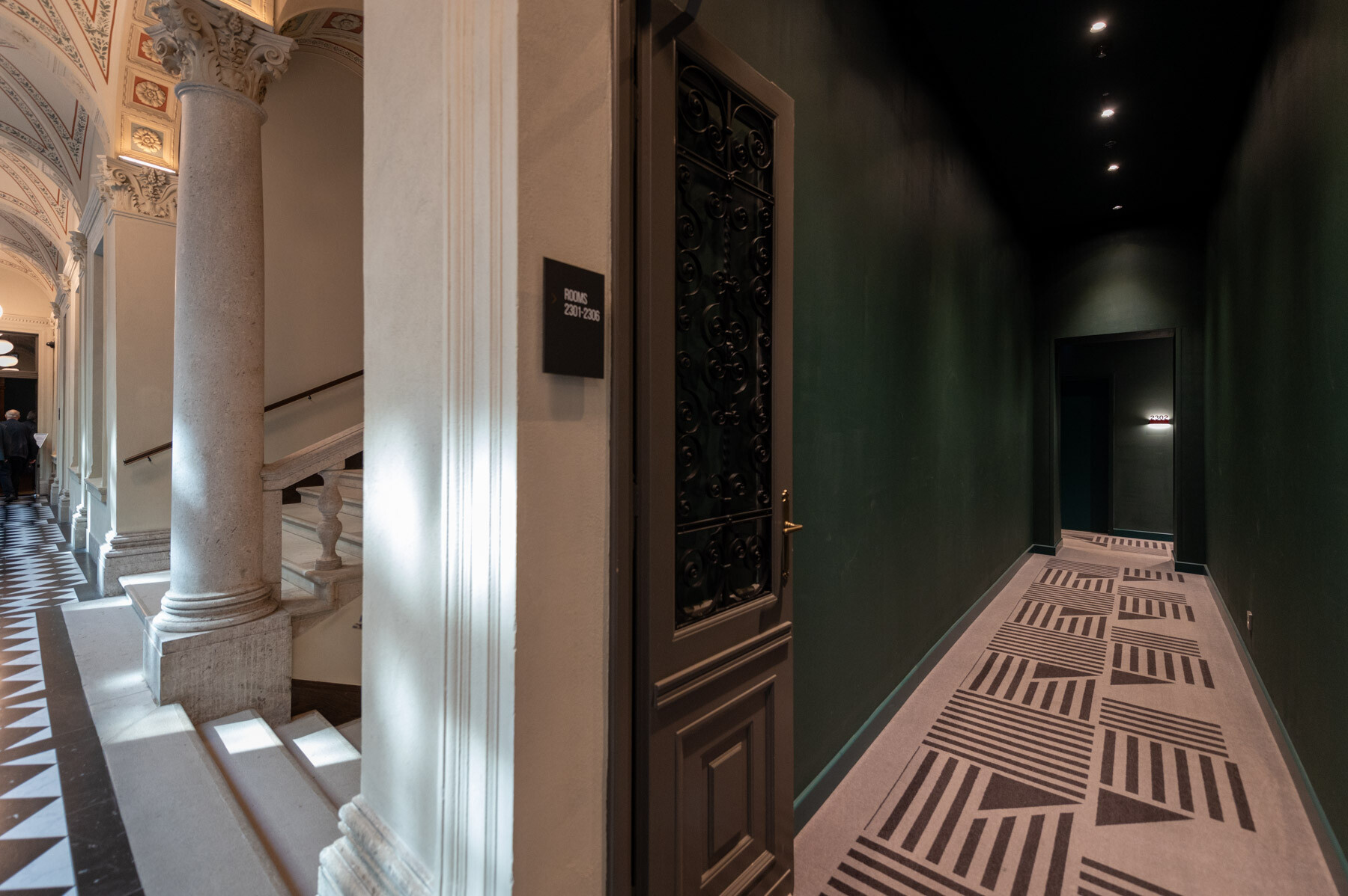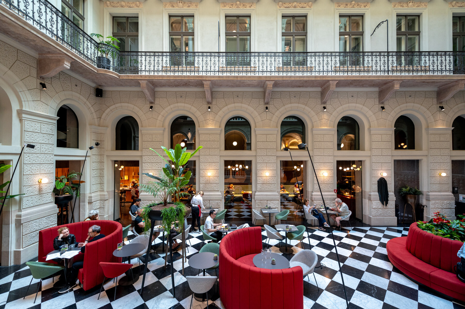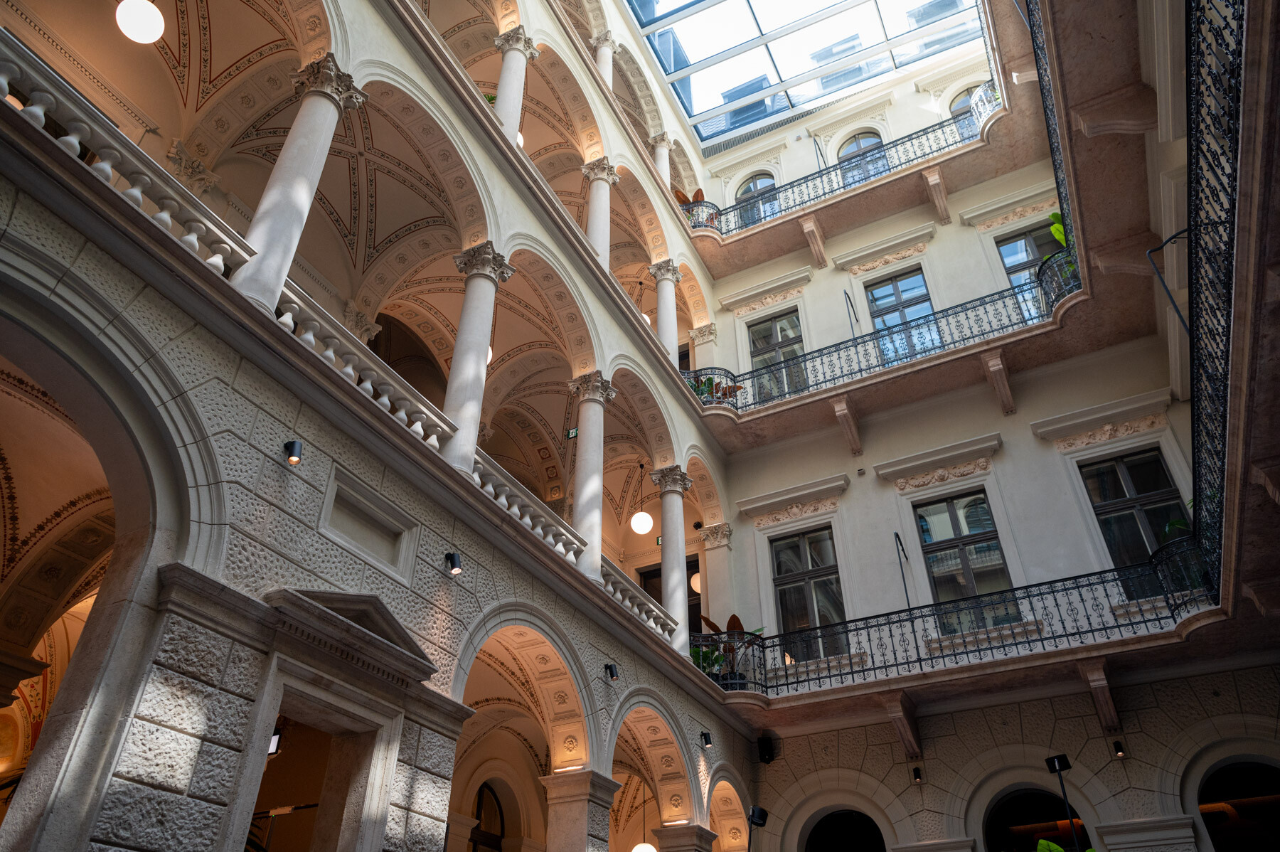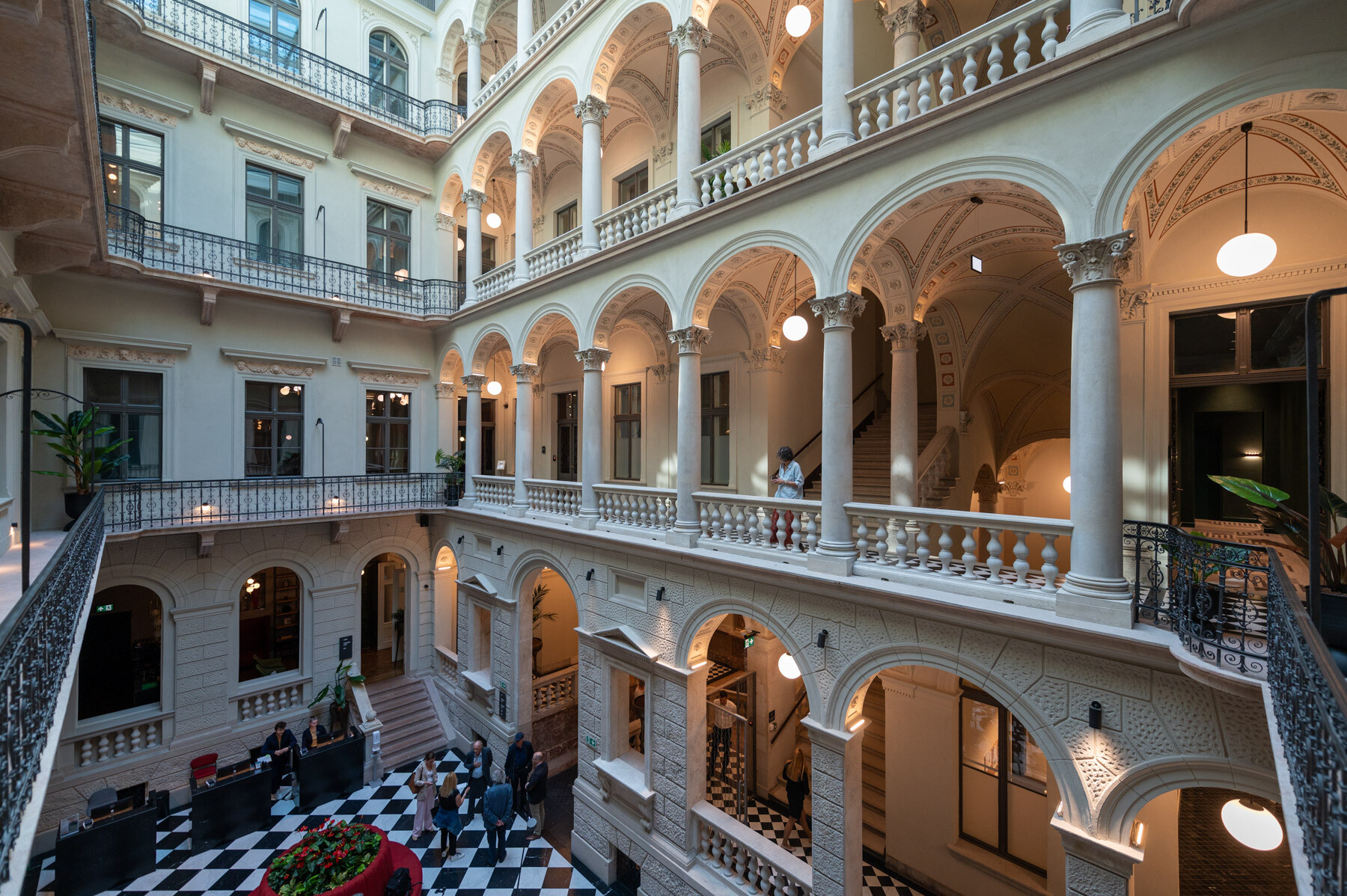 Az átalakítás követte a gangos fővárosi bérházak felújításának receptjét: az udvar üvegfedésével kialakult az épület központi tere, a lobbi, körülötte pedig a közlekedőrendszer. A neoreneszánsz palota sűrű homlokzatrasztere és ablakosztása kedvezett a szállodai szobák elhelyezésének. A reggeliző a lobbi mögött kapott helyet; a wellness részleg a pincébe került, a gépészet pedig a pince- és tetőszinten leeső területeken kapott helyet. Mint hozzátette: