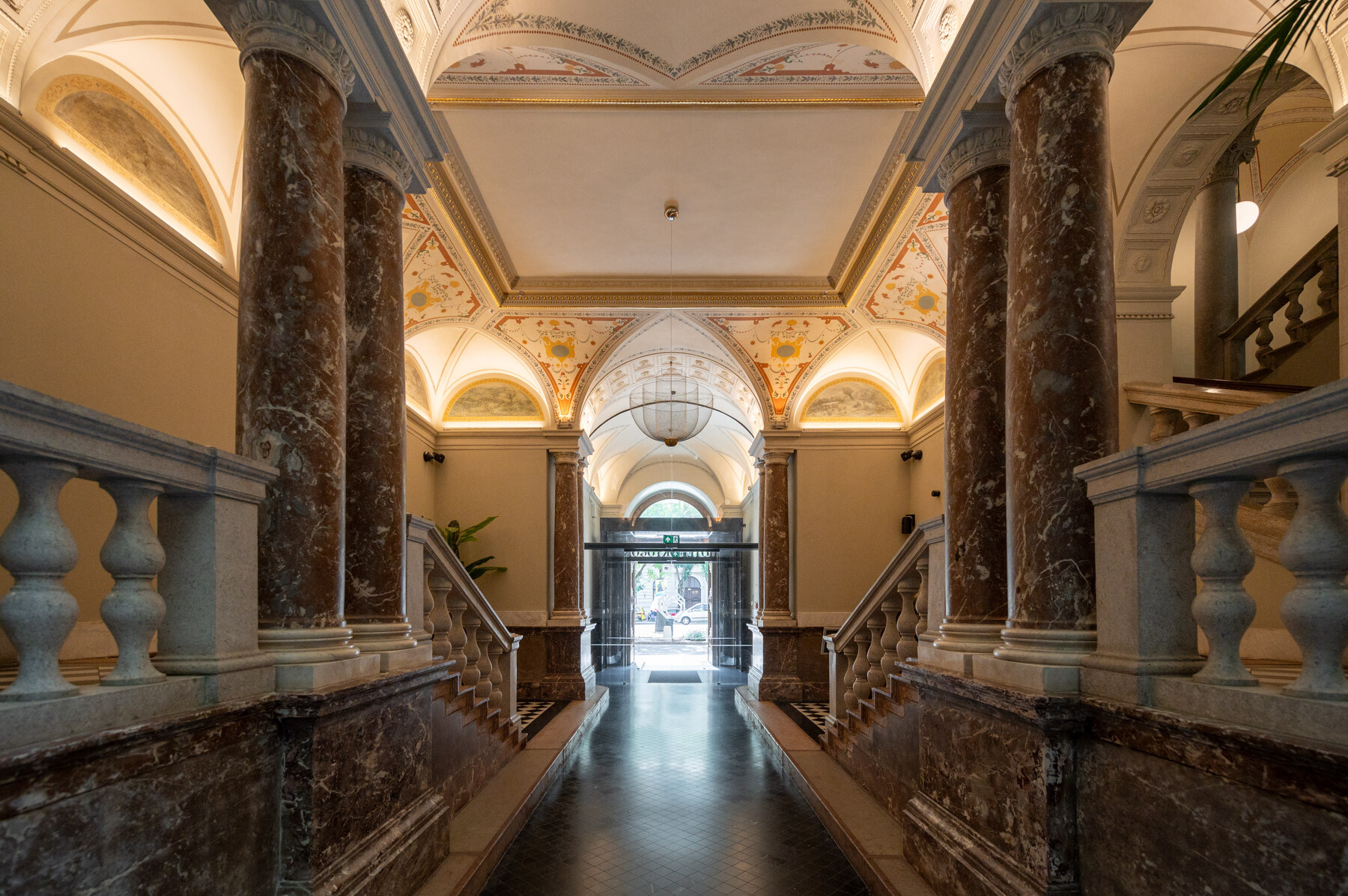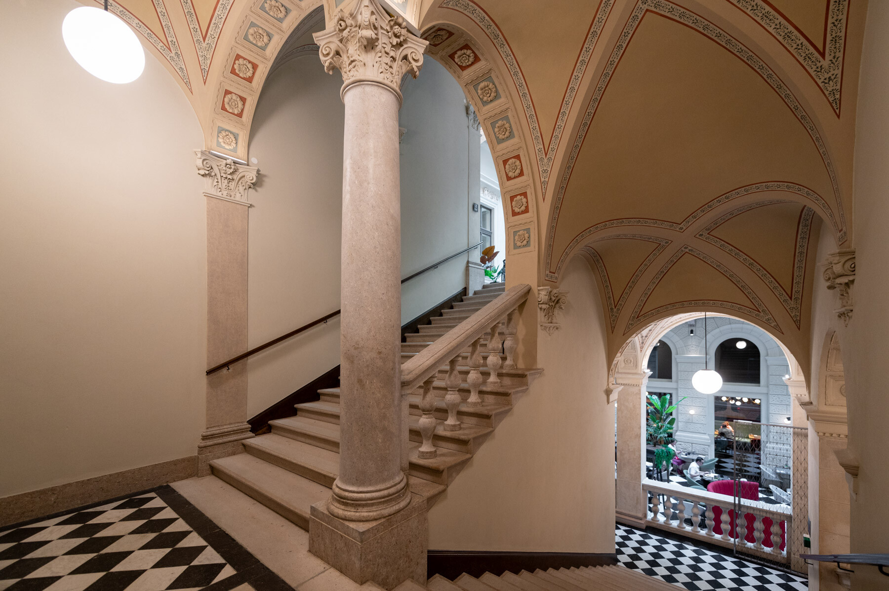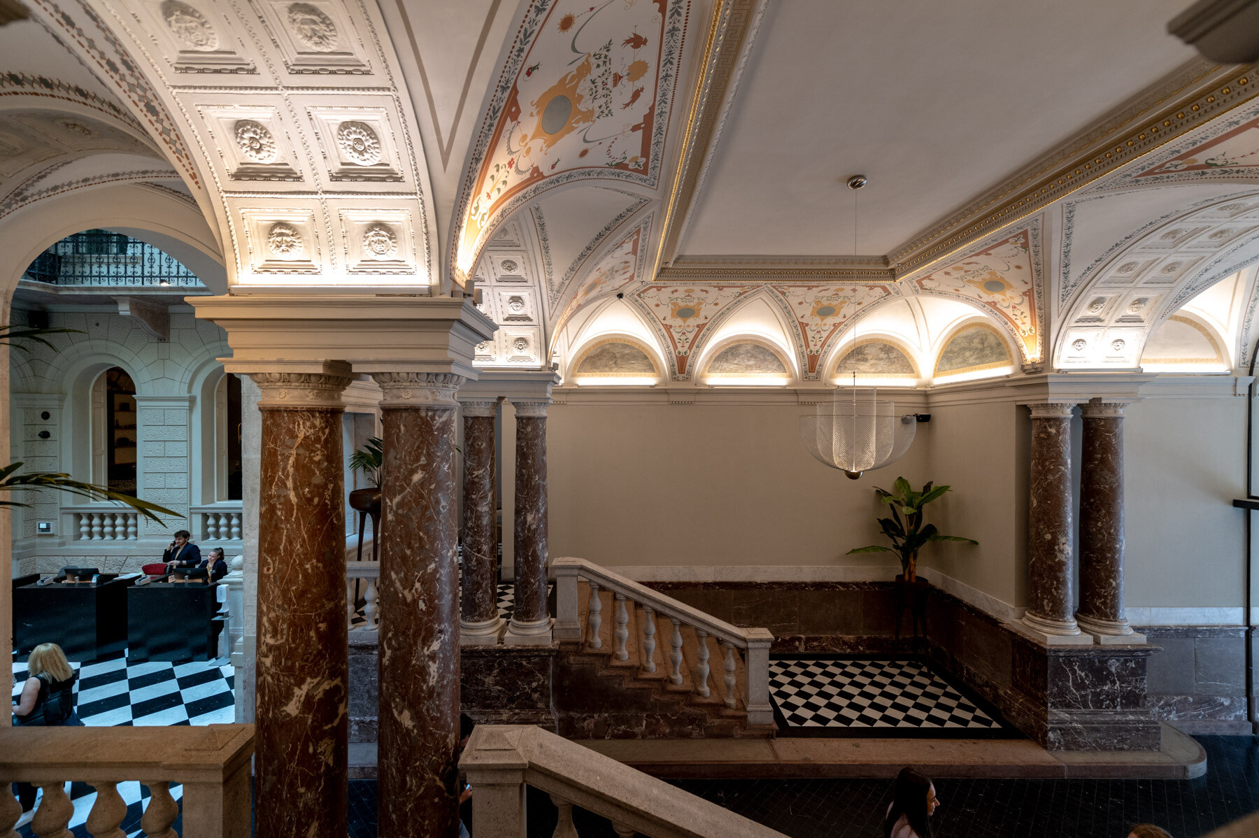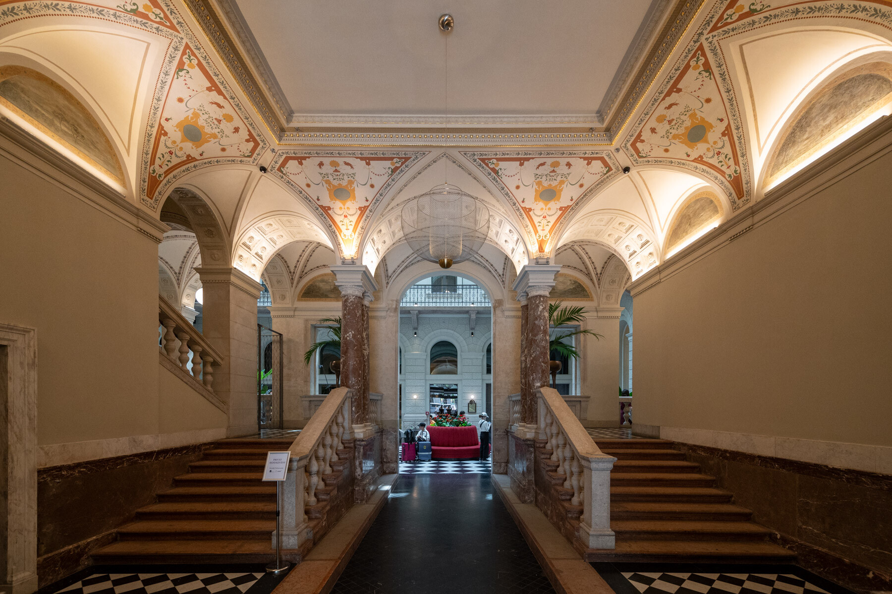 Az átalakítás követte a gangos fővárosi bérházak felújításának receptjét: az udvar üvegfedésével kialakult az épület központi tere, a lobbi, körülötte pedig a közlekedőrendszer. A neoreneszánsz palota sűrű homlokzatrasztere és ablakosztása kedvezett a szállodai szobák elhelyezésének. A reggeliző a lobbi mögött kapott helyet; a wellness részleg a pincébe került, a gépészet pedig a pince- és tetőszinten leeső területeken kapott helyet. Mint hozzátette: