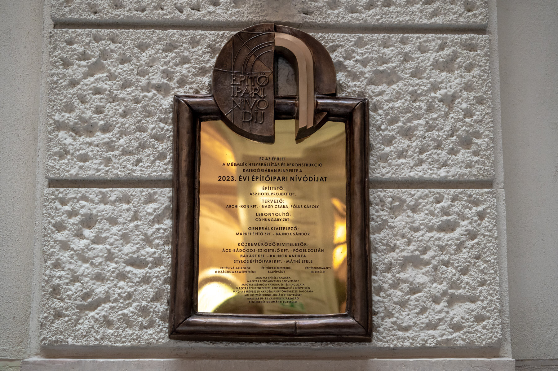 Mostantól bronztábla is hirdeti a Market munkájának minőségét a Hotel Oktogon Haggenmacher falán.