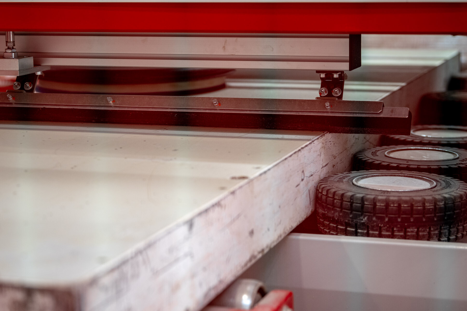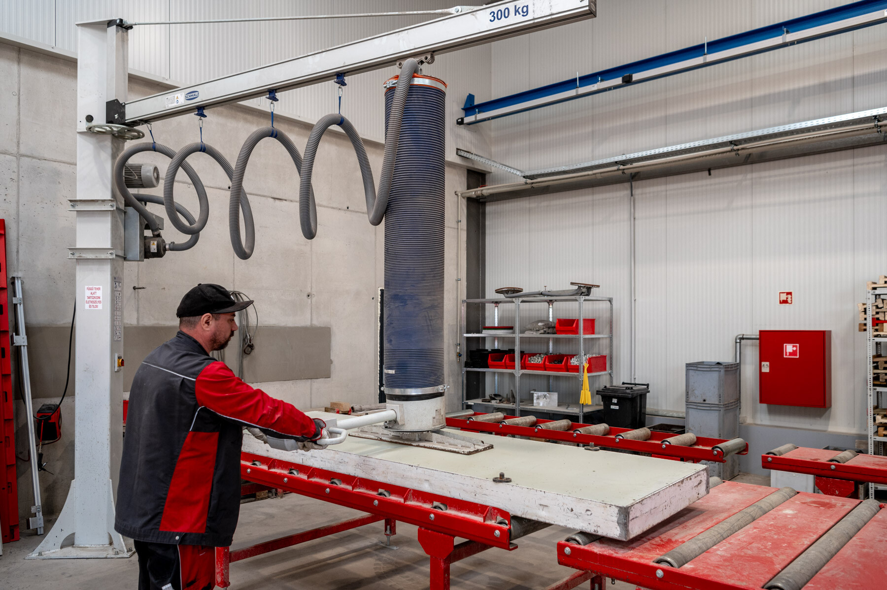 Szintén újdonság, hogy a MEVA keretes zsalurendszereinél alkalmazott műanyag kompozit zsalutábla polírozását teljesen automata csiszolóberendezés biztosítja, amelyből szintén csak néhány példány működik a világon.