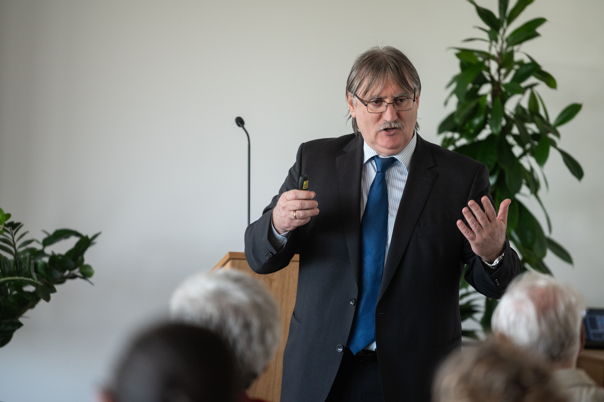 A bányászkonferencia résztvevőinek bányalátogatást is szerveztek a sóskúti egységbe. Demeter Tamás a Kvarchomok Kft. ügyvezetője mutatta be a bánya történetét és az utóbbi időszakban végrehajtott technológiai fejlesztéseket.