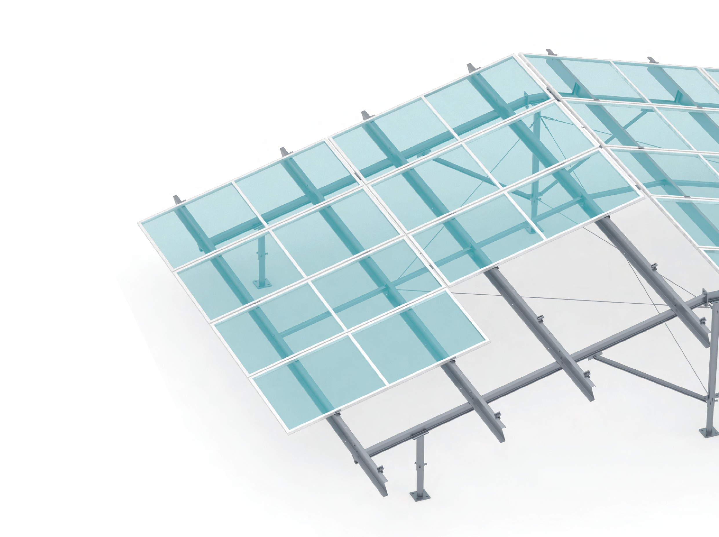 A Kelet-Nyugati tartószerkezeten a panelek a kisebb dőlésszög miatt közelebb helyezkednek el a földhöz és stabilabb szerkezetet képeznek az egytengelyes napkövető rendszereknél (nagyobb szélárnyékkal rendelkeznek).
