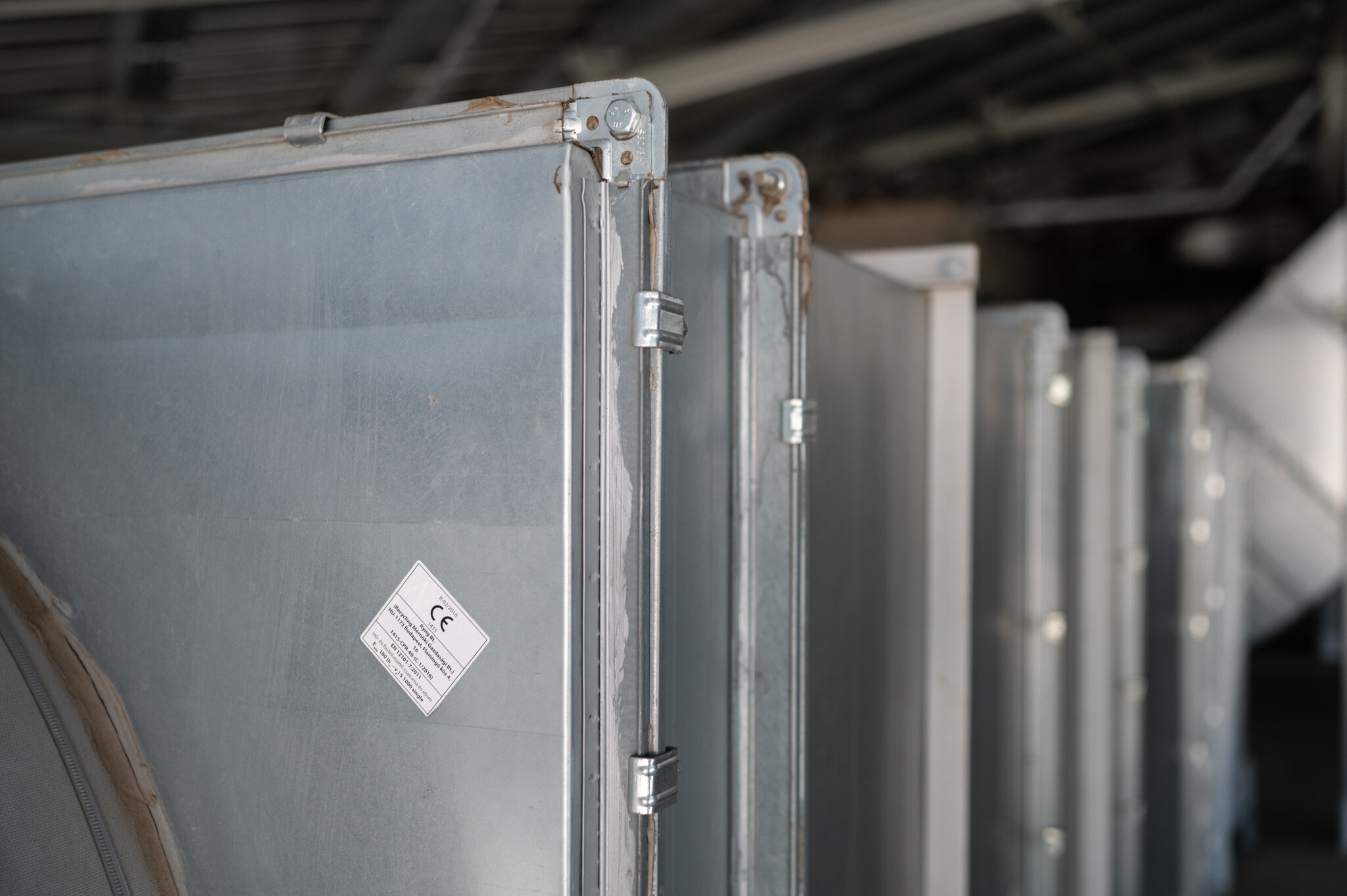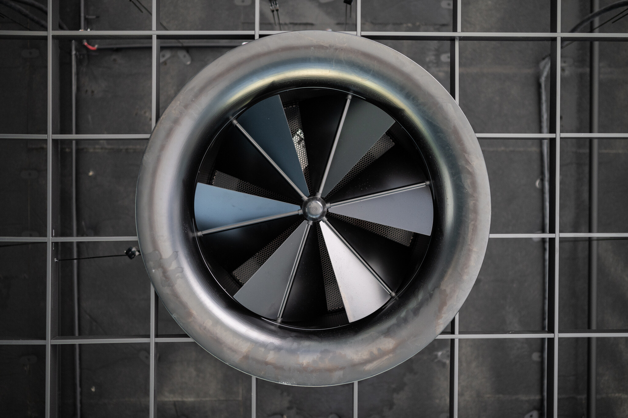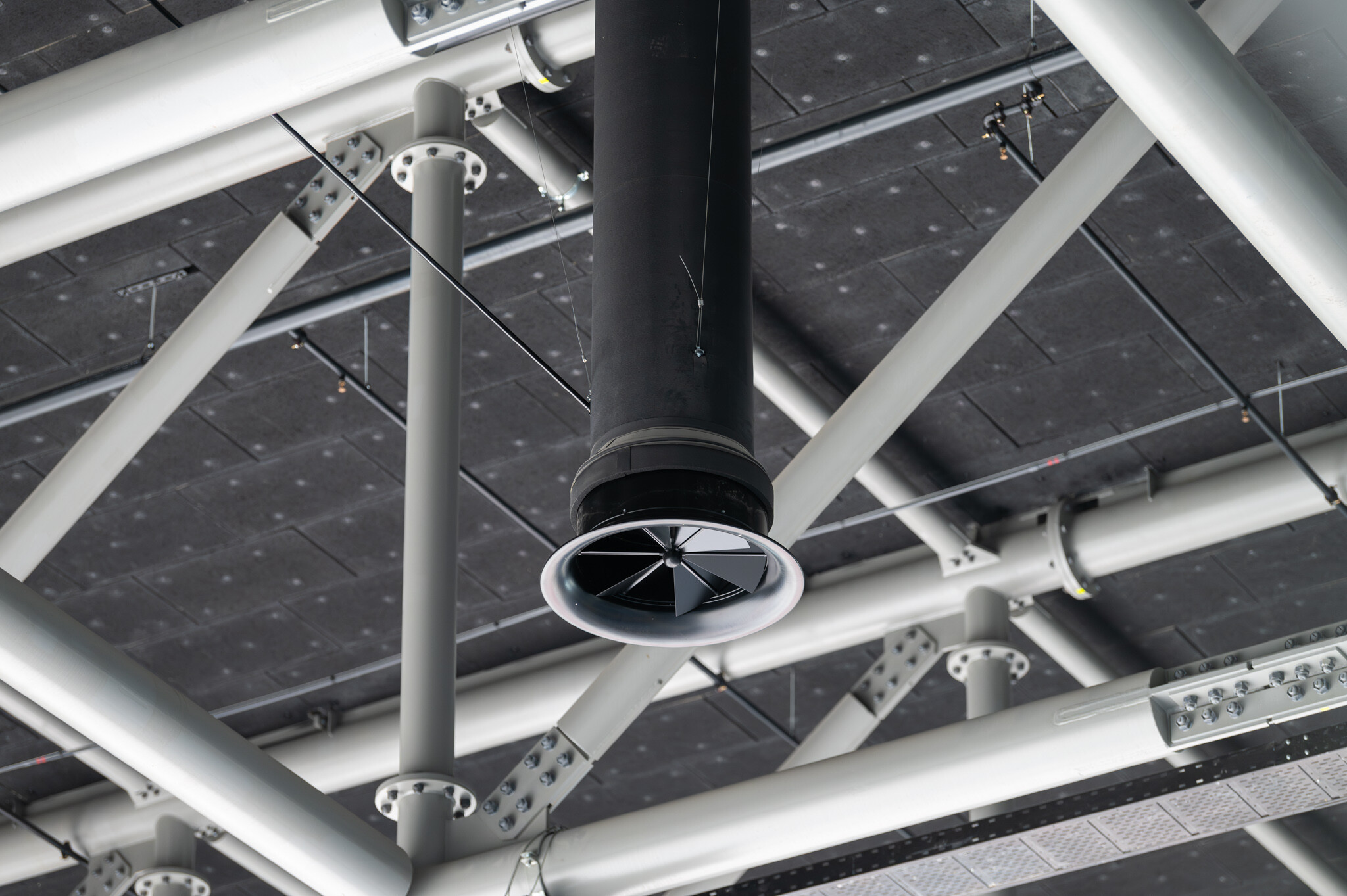 Az alkalmazott RCW rotációs befúvó különösen jó választás nagy belmagasságú létesítményekhez. Lamellái állíthatók, így a befújt levegő iránya vízszintesből akár függőleges irányba is változtatható.