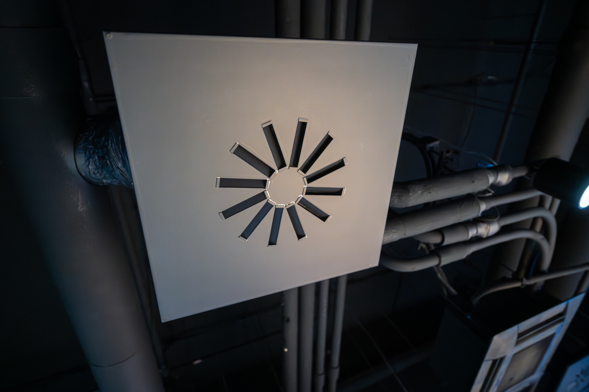Az épület irodatereibe és a kisebb helyiségek számára az RS14 négyzetalakú, fix lamellákkal szerelt rotációs anemosztátot választották a tervezők, amely befúvásra és elszívásra egyaránt alkalmazható, friss levegőt biztosítva ezen helyiségekben is.