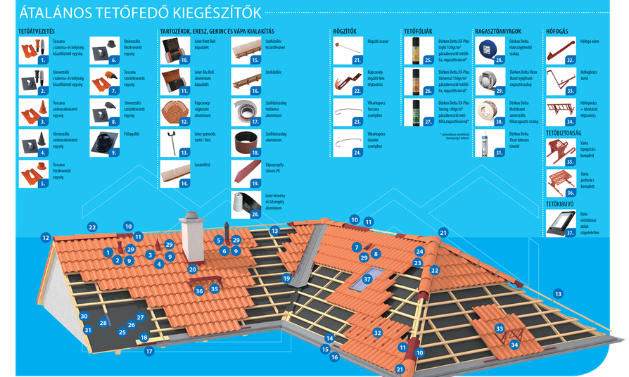 A Leier tetőcserép-gyártóként rendszerben kínálja termékeit: tetőkiegészítő elemekkel is segíti a tartós és szép tető építését. A kiegészítők jelentős része természetesen nem a tetőcserép anyagából készül, ahhoz azonban harmonikusan illeszkedve biztosítják a tető műszaki minőségét és maradandó szépségét.