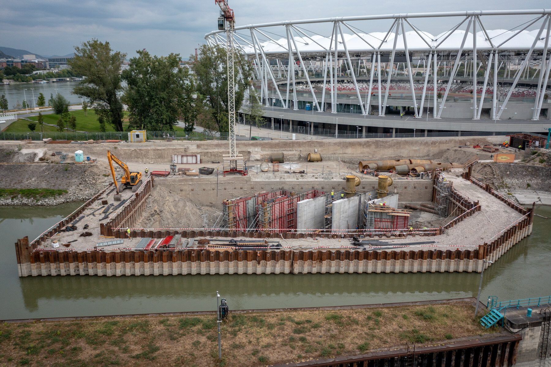A Duna és a mellékágainak vízszint-változását folyamatosan nyomon követik, hogy a kivitelezés során maximális biztonságban legyenek a mederben dolgozó szakemberek. A tervek szerint a júliusban elkezdett zsaluzással 2025 januárjában készülhetnek el.