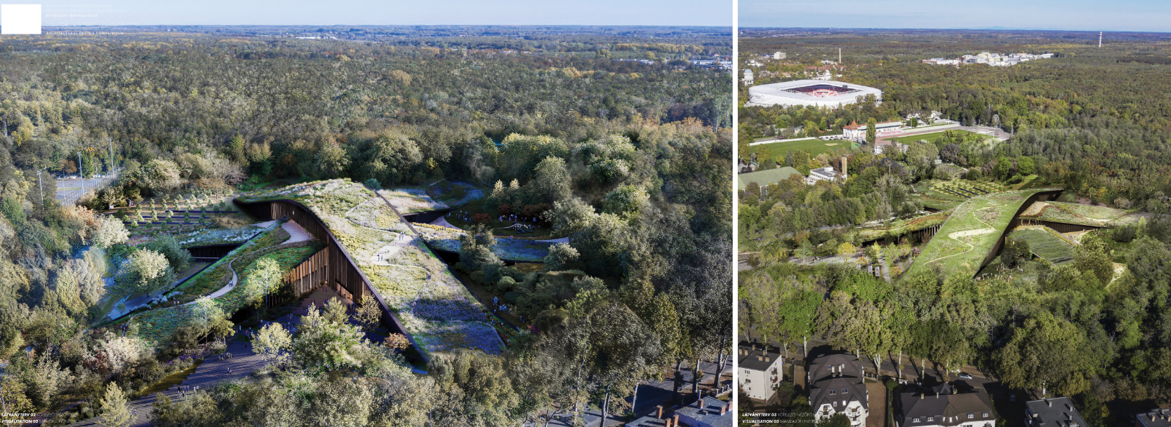 Az épület a szinte minden perspektívából látványos és vonzó megjelenésével lassan tárulkozik fel, felfedezésre hív, érzelmeket vált ki. Az egymást keresztező földsávok zöld tetőkertje számos edukációs lehetőséget hordoz, a külső és belső terek összeolvadásával igazi nyitott közösségi épületként funkcionálhat, mely által a családok és a legkülönbözőbb társadalmi rétegek egyik kiemelkedő kikapcsolódási helyszíneként vizionálható."