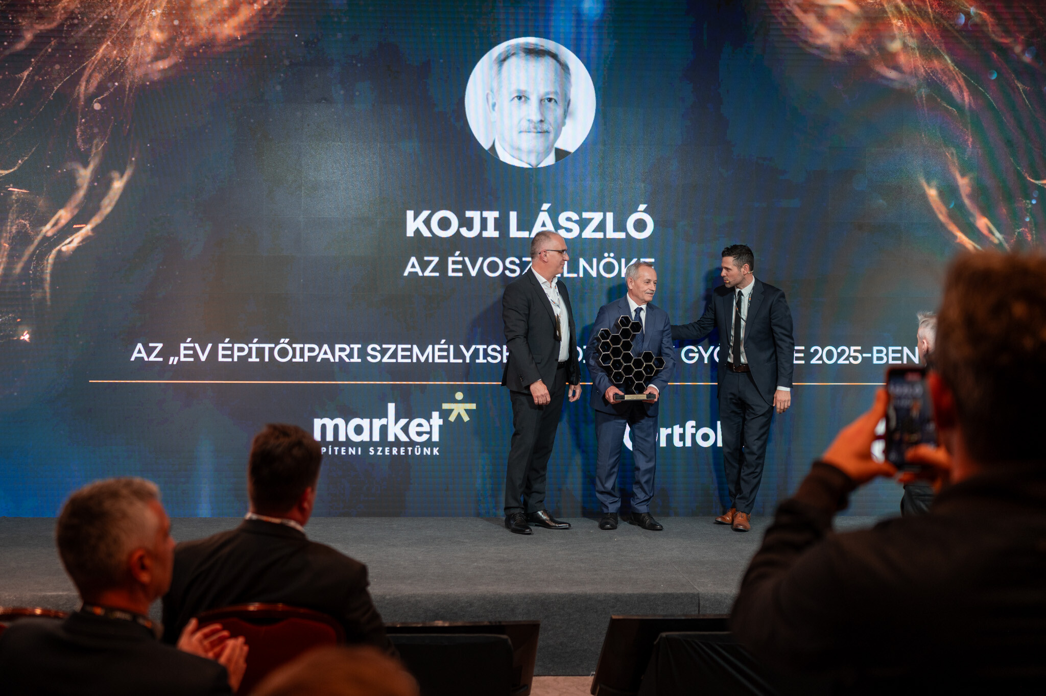 A rendkívül sok témát felvonultató estét végül a díjátadóval egybekötött ünnepi fogadás zárta. A legelőkelőbb elismerés a gálán az Év Építőipari Személyisége díj, amelyet a Market Építő Zrt. és a Portfolio Csoport közösen ad át, céljuk a szakma jelentős képviselőinek az elismerése, a munkájuk díjazása.