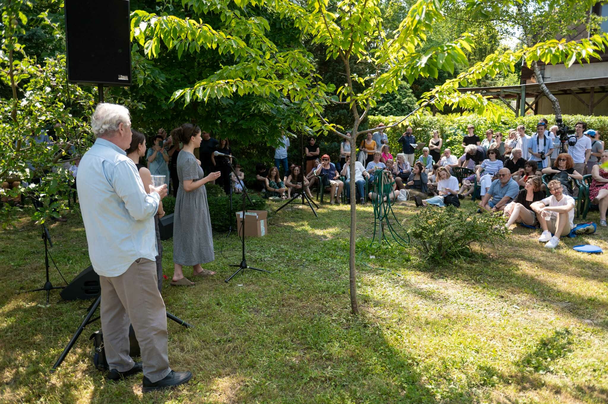 A júniusi nyílt ház eseményre, amely a BME Középülettervezési Tanszékének szervezésében jött létre, lapunk is ellátogatott. Az esemény alkalmával lehetőség nyílt megtekinteni közelebbről is Esterházy Péter egykori, felújítás előtt álló otthonát, valamint egy képzőművészeti kiállítást is a BME Építészmérnöki Kar Középülettervezési Tanszék harmadéves hallgatóinak házról alkotott vízióiról. Az eseményen Vámos Miklós író, a MIBA kuratóriumi elnöke, Esterházy Marcell képzőművész és Szabó Levente DLA építész, tanszékvezető egyetemi tanár tartott előadást.