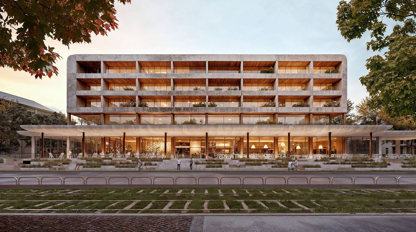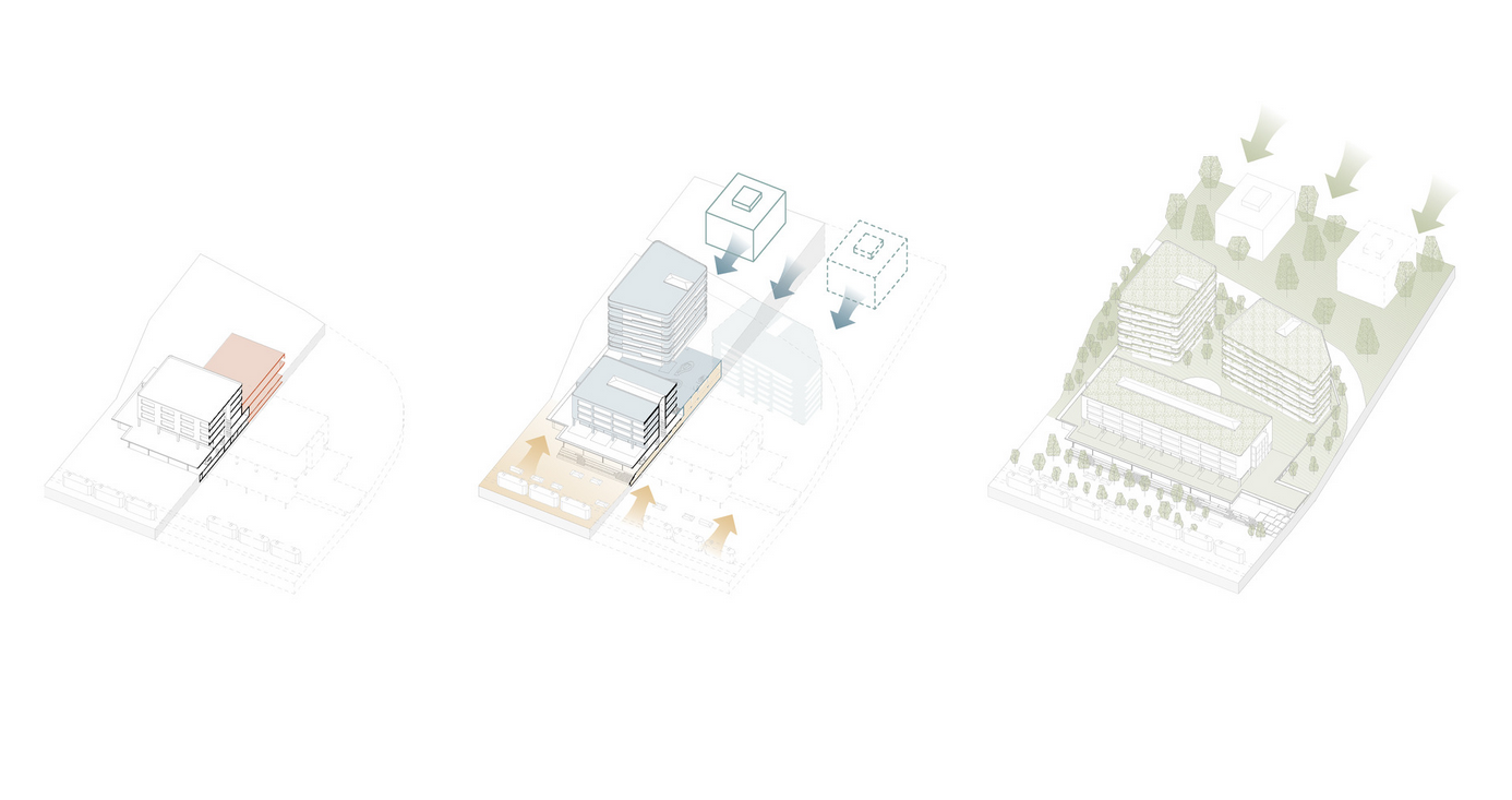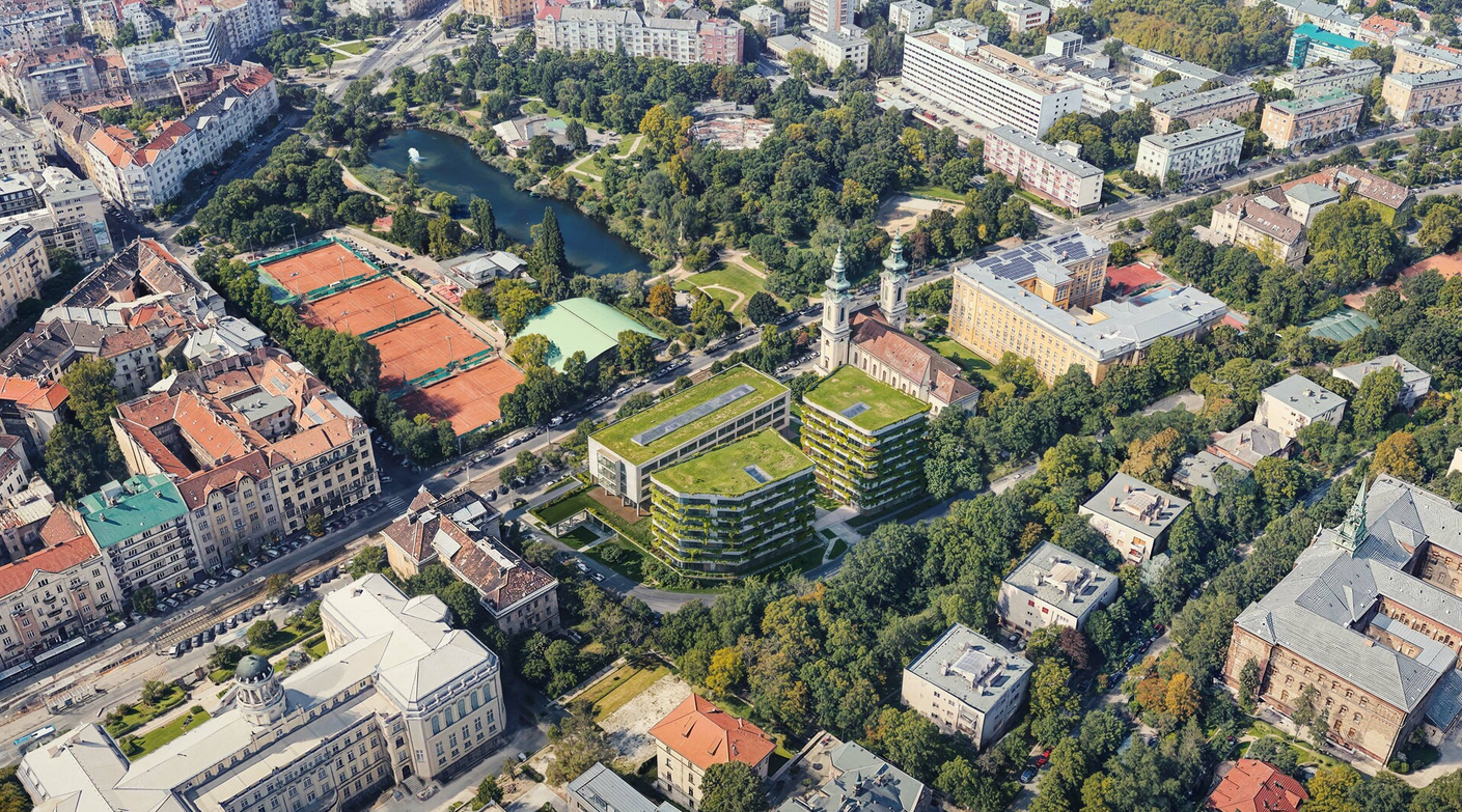 A zöld térségben elhelyezkedés épületegyüttesben a növényzet már az épület tetején és oldalfalain is megjelenik és nemcsak esztétikai, hanem energetikai szempontból is aktív szerepet kap: “a növényzet nemcsak látványelem: szigetel, árnyékol, párásít, véd – és egyúttal hozzájárul a városi ember mentális jóllétéhez is” - fogalmazták meg.