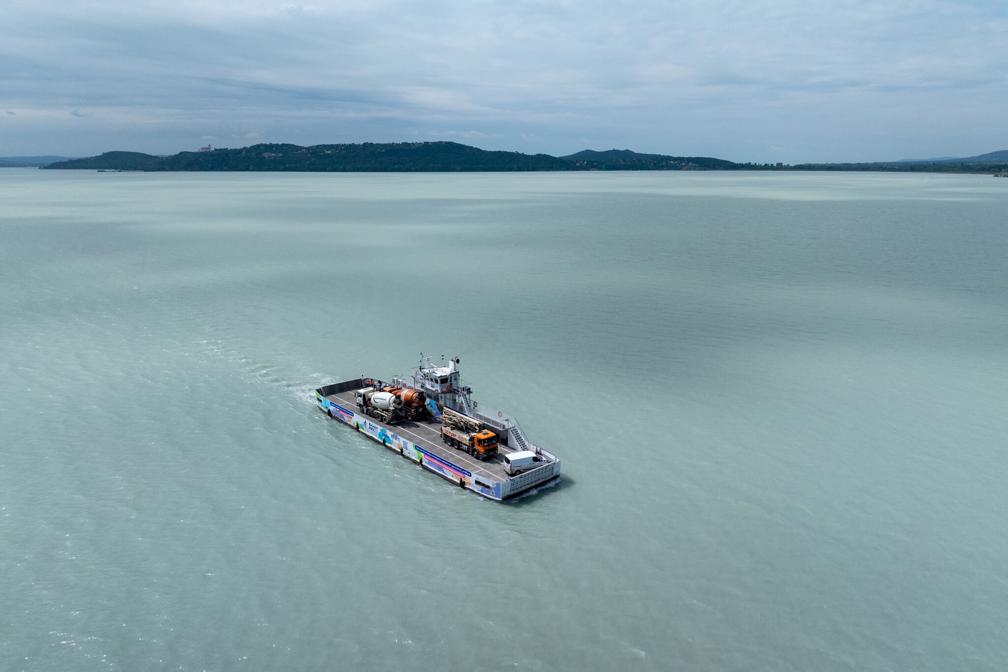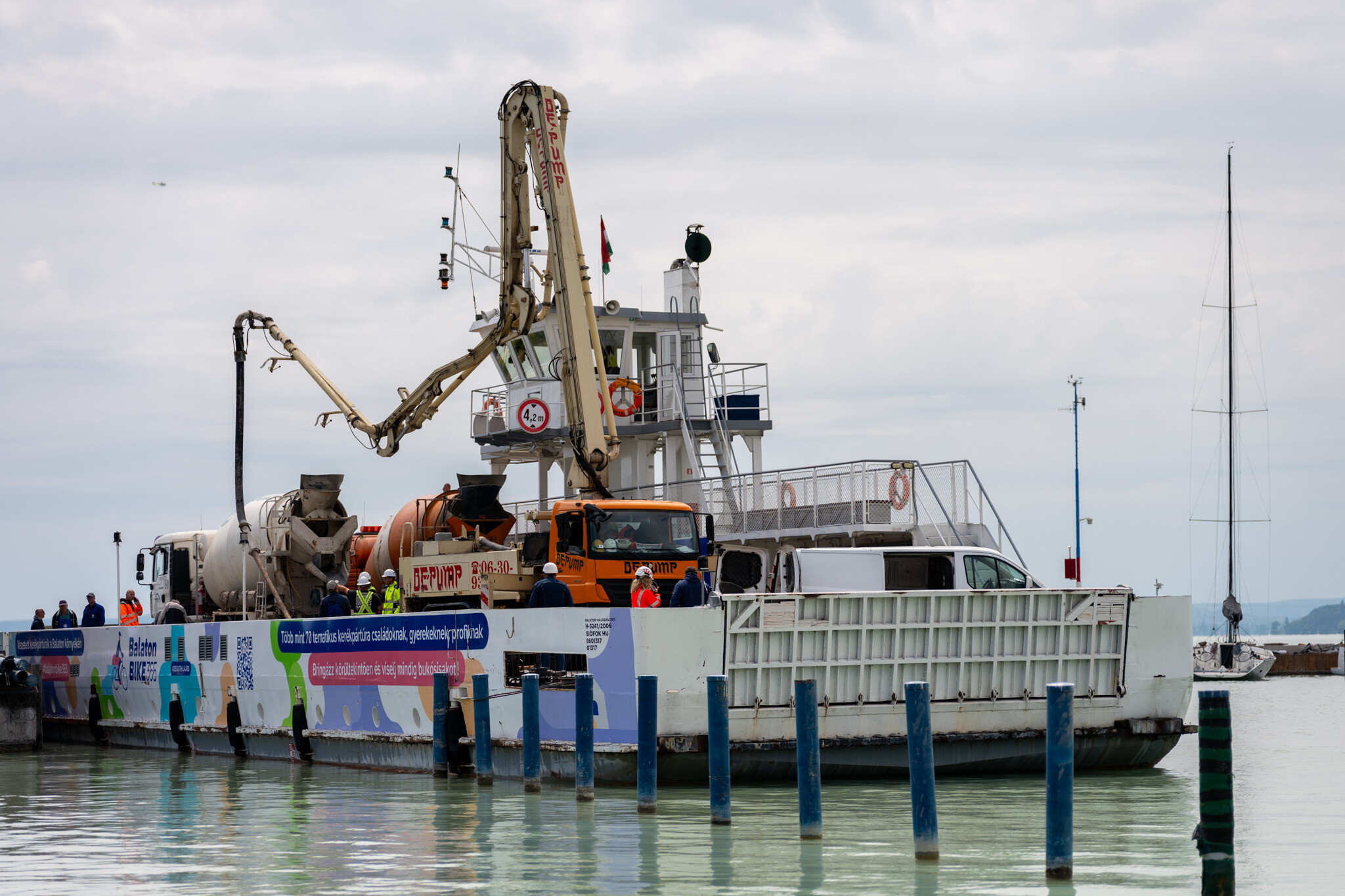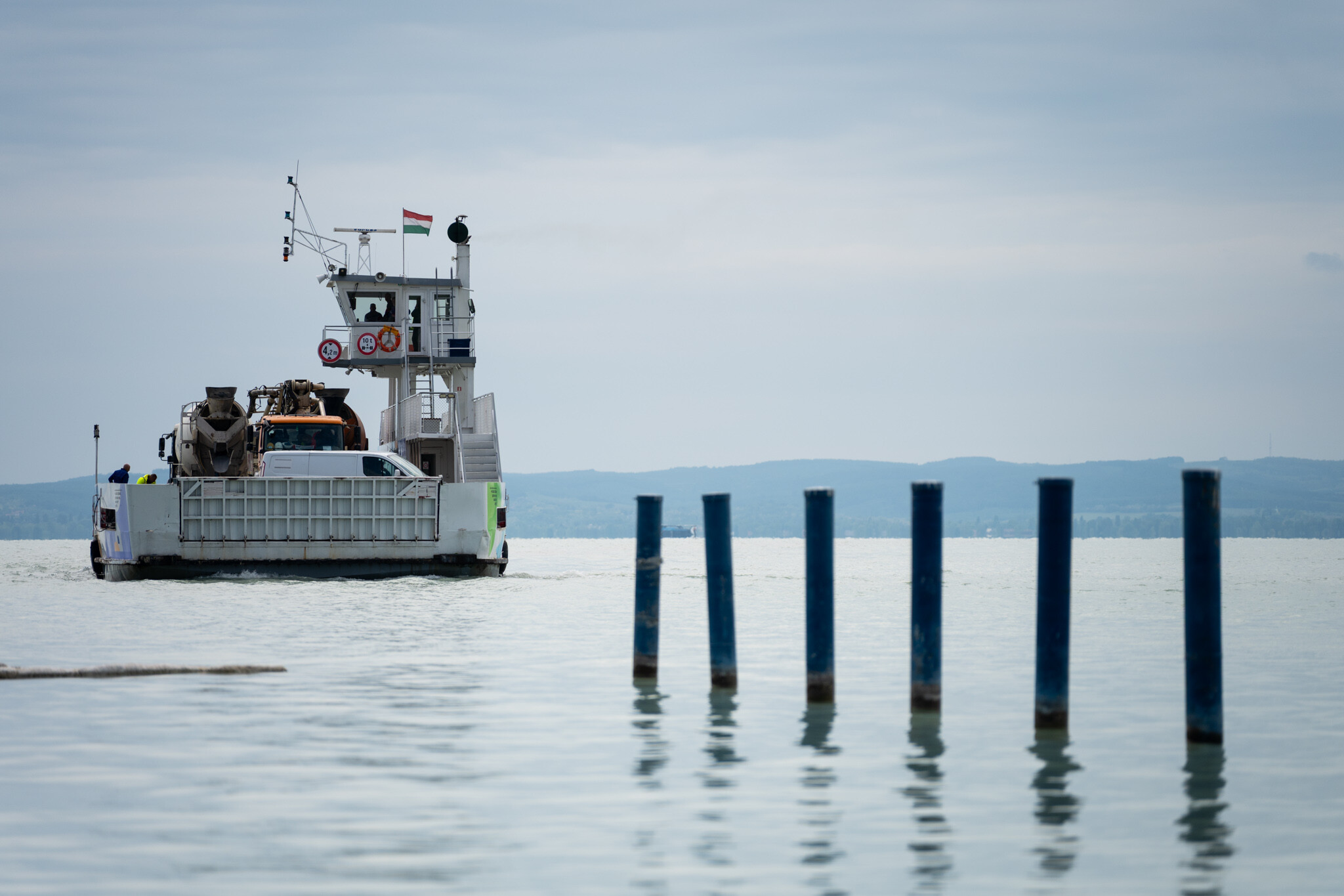 Egy behajózással 15 köbméter betont tudtak a helyszínen bedolgozni. A járművek a FRISSBETON veszprémi betonüzeméből érkeztek a partra és a Tihany révben álltak fel a kompra.