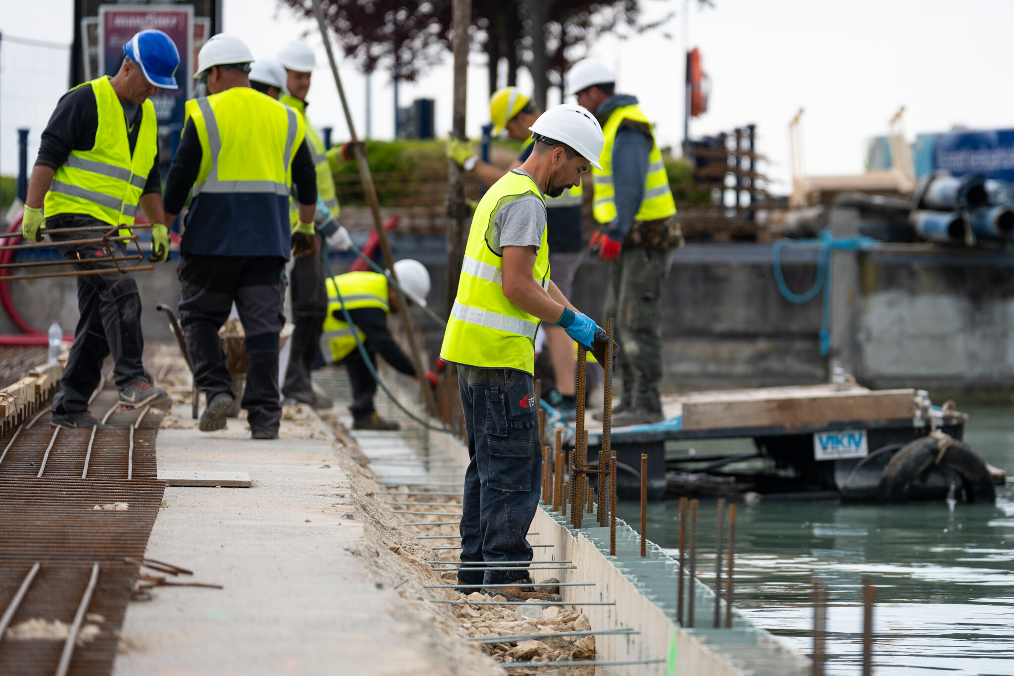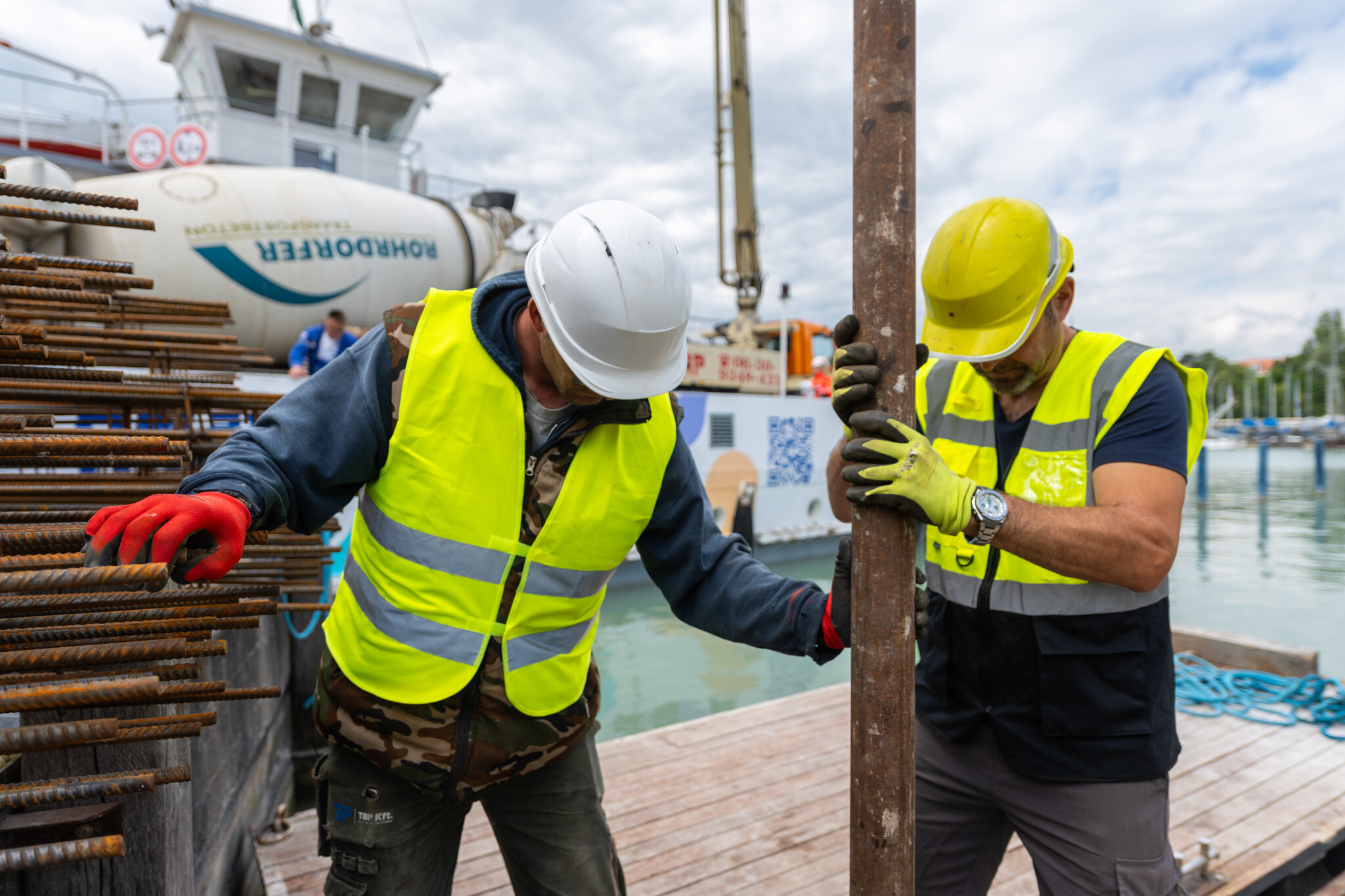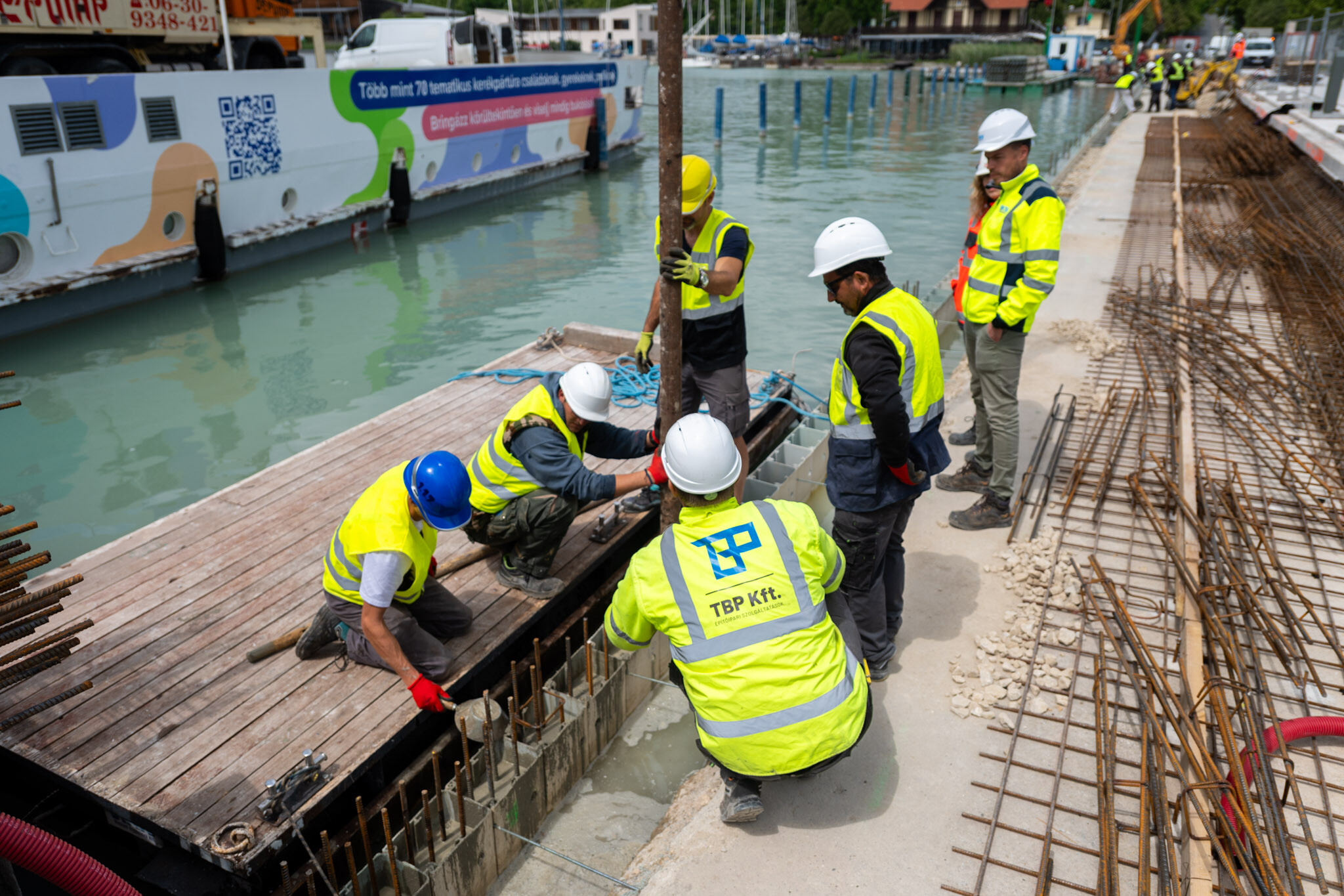 „Az új partfal - egy bennmaradó zsaluként is szolgáló, műanyag szádfal rendszerrel - TRULINE panelekből épült, ezekkel alakítottuk ki a móló új kontúrját. Erre már egyben épült rá az új teherhordó vasbeton lemez a kihorgonyzó és -fejgerendával.”