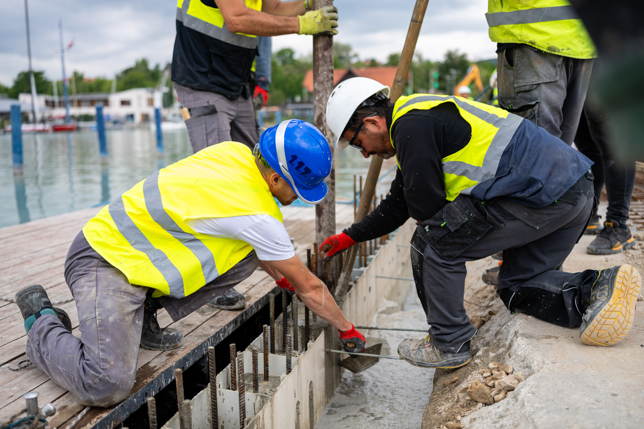 Új partfal kivitelezése során többször is a vízről betonoztak. Ennek hátteréről, előkészítéséről az építésvezetőtől megtudtuk: