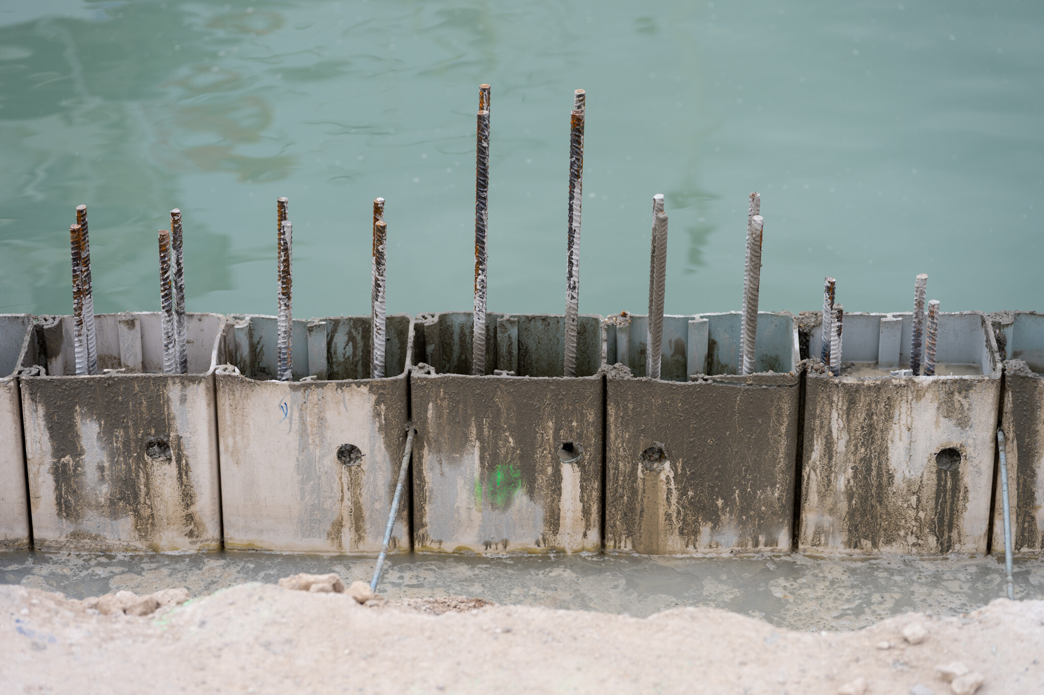 Az építésvezető kitért arra is, hogy vizes közegben a betonozásnál a legnagyobb kihívást az esetleges hibák kiszűrése jelentette. Száraz körülmények között, a zsaluzat általában jól ellenőrizhető, tömíthető, a víz alatt sajnos nehezen vehetők észre a hibák, ezért a kritikus munkafolyamatoknál búvárok segítették a munkálatokat.