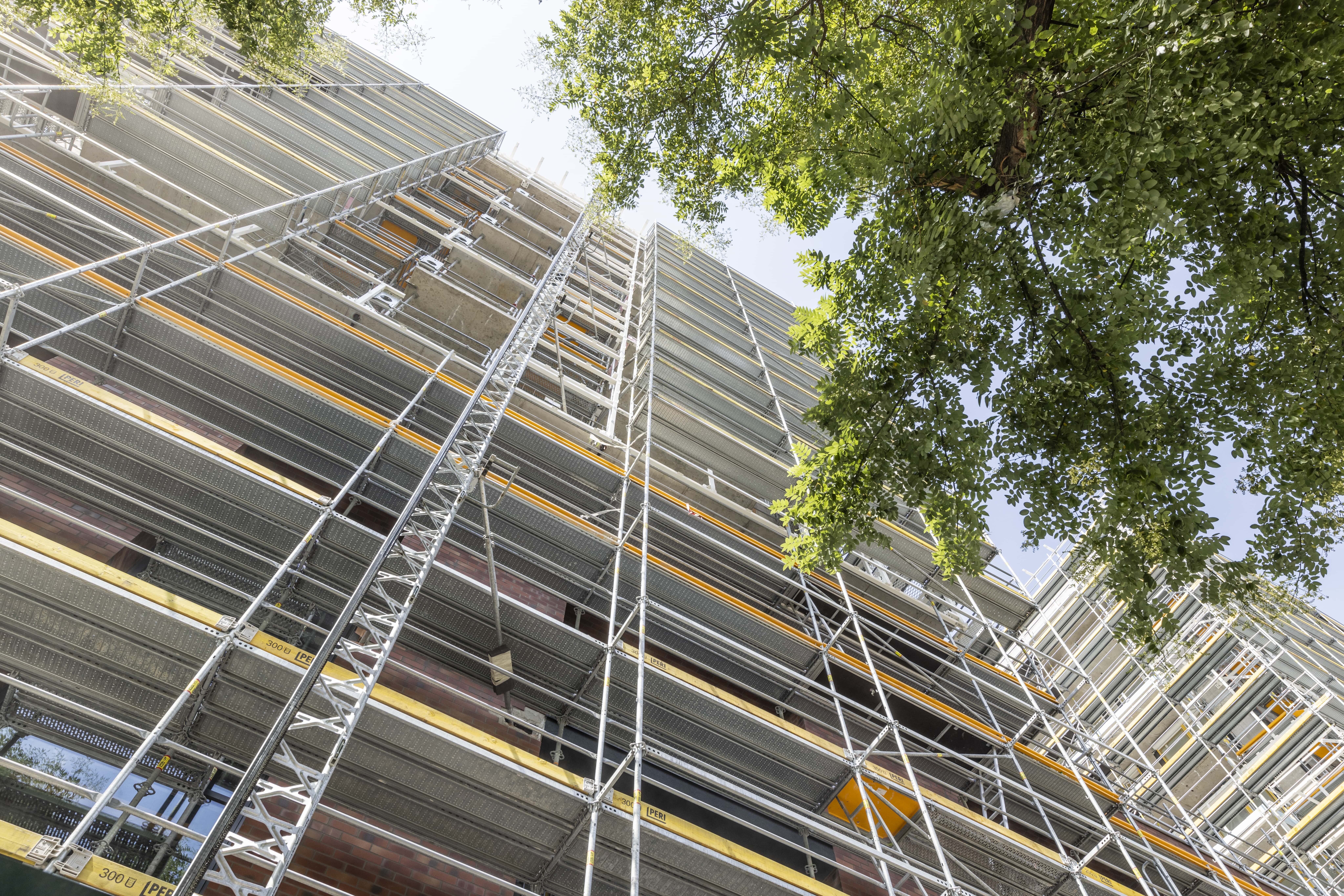 A korlátozott kikötési lehetőségek miatt a PERI mérnökei azt a megoldást dolgozták ki, hogy az EVOTOP homlokzati állványt, közvetlenül az erkélyek között álló PERI Up Flex térállványokhoz rögzítették. Ezáltal létrehozták a szükséges stabilitást és biztonságot az állványzat számára és biztosították a hozzáférést is a növénytartó acélpanelekhez akár 36 méteres magasságban is.