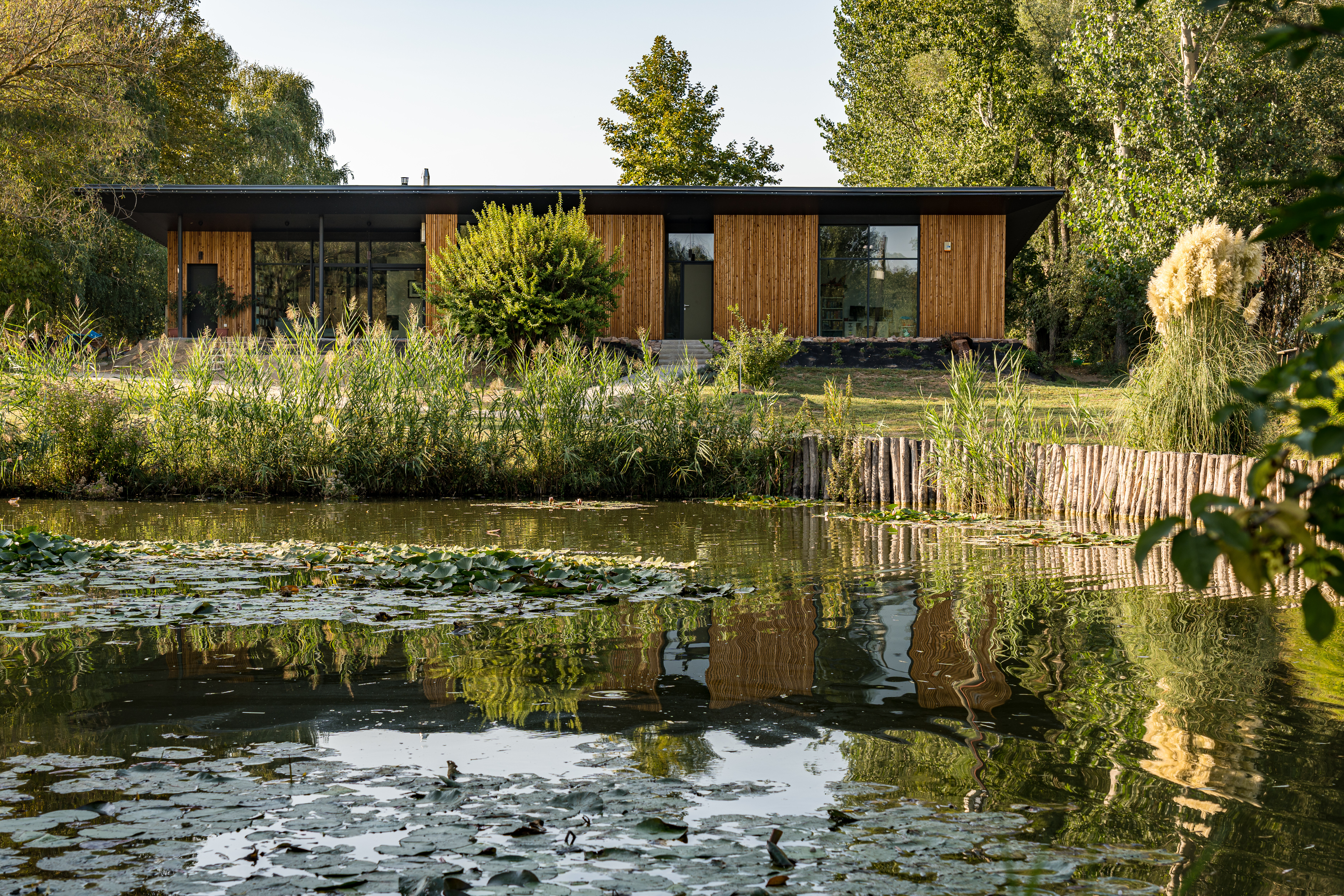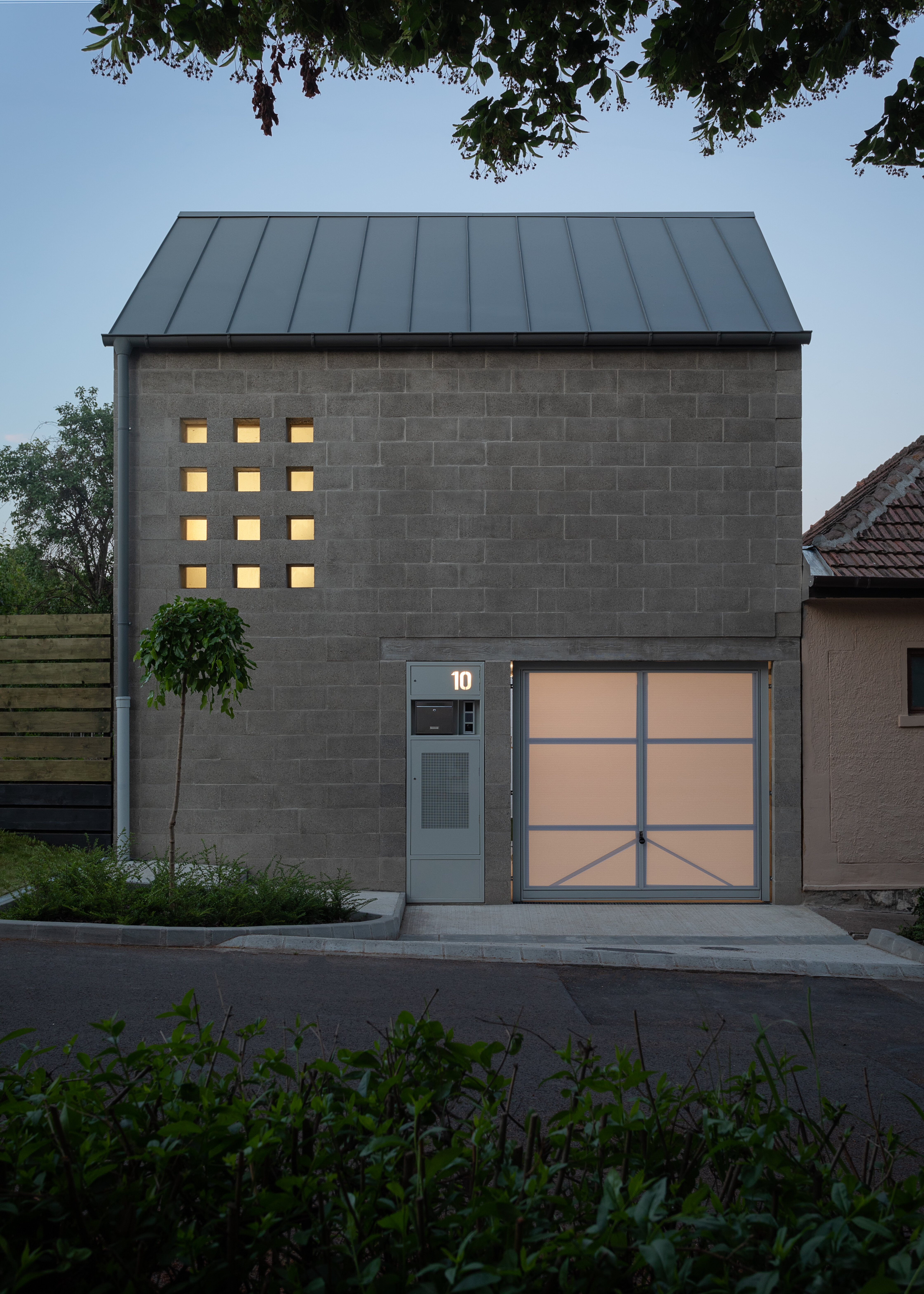 Ezen elveknek megfelelően a 23 családi ház és 3 társasház közül, a lakóépület kategóriában a somogytúri csendes, félreeső közegben álló épület bizonyult a legjobbnak. „Az épület nem a hagyományos településszövethez igazodik, hanem a tájra reflektál. Illeszkedése nem formai, sokkal inkább atmoszférikus: az erdő közelsége határozza meg építészeti karakterét. Léptékével, ritmusával, tereinek működésével válik a környezet szerves részévé. Kortárs építészet, amely természetközeliséget, nyugalmat és időtálló minőséget közvetít.” – fogalmazott Szoják Balázs a 2025. évi Év háza építészeti pályázatra benyújtott családi házról, amelynek tervezői Villányi Norbert és V. Marton Rozália vehették át idén a családi házak és társasházak összevont kategóriájának fődíját.
