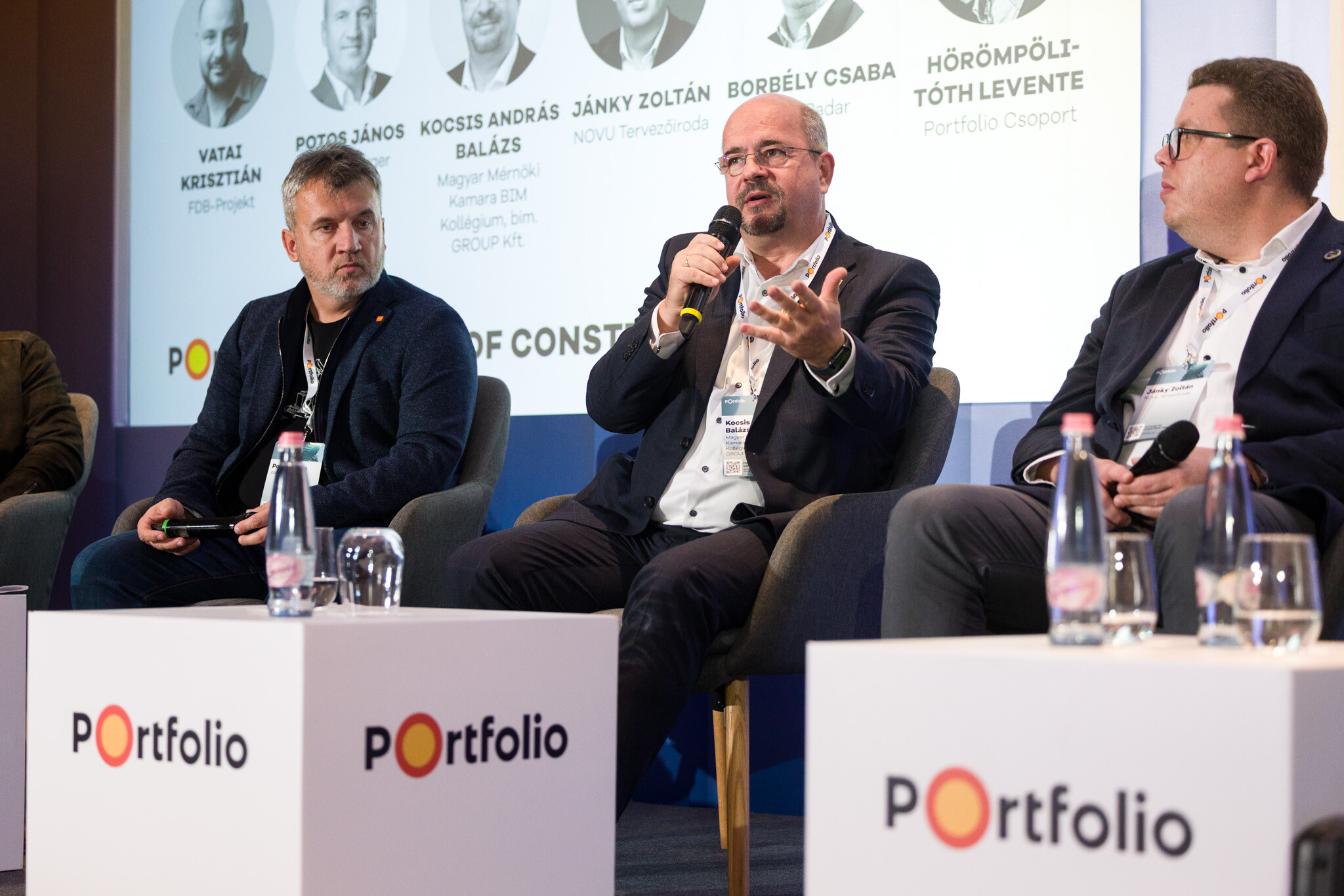 Ditróy Gergely, a Portfolio üzletfejlesztési igazgatója köszöntötte a megjelenteket, őt követte a konferencia első előadója, Lánszki Regő, országos főépítész és az Építési és Közlekedési Minisztérium építészeti államtitkára, aki ismertette, hogy az építőipar Magyarországon közvetlenül a GDP 7 százalékát teszi ki. A kapcsolódó szektorokkal együtt viszont 13 százalék, ami már megközelíti a GDP-arányban élenjáró turisztikai szolgáltatási ágazatot.