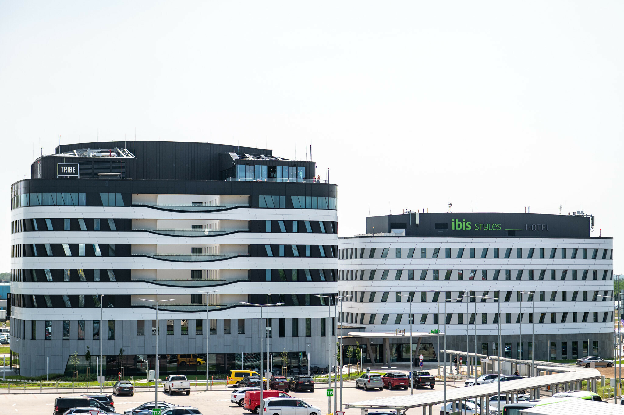 A TRIBE Budapest Airport Hotel a WING és a Budapest Liszt Ferenc Nemzetközi Repülőtér együttműködésében valósult meg, közvetlenül a 2-es terminál mellett, a meglévő ibis Styles szállodával összeköttetésben.