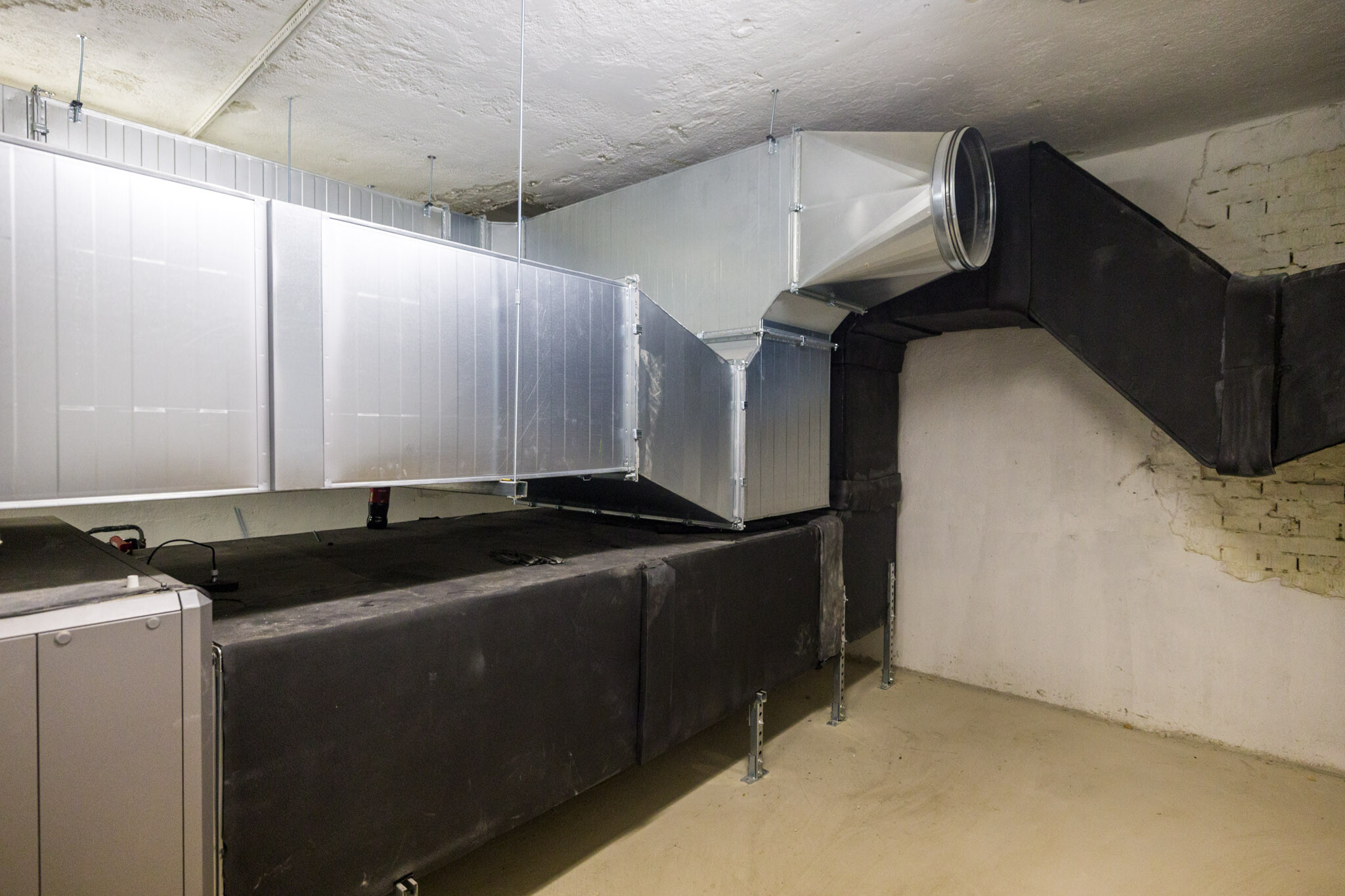A négyszög keresztmetszetű Lindab légcsatornák trapézmerevítéses kialakításukkal kiváló állékonyságot biztosítanak, miközben könnyen illeszthetők a gépházban elhelyezett légkezelő berendezéshez.