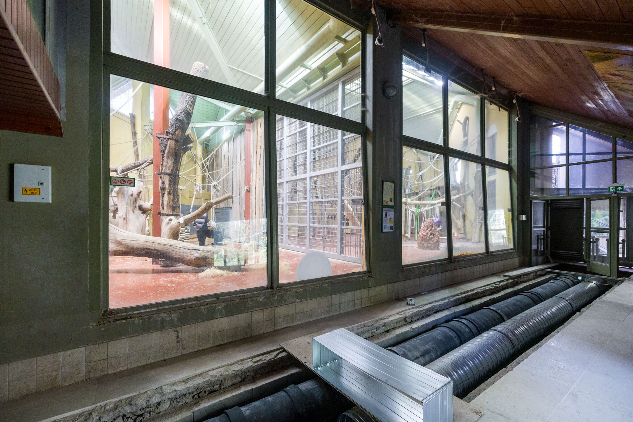 1989 óta élnek gorillák az intézményben, az ötfős csapat legifjabb tagja is nyolc éves. Az orangutánok is lassan négy évtizede örvendeztetik meg jelenlétükkel a látogatókat. Mindkét faj kritikusan veszélyeztetett, speciális környezeti igényeiket az épület hűtés- és szellőztető rendszerének korszerűsítésével biztosítják. A projektet a Novoterm-96 Kft. valósította meg a Lindab megoldásaival.