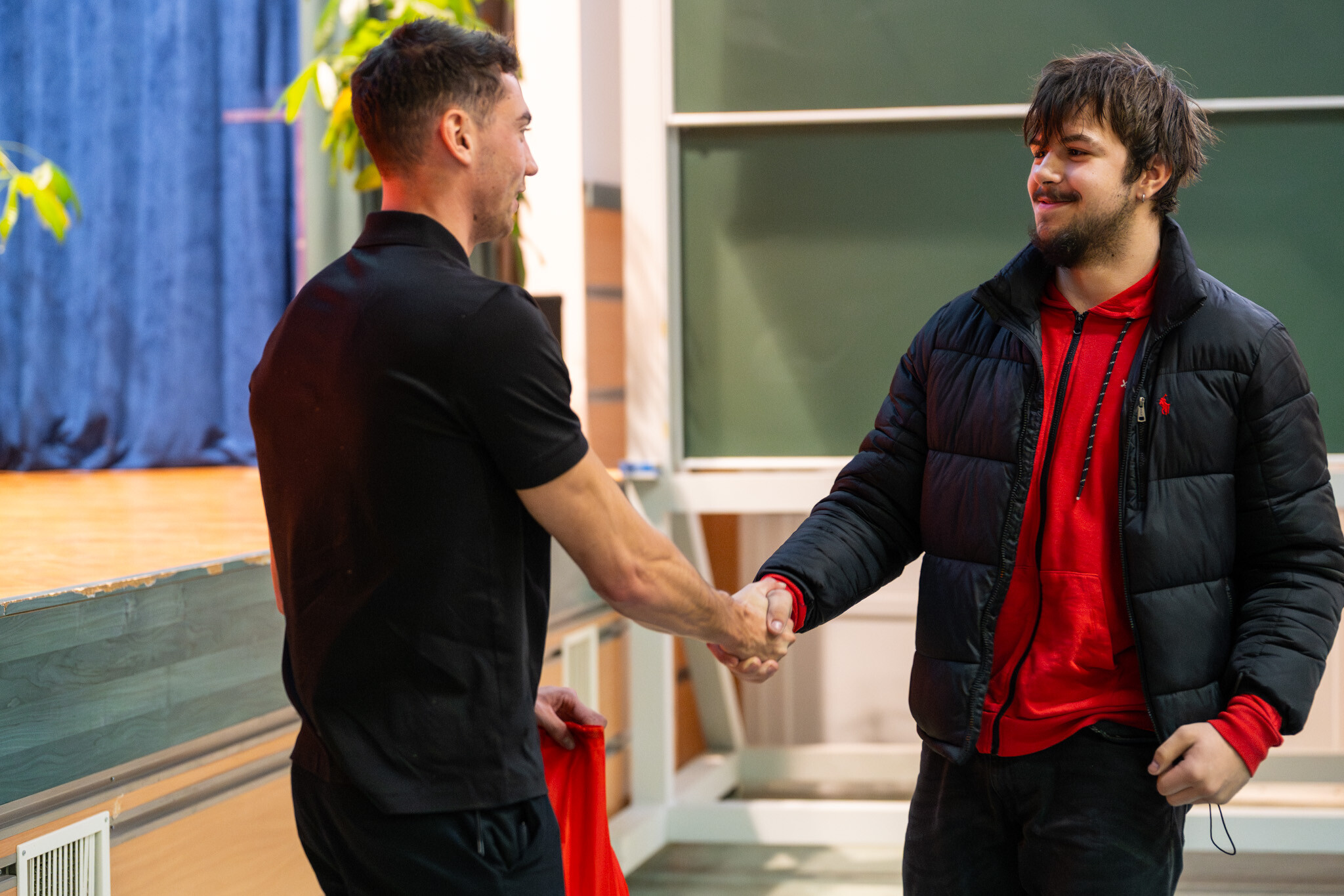 A különleges találkozón előbb Szabadics Roland, az építőipari cég operatív igazgatója beszélgetett Kurucz Levente karrierútjának Nagykanizsa csónakázó tavától a milánói világbajnoki aranyéremig tartó szakaszáról. Majd a diákok kérdezték az olimpiára készülő sportolót.
