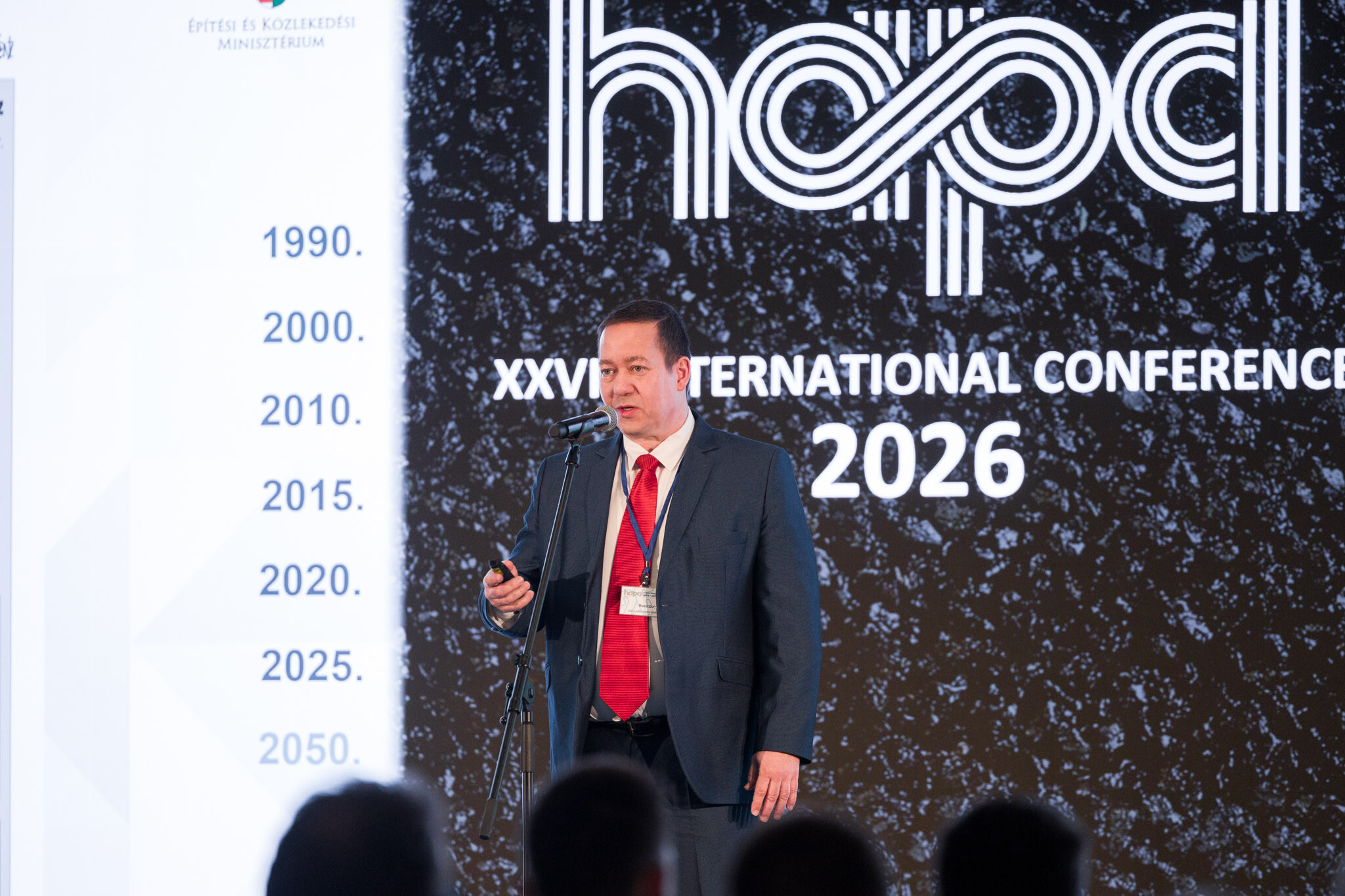 Szintén a bevezető panelben kapott lehetőséget Thoroczkay Zsolt, az ÉKM főosztályvezetője, aki többek közt a sokéves előkészítés után tavaly decemberben hatályba lépett új szabályozást, a közutak építéséről szóló 12/2025. (V. 8.) ÉKM-rendeletet ismertette, amely számos előrelépést hoz az útügyi szakma számára.