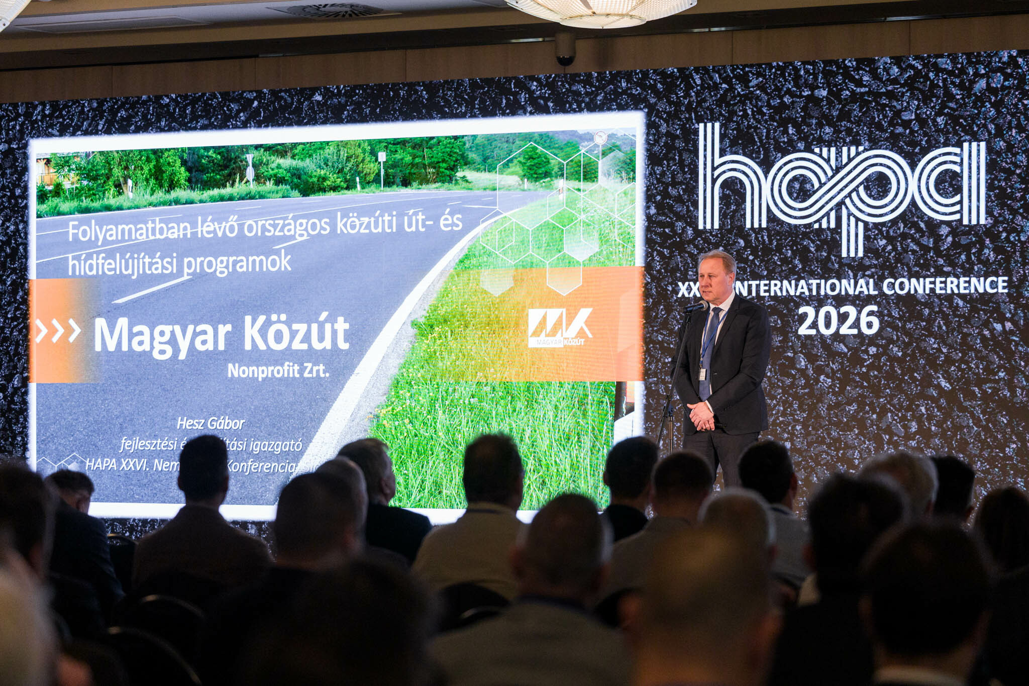 A HAPA-konferencia kiemelt előadói között tartotta meg beszédét Hesz Gábor, a Magyar Közút Zrt. fejlesztési és felújítási igazgatója is, akinek előadásából kiderült: a 2020-2027-es ciklushoz tartozó TOP-alapú útfejlesztések zöménél idén indul majd be a kivitelezés, ezzel felpörögnek ezek a beruházások.