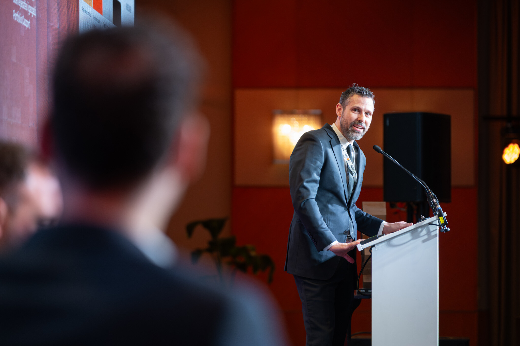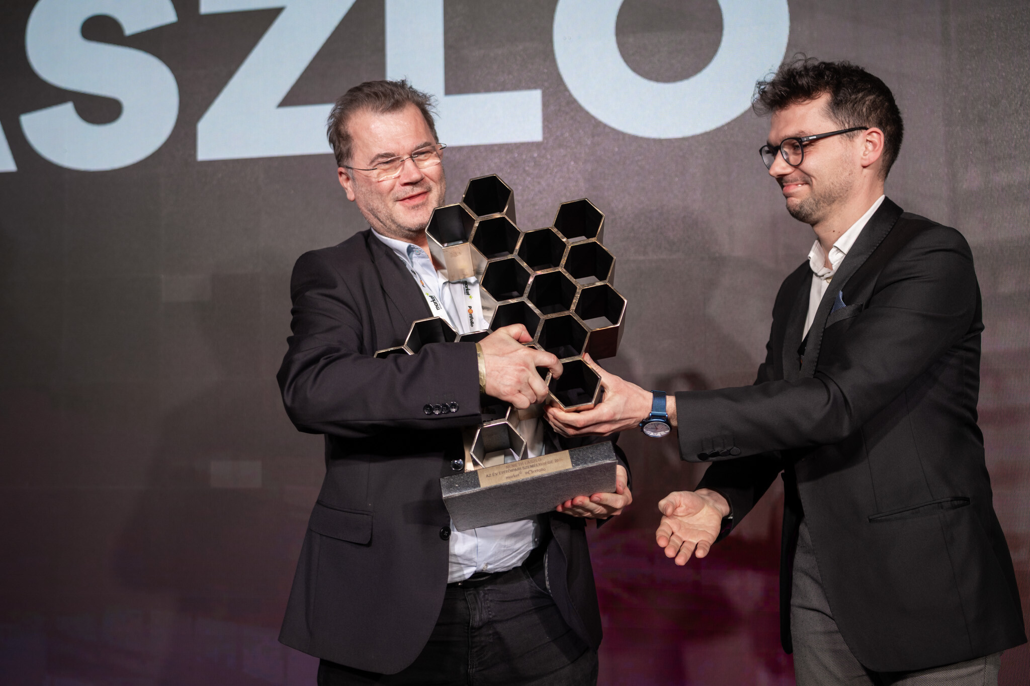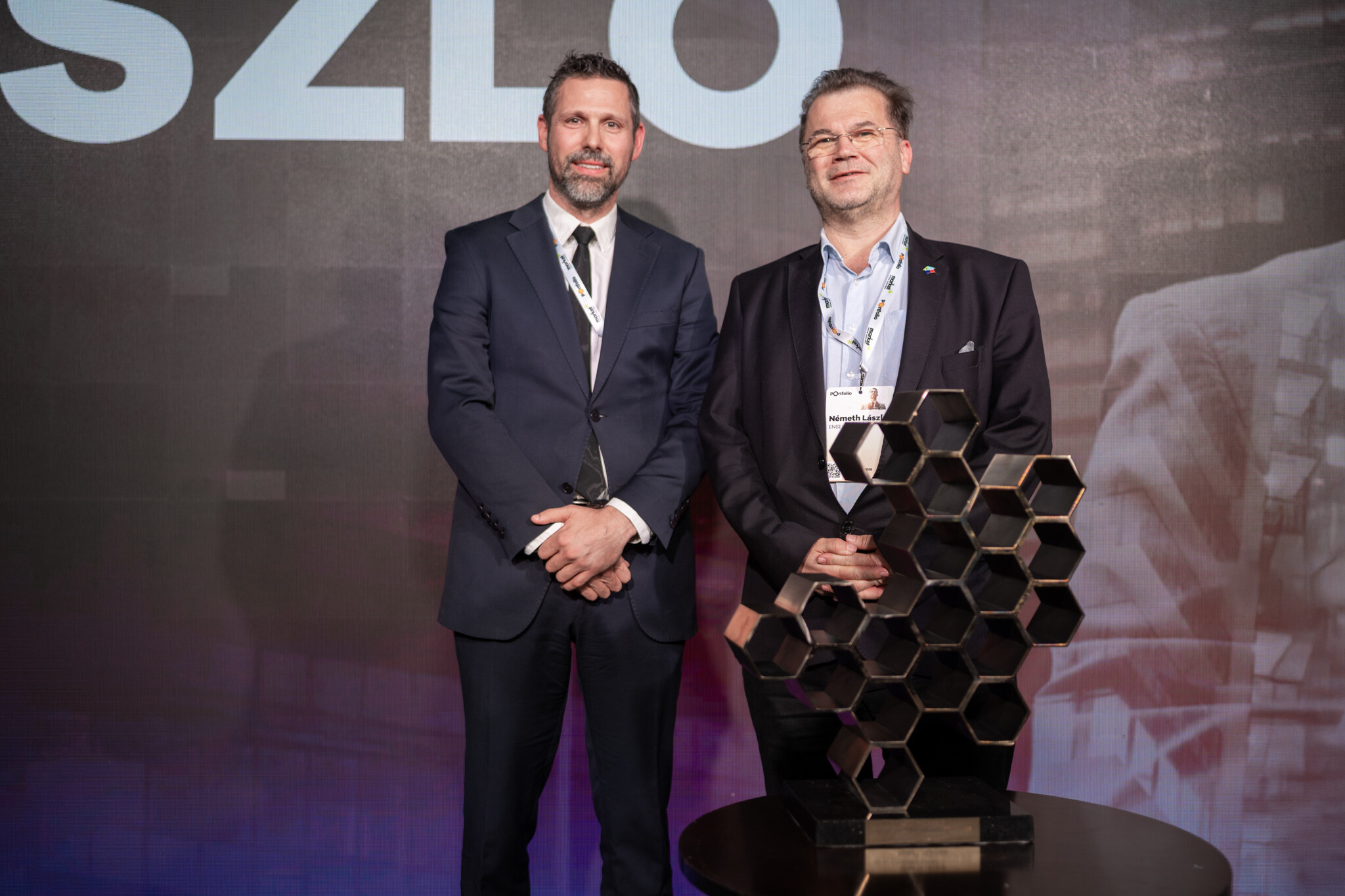 A konferencián az "Év Építőipari Személyisége" díj nyertesét is kihirdették. A hattagú szakmai zsűri döntése alapján idén Németh László (képünkön balra), hazai épületgépészeti kivitelezési piac egyik legnagyobb szereplője, az ENSI Kft. alapítója, ügyvezető igazgatója vehette át az elismerést.