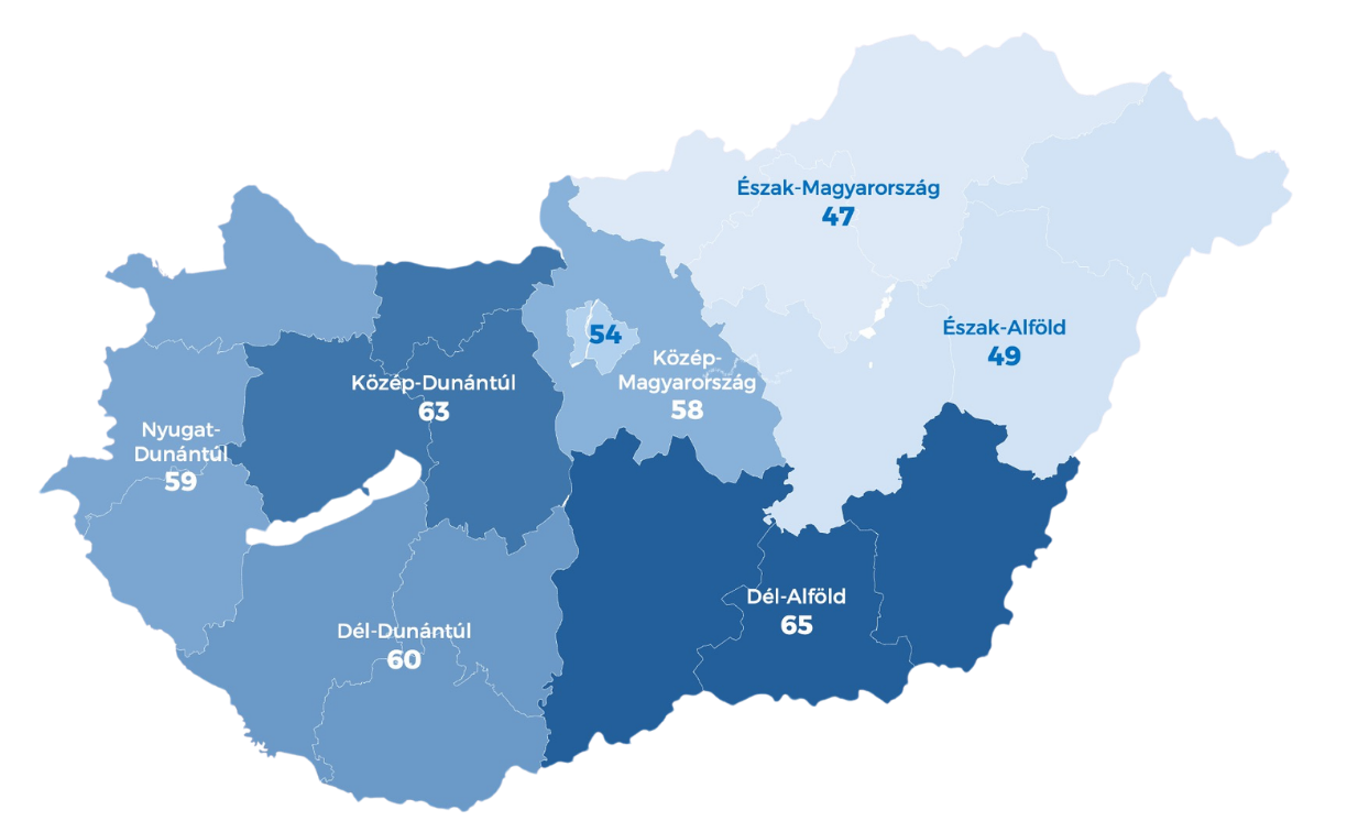 Az ország északi és keleti részein ugyanakkor kevesebbet kell várni a szakemberre. Észak-Alföldön átlagosan 49 napot kell várni a munkakezdésre, különösen Hajdú-Bihar és Szabolcs-Szatmár-Bereg vármegyében gyorsabb a kivitelezők elérhetősége.