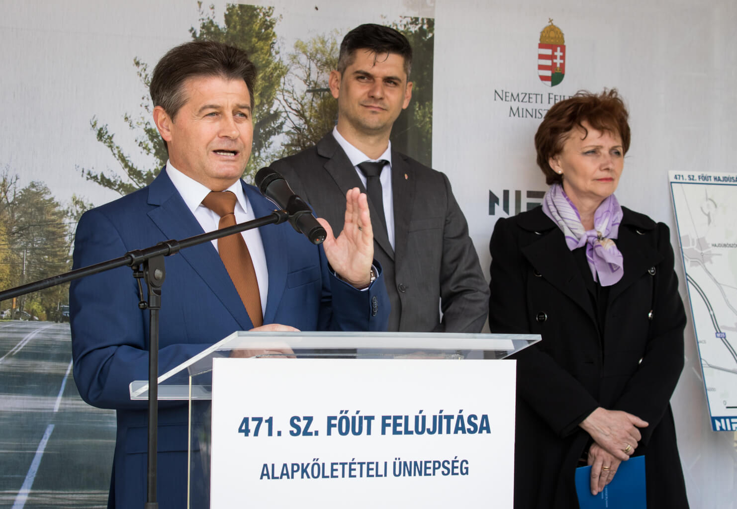 Kifejtette, a most induló beruházásnak köszönhetően jelentős mértékben javul a főút teherbírása. Az új vonalvezetés, a szintbeni vasúti átjáró korszerűsítése és a körforgalmú csomópont létrehozása pedig biztonságosabbá teszi a közlekedést. A korábbinál jóval nagyobb teherbírású burkolat a hajdúsámsoni elkerülő végétől Nyíradony belterületén át egészen a megyehatárig ér majd el.