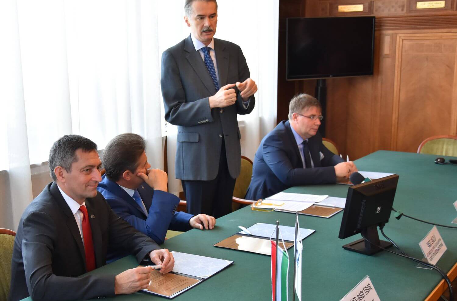 Dr. Nemes-Nagy Tibor (Magyar Közút, vezérigazgató), Tasó László (NFM, államtitkár), Dr. Józsa János (BME, rektor), Barta-Eke Gyula (BME, kancellár)