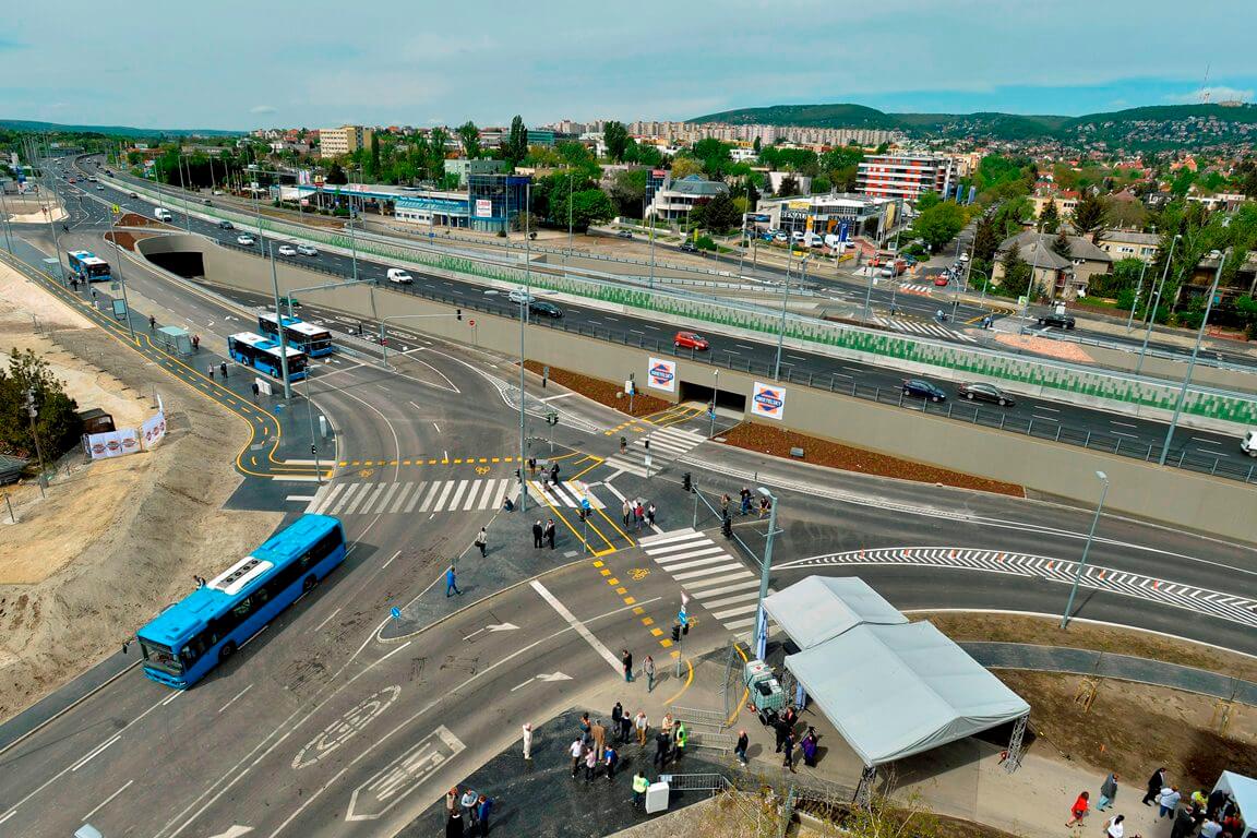 A fővárosban megtörtént a Budaörsi út és a Sasadi út találkozásánál létesített intermodiális csomópont átadása. Az ujbuda.hu korábban azt írta, a 2014 októberében kezdődött beruházásban úgynevezett „két patkós” aluljárós csomópont létesült.