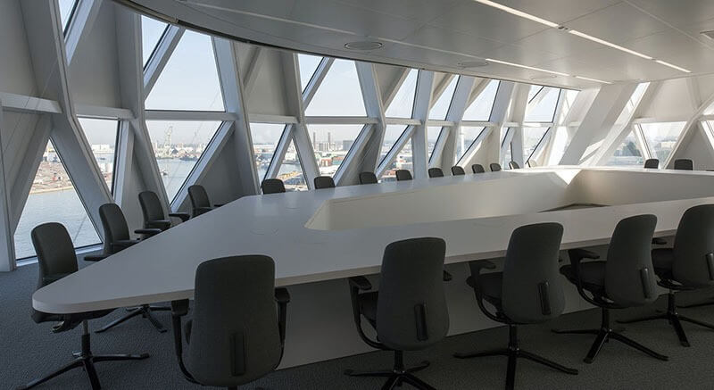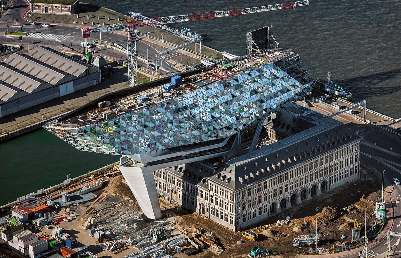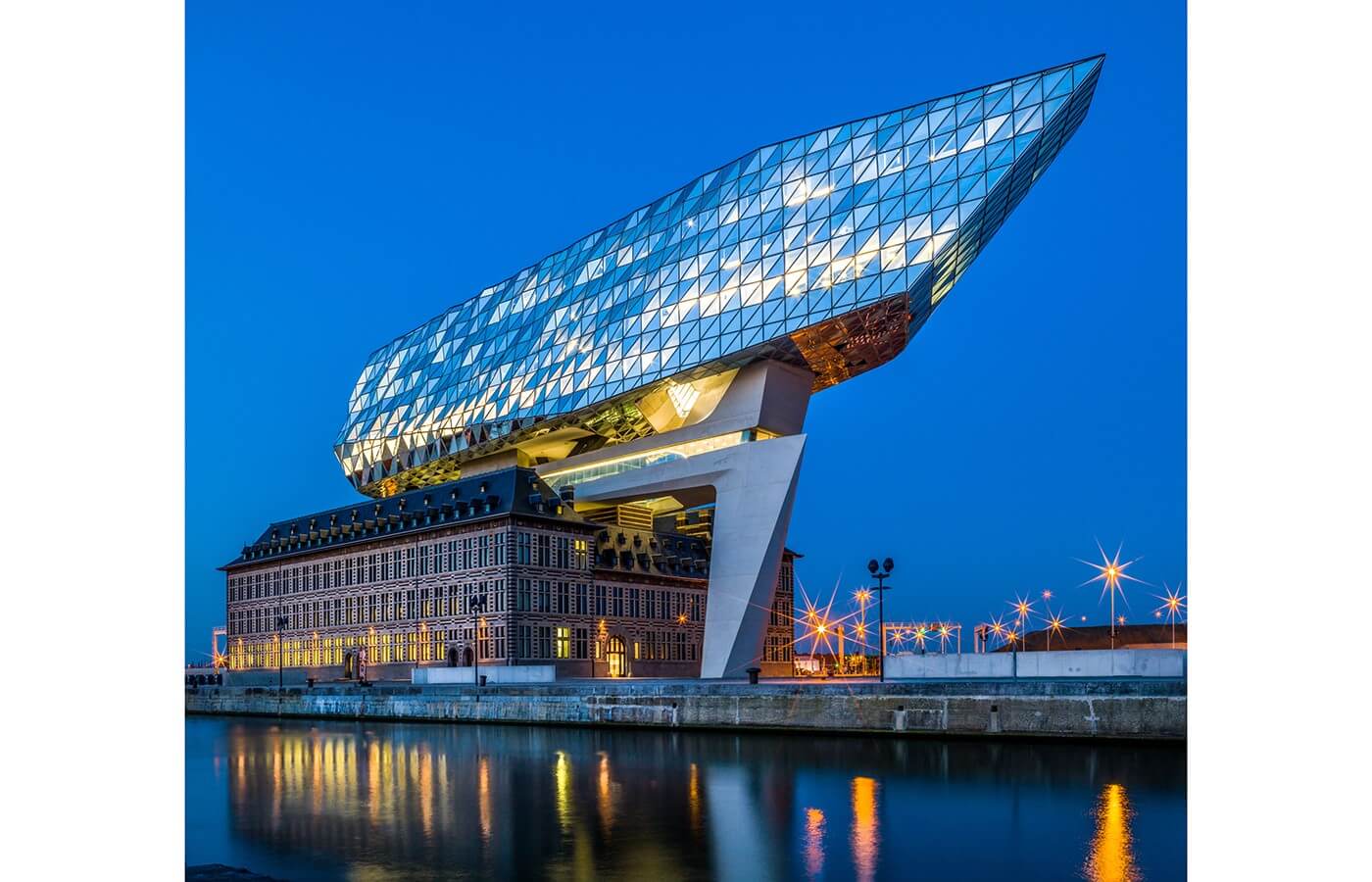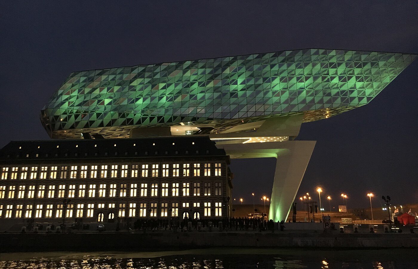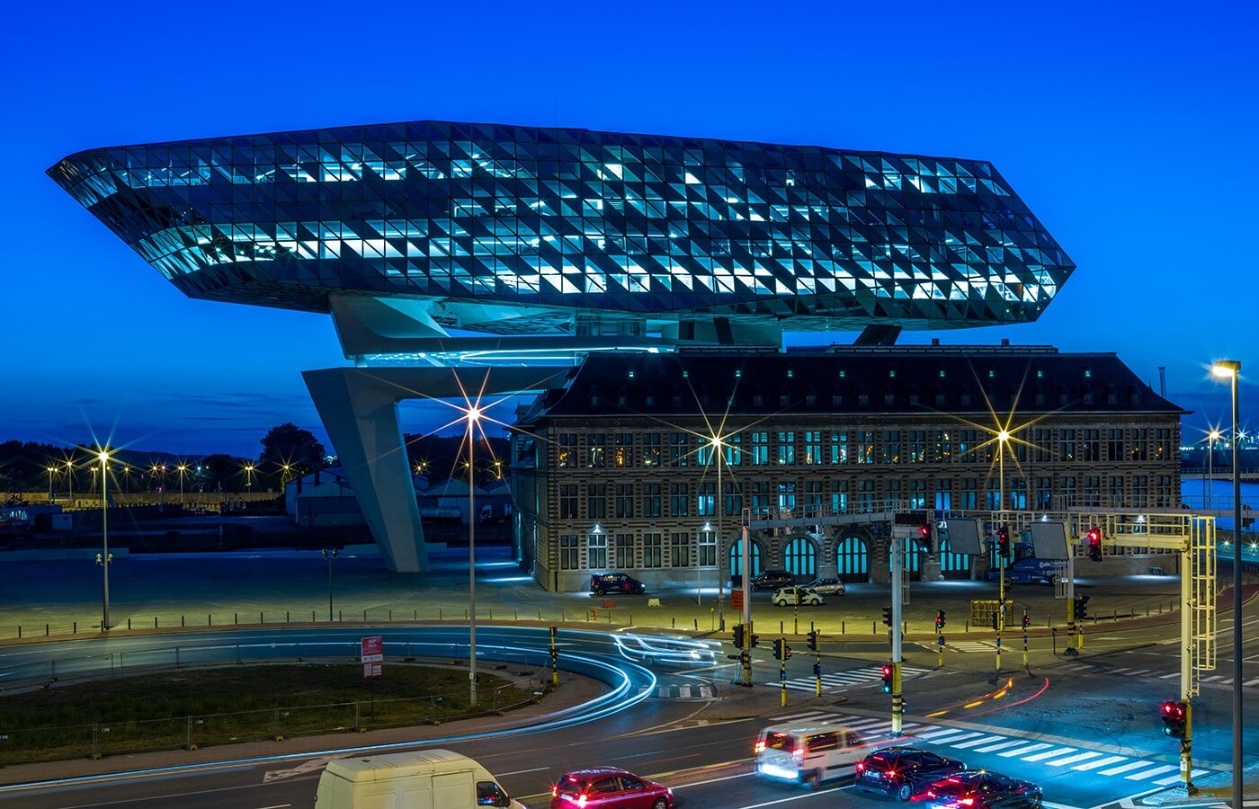 Átadták a belgiumi Antwerpen kikötőjét irányító hatóság parancsnoksági épületét, amelyet a márciusban elhunyt Zaha Hadid iraki-brit építész tervezett. A hajót formázó gigantikus épület a városi tűzoltóság 19. századi, használaton kívüli állomásának tetejére került, s a kikötő 500 fős személyzetének új otthonává vált. A projekt részeként természetesen a tűzoltóállomást is felújították, s egy komplexummá integrálták a két épületrészt.