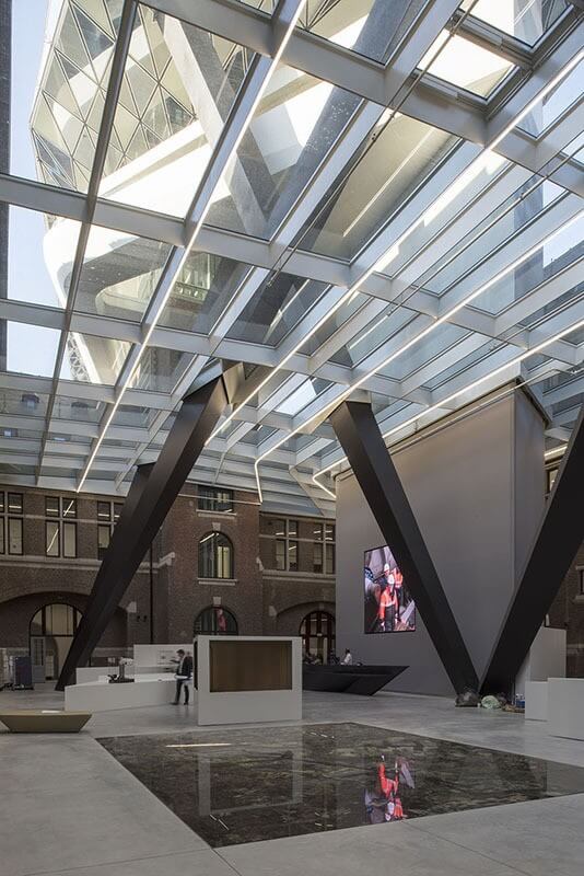 A történelmi hagyományt az ultramodernnel ötvöző, szemet gyönyörködtető iroda 500 ember új munkahelye. Megépítése 17 milliárd forintnak megfelelő összegből négy évig tartott.
