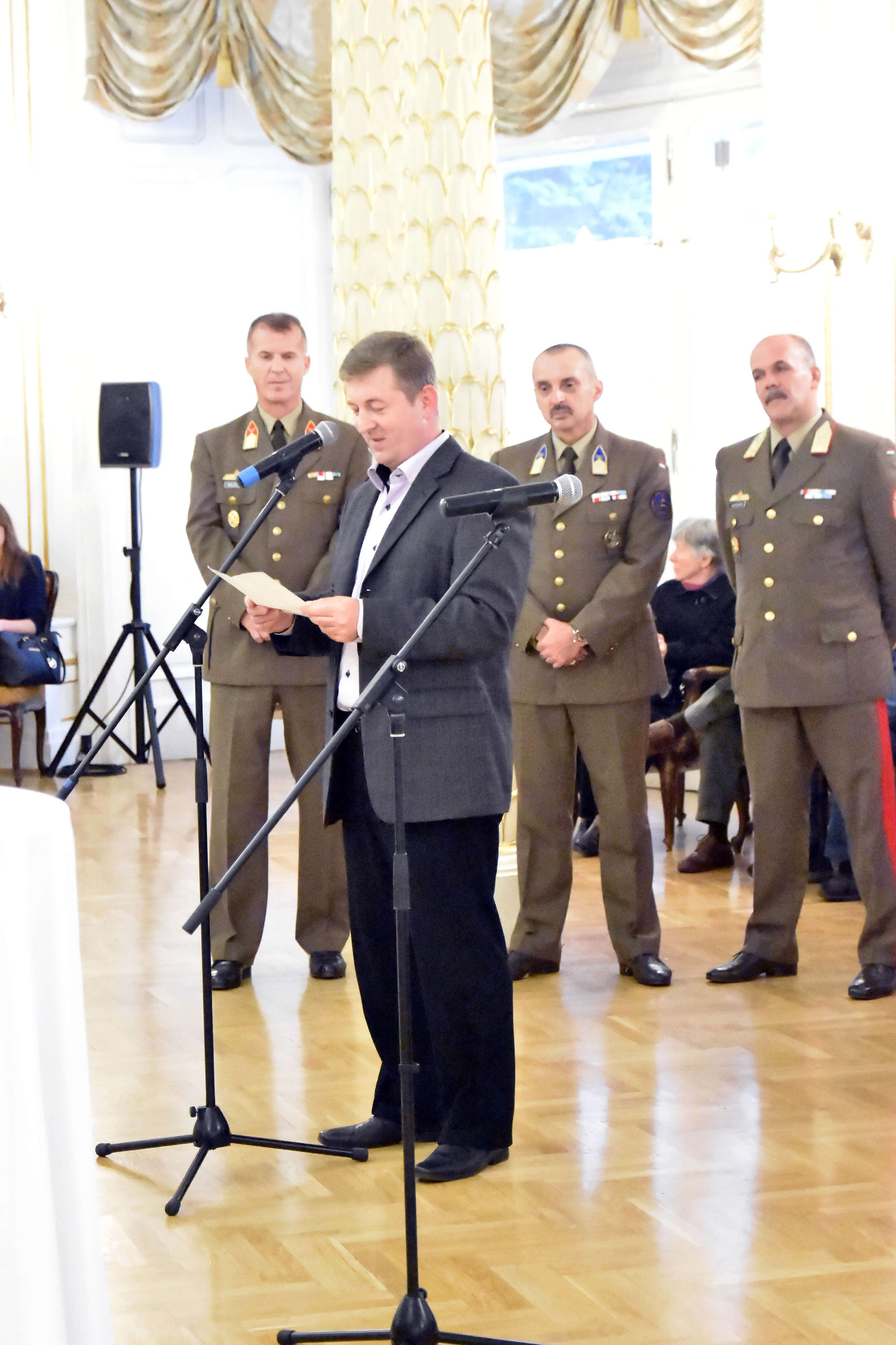 A Stefánia Palota dísztermében ezt követően tartott hivatalos nyitóünnepségen Kaposvári László dandártábornok kiemelte, hogy széles társadalmi összefogás és hosszú út vezetett el a kiállítás létrejöttéig – a Magyar Honvédség a művek helyszínre szállításával segítette a projektet. „A művészeken és a civil szférán kívül a Honvédelmi Minisztérium, a Magyar Honvédség és az üzleti támogatók egyaránt nagyon fontos szerepet játszottak. Ezért szeretném megköszönni a munkát mindenkinek, aki akár csak egy kicsit is hozzátett ahhoz, hogy ez a tárlat megszülethessen.”