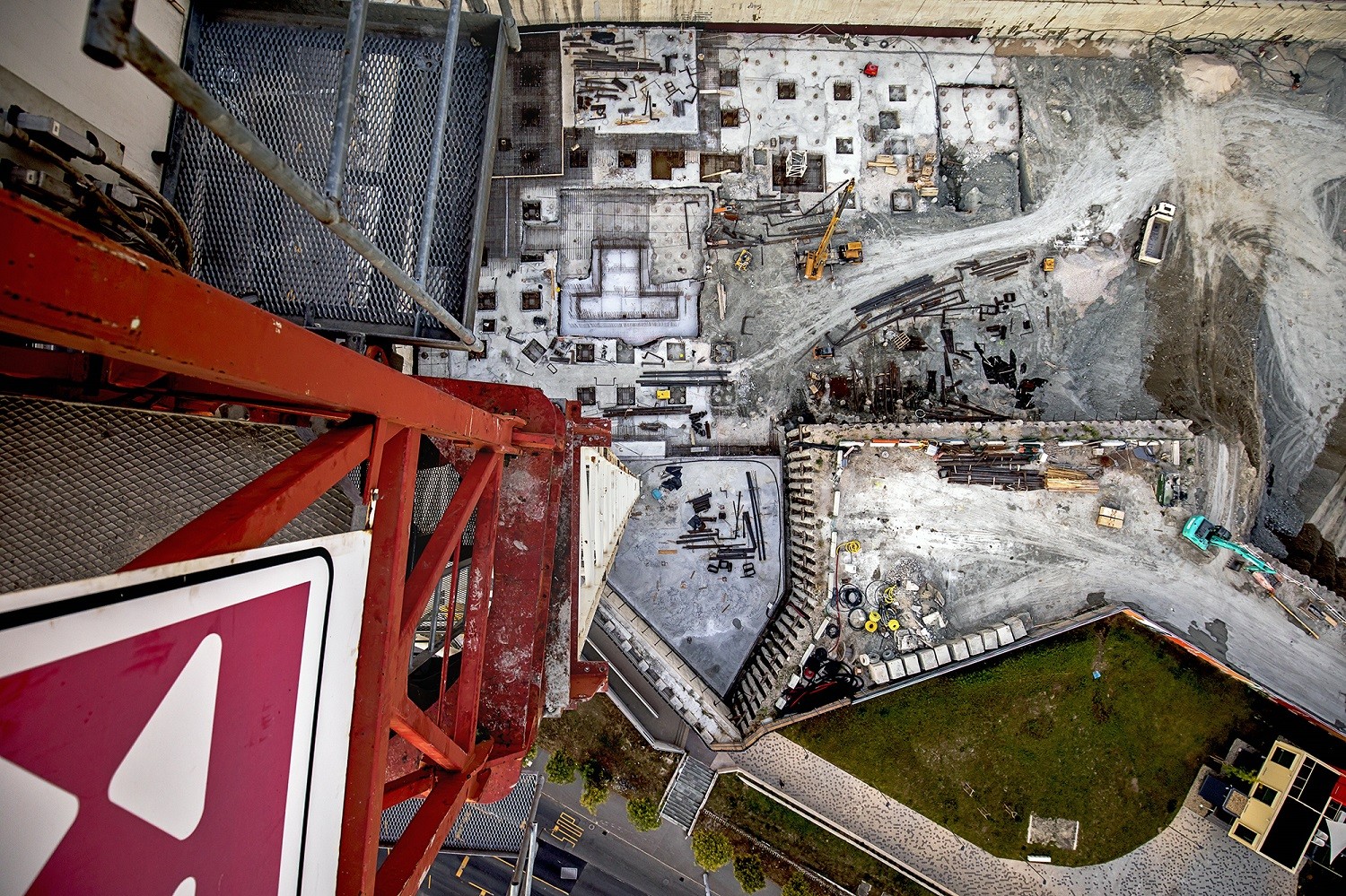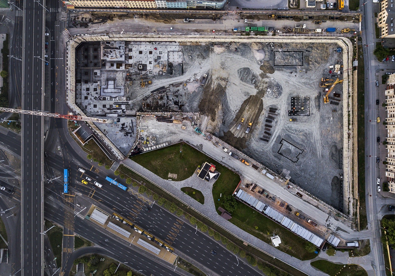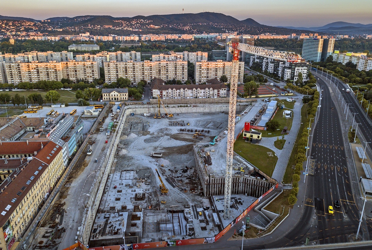 A friss képriport betekintést nyújt az új szakaszba érkezett építkezésbe, melyben új irodai és kiskereskedelmi városnegyed jön létre.