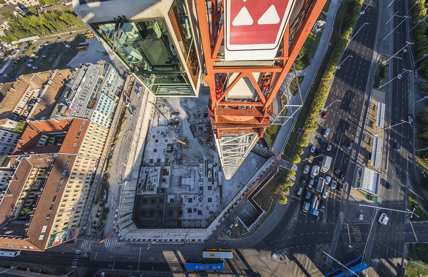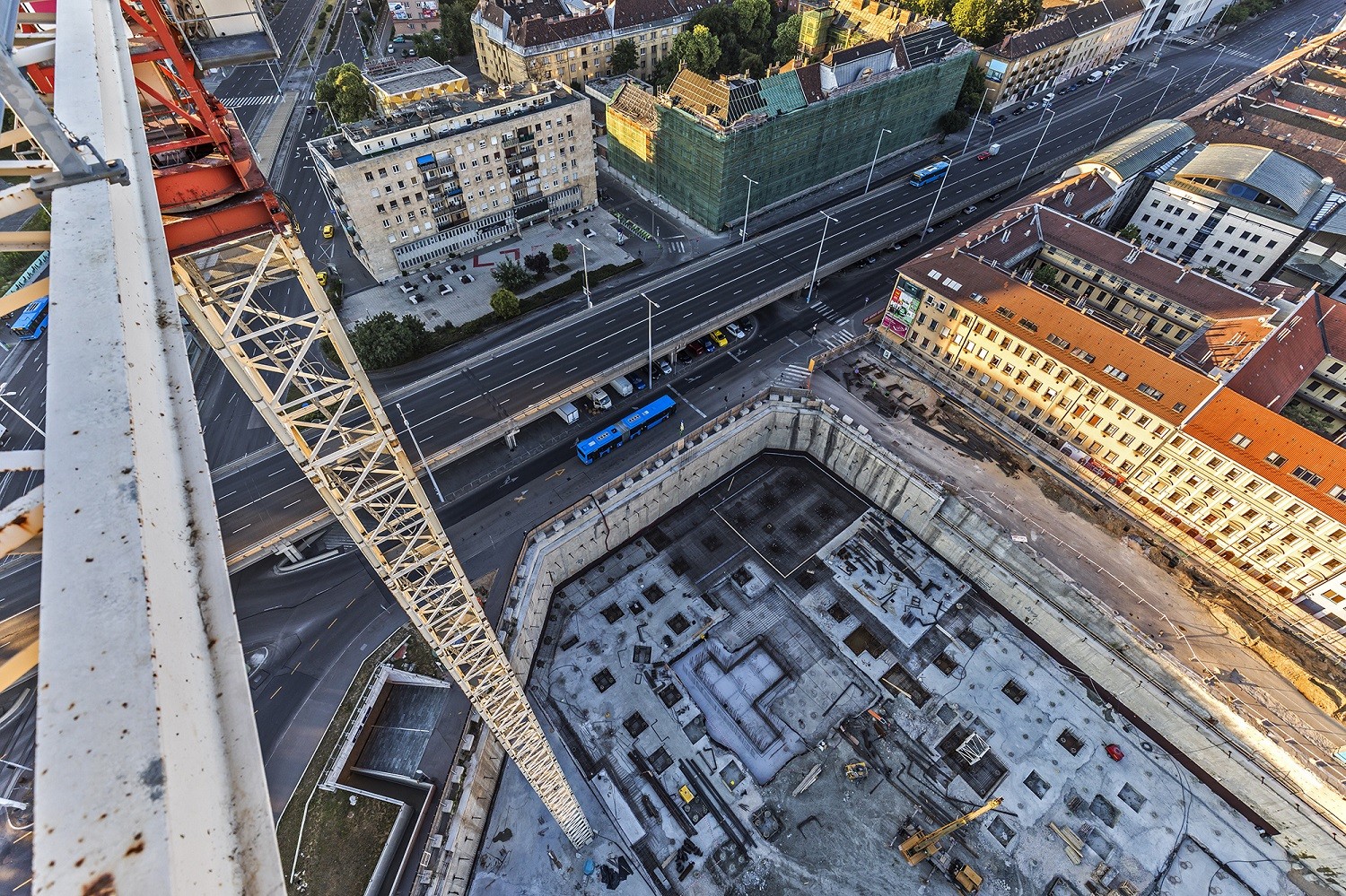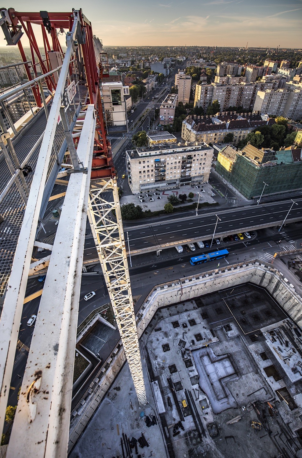 Az Agorára időközben Budapest jelenlegi legmagasabb, 90 méteres kikötés nélküli toronydaruja is megérkezett, amely a további darukkal együtt a kivitelezés látványos fázisát segíti, továbbá innen fotózva készült a jelenlegi képriport anyaga is.