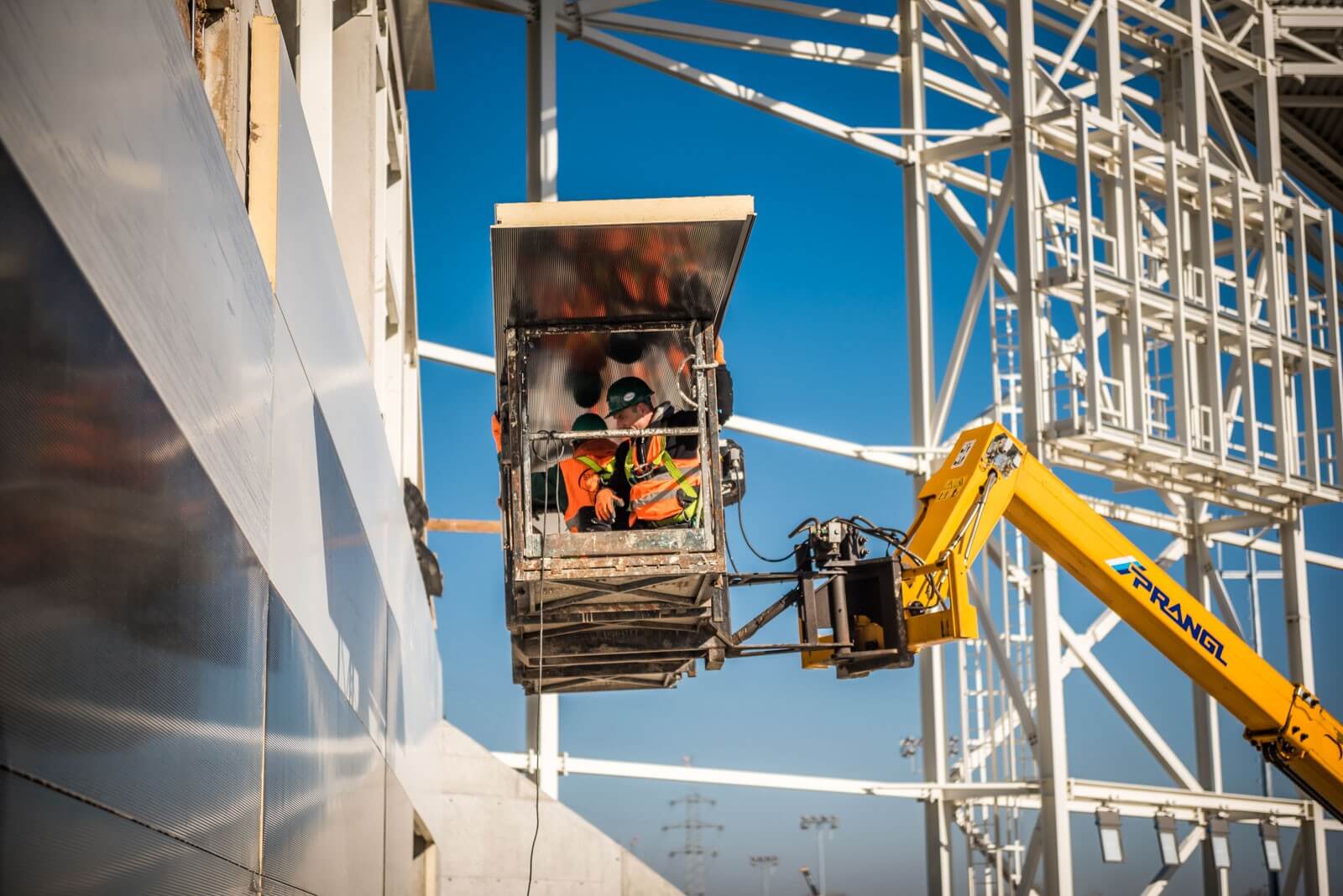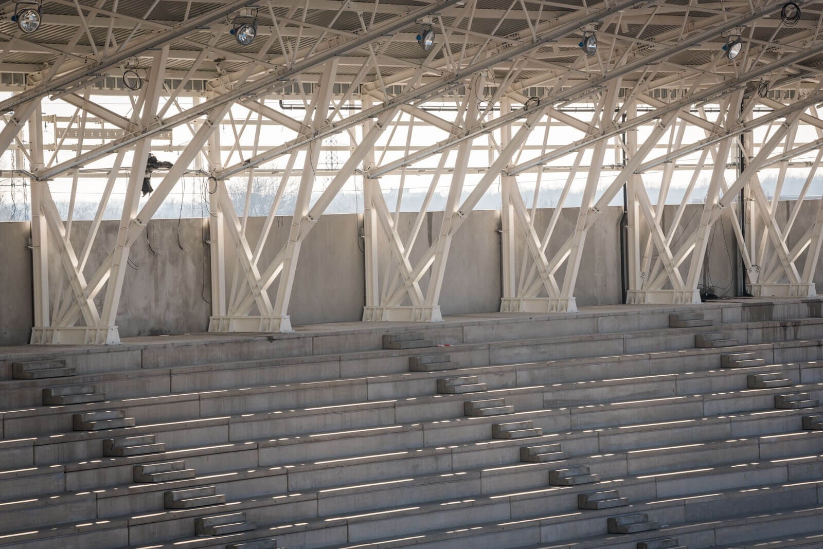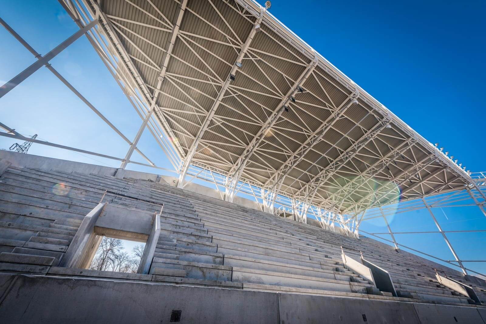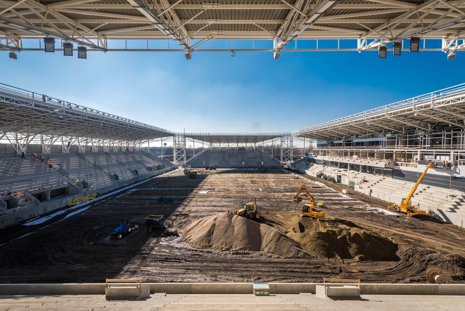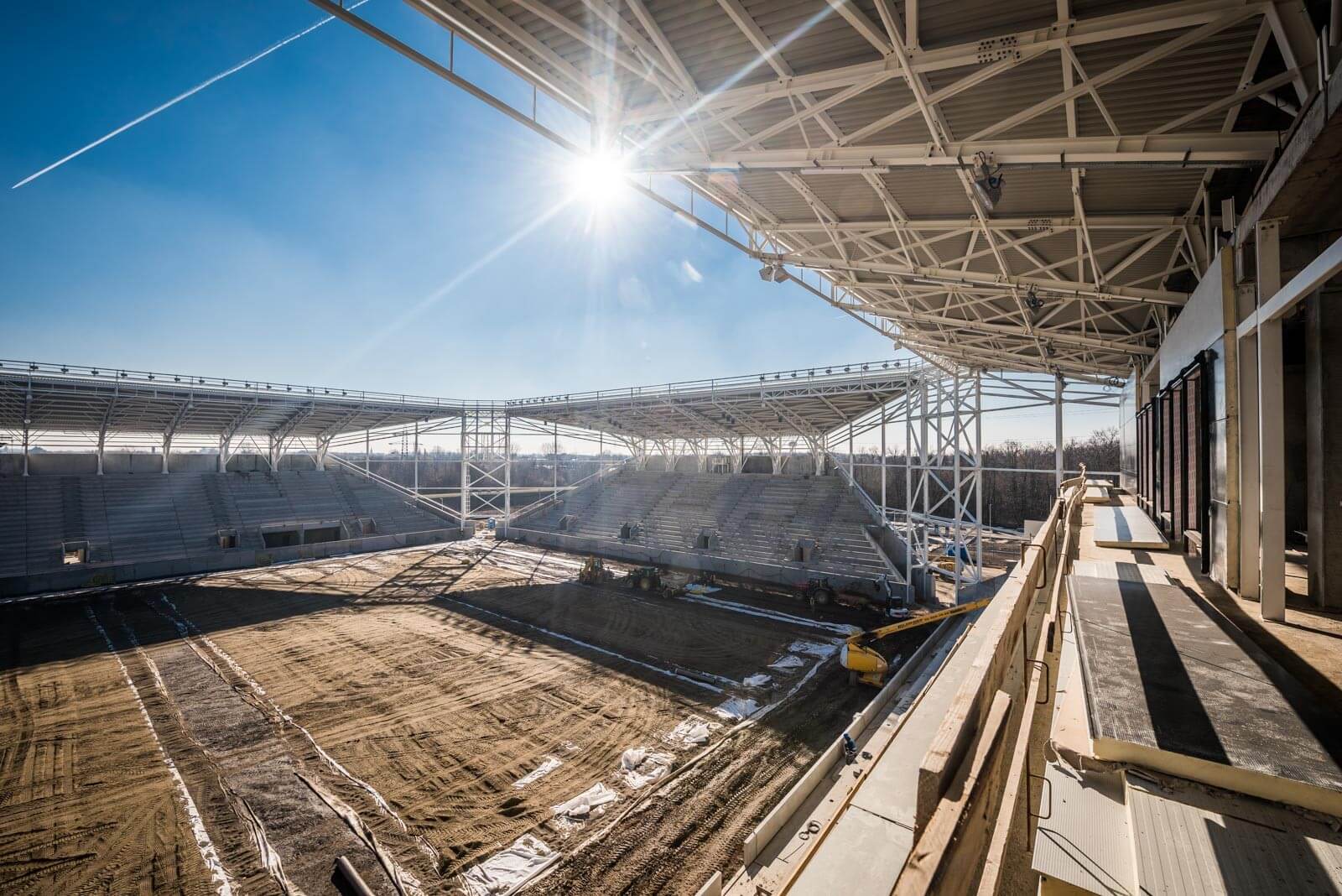 A focistadion 8 ezer férőhellyel épül meg, és a szegedi felnőtt és utánpótláscsapatok otthona lesz. Az aréna építkezésén februárban ottjártunkkor már a belső munkálatok zajlottak, befejezéshez közeledett a válaszfalak építése. Érdekesség, hogy az országban az elsők közt alkalmaztak feszített pillért a szegedi stadionnál. A szokatlan megoldást a szerkezet karcsúsága és a rövid határidő miatt választották a beruházásnál.
