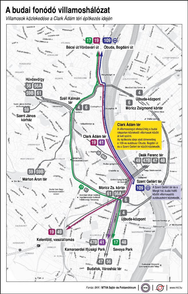 Befejezték a Lánchíd budai villamosalagútjának felújítását, így hétfőtől Dél-Budától Óbudáig jár a 19-es és a 41-es villamos, ezzel teljessé válik a budai fonódó villamoshálózat.