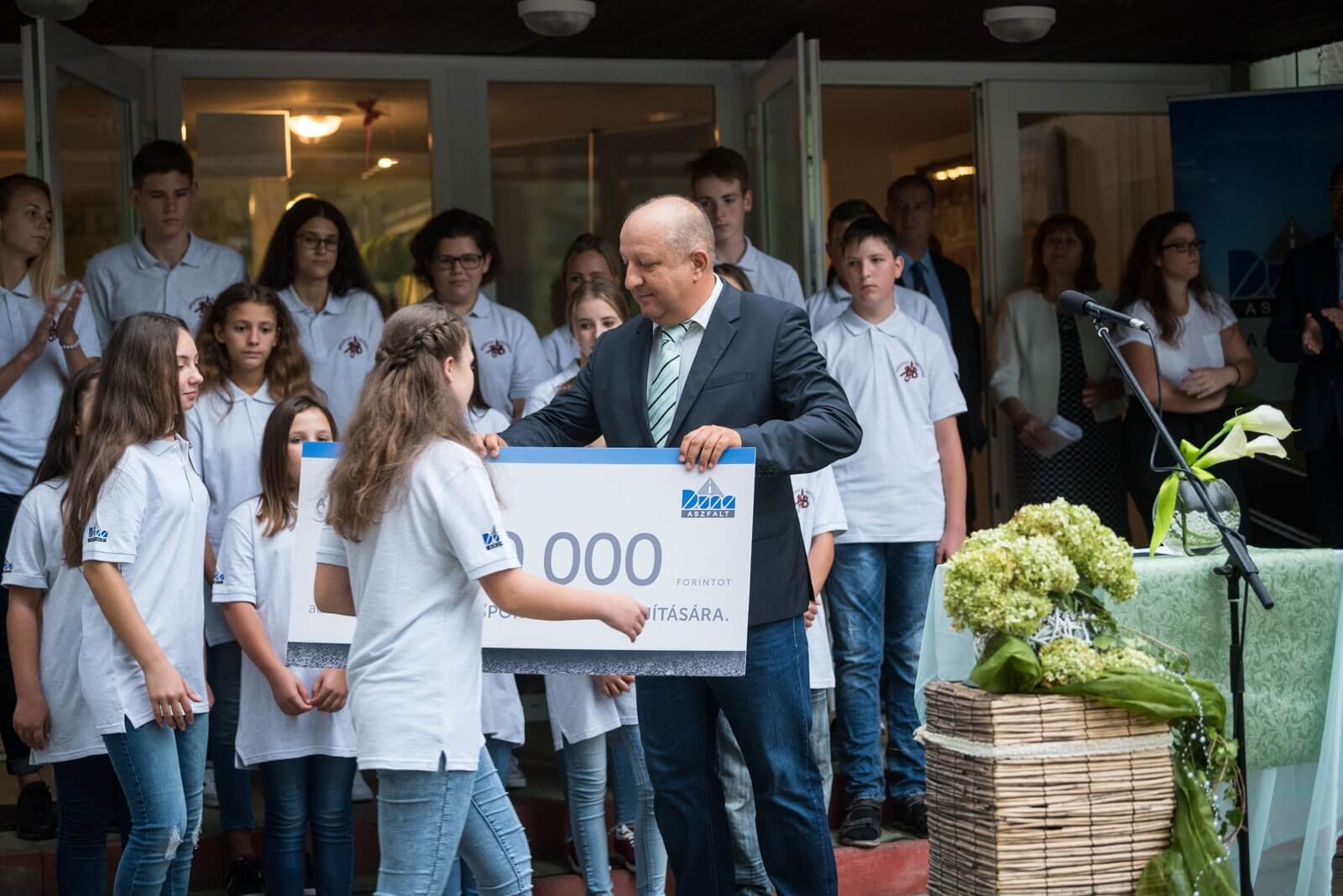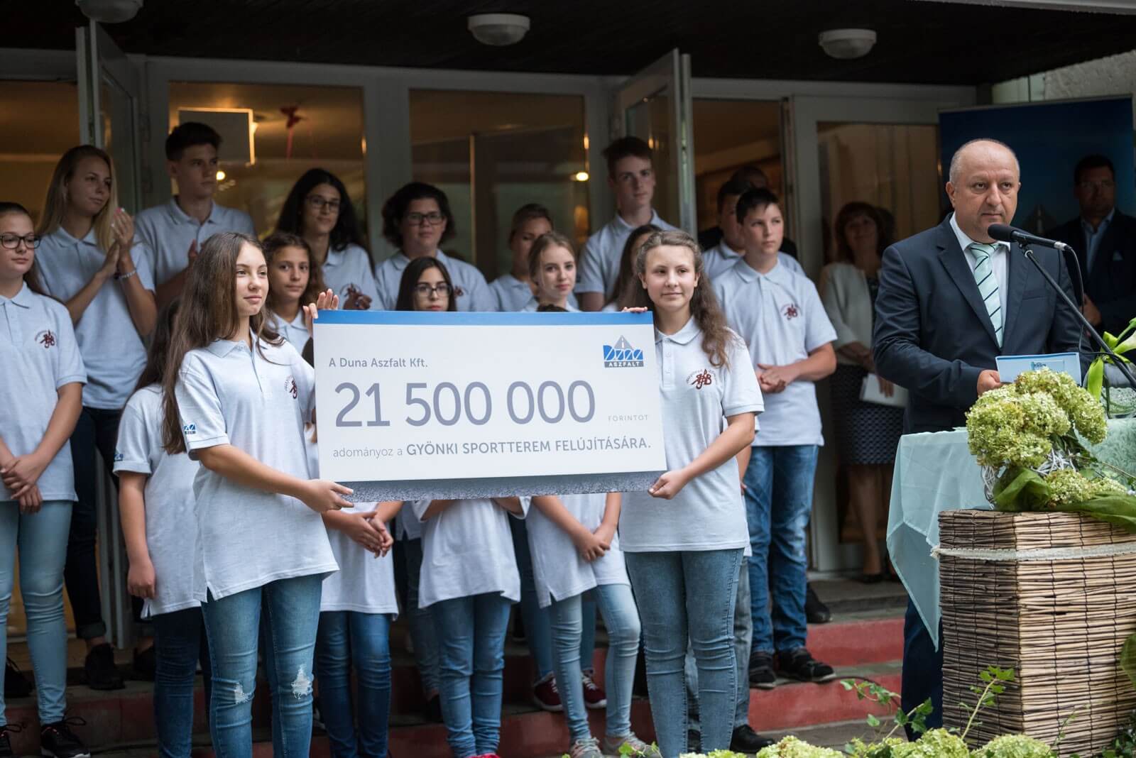 „A Duna Aszfalt társadalmilag is felelős vállalatként feladatának és kötelességének tekinti, hogy azokon a területeken is támogatást nyújtson, amelyekre alaptevékenysége nem terjed ki, legyen szó közlekedésbiztonságról, sportról, egészségügyről vagy tehetséggondozásról. Cégünk kiemelkedő támogatásának és kollégáink készséges szerepvállalásának hála szeptembertől már a megújult sportteremben tornázhatnak a tanulók”