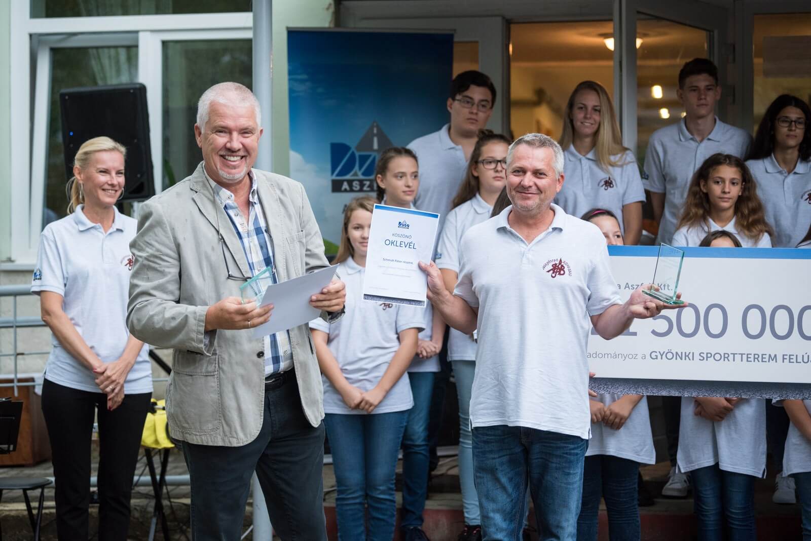 Közel 300 tanuló vehette birtokba hétfőn a gyönki iskola sporttermét, melyet a Duna Aszfalt Kft. 21,5 millió forintos támogatásának köszönhetően újítottak fel. A kivitelezéshez szükséges alapanyagokat a Mapei Kft. biztosította. Az ünnepélyes átadón került sor a támogatás jelképes átadására: a szimbolikus óriáscsekket Lehel Zoltán, a Duna Aszfalt innovációs főmérnöke és szóvivője nyújtotta át Bán Tamás intézményvezetőnek.
