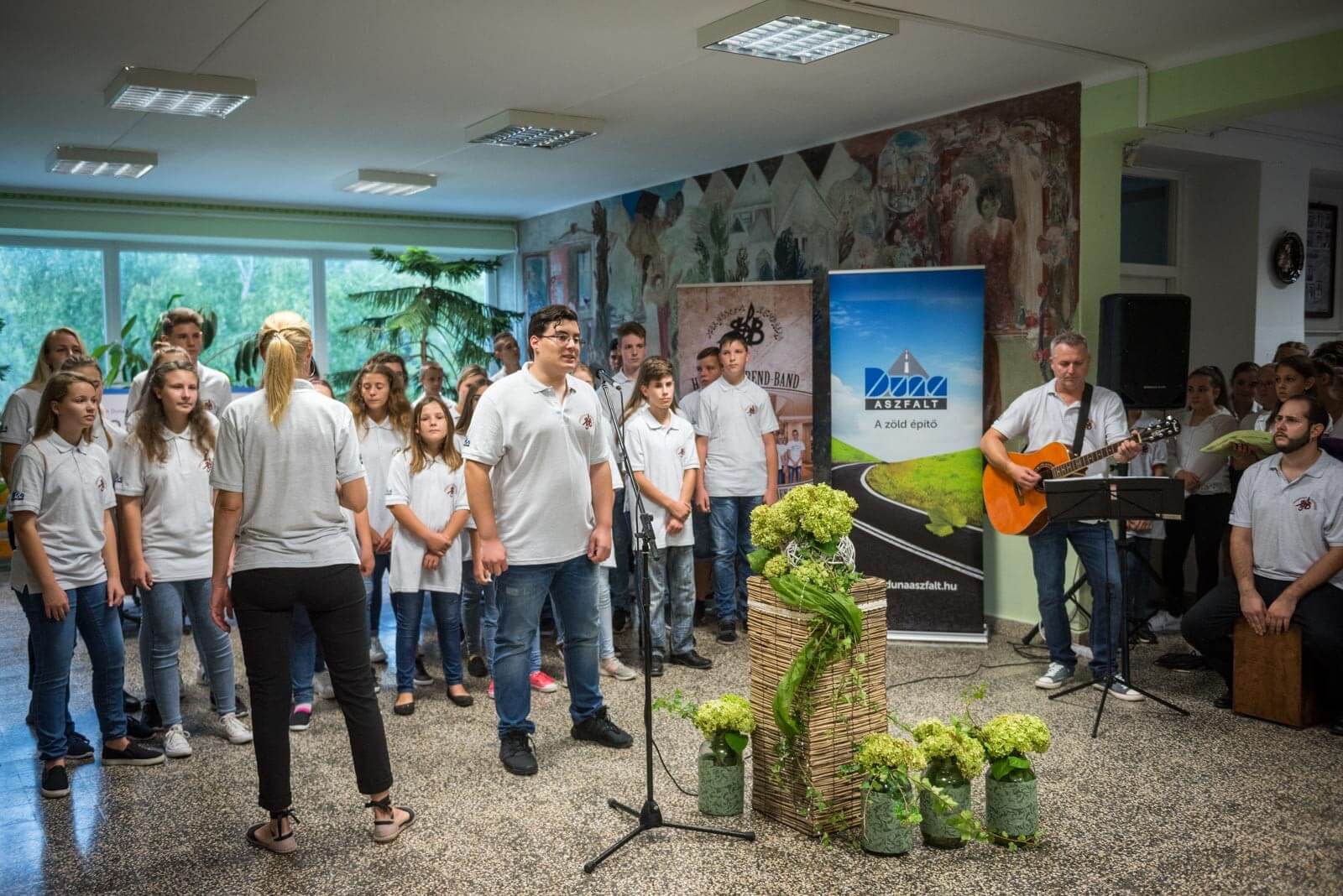 A Hőgyészi Hegyhát Általános Iskola és Gimnázium Gyönki Tagintézménye 14 település 285 tanulójának nevelését, oktatását, művészeti képzését végzi, s innen indult az országos és határon túli sikereket is elért Harmónia-Rend-Band Gyermekkórus és Zenekar. A könnyűzenei formáció az idei Országos Mérnökbálon keltette fel a Duna Aszfalt képviselőinek figyelmét: a rendezvényre meghívott együttes tagjai a fellépésük után meséltek az iskola sporttermének állapotáról. A társadalmi felelősségvállalás kérdését kiemelten kezelő cég ekkor ajánlotta fel segítségét.