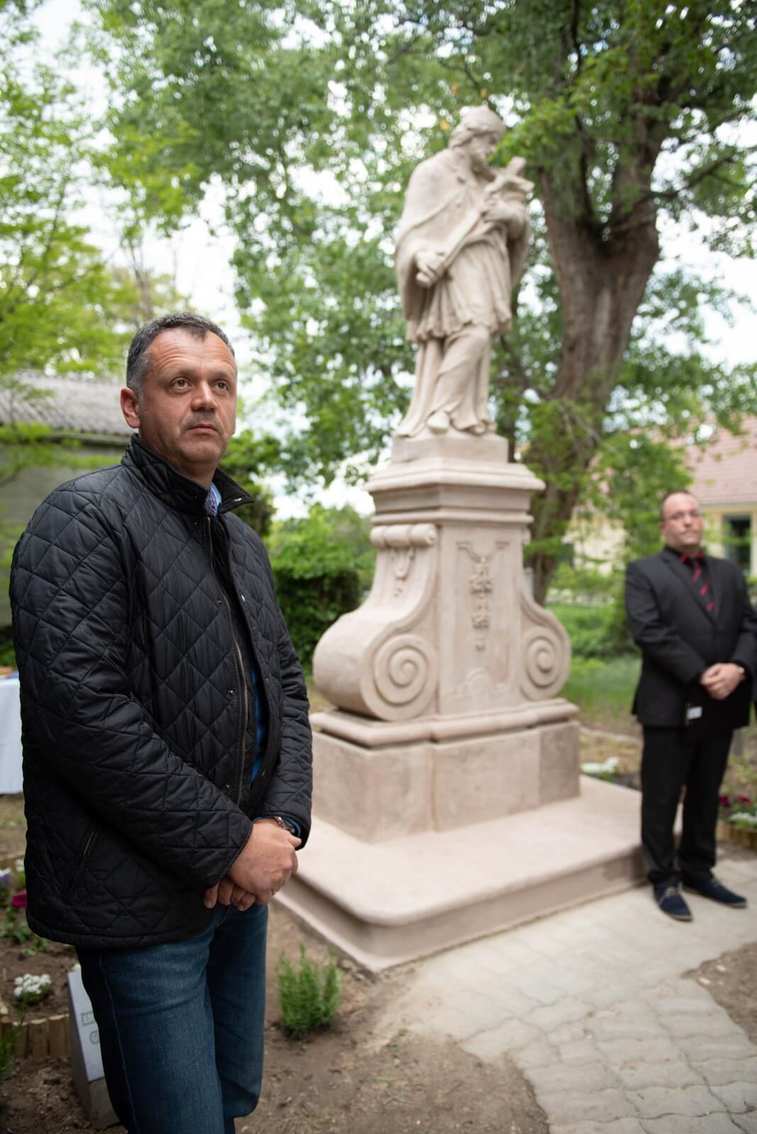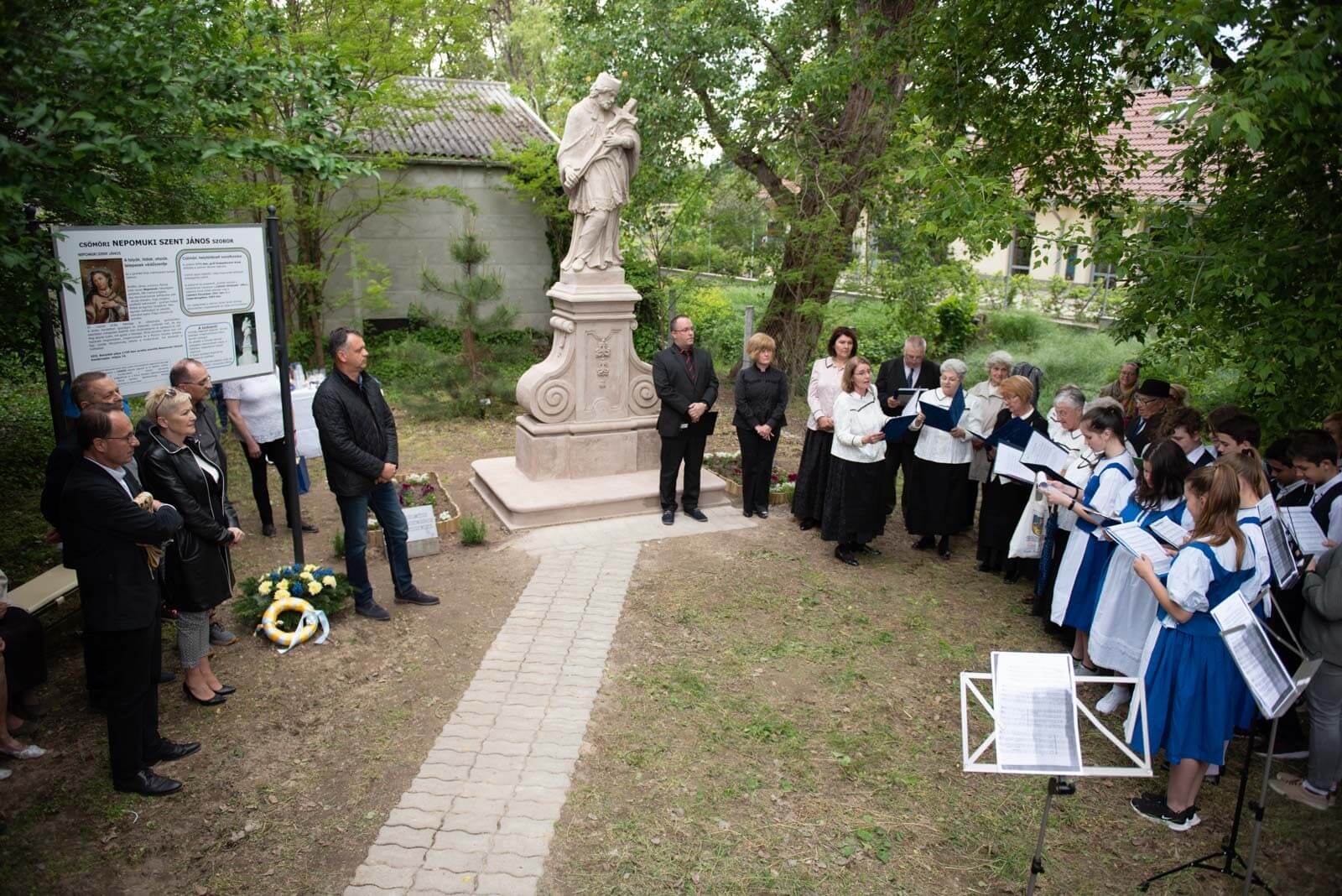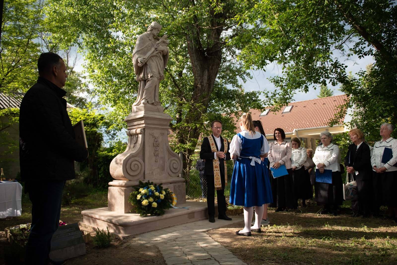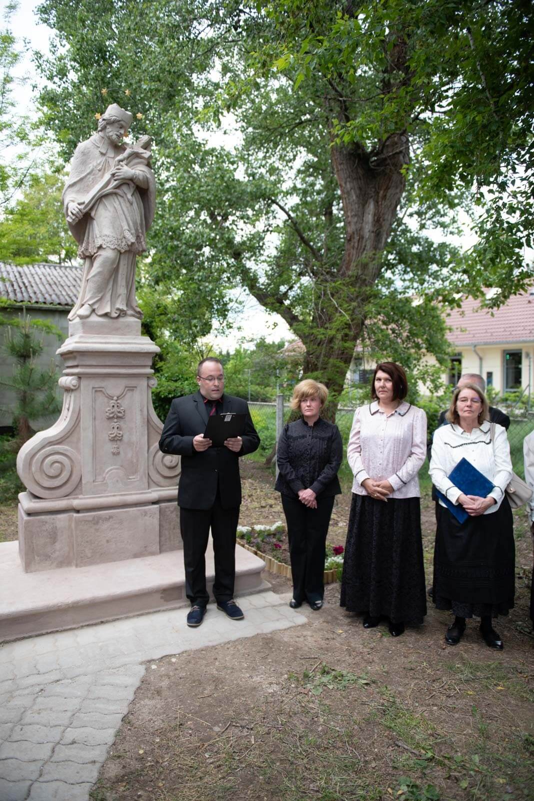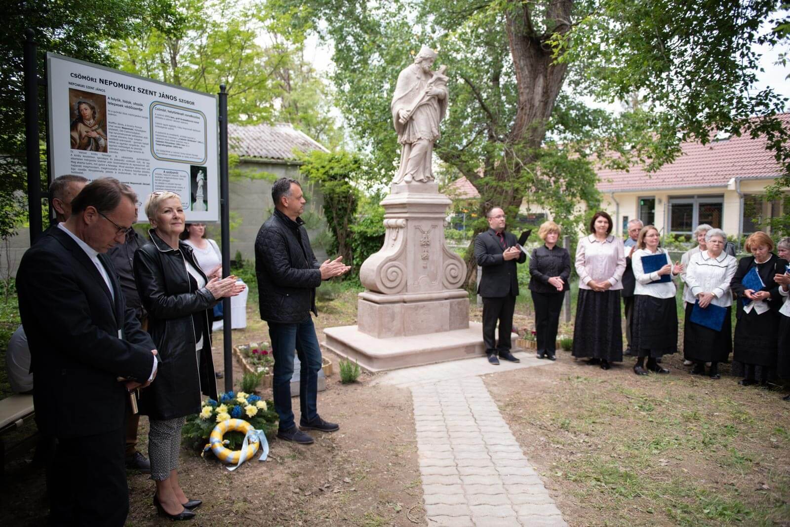Csányi István, a Mi Kis Falunk Egyesület elnöke a helyszínen tartott beszédében felelevenítette, hogy a jelenleg 248 éves szobrot még Grassalkovich Antal adományozta Csömör lakosságának az 1700-as évek második felében. Az évszázadok során a csömöriek óvták a szobrot és rendben tartották a neki otthont adó kis kertet.