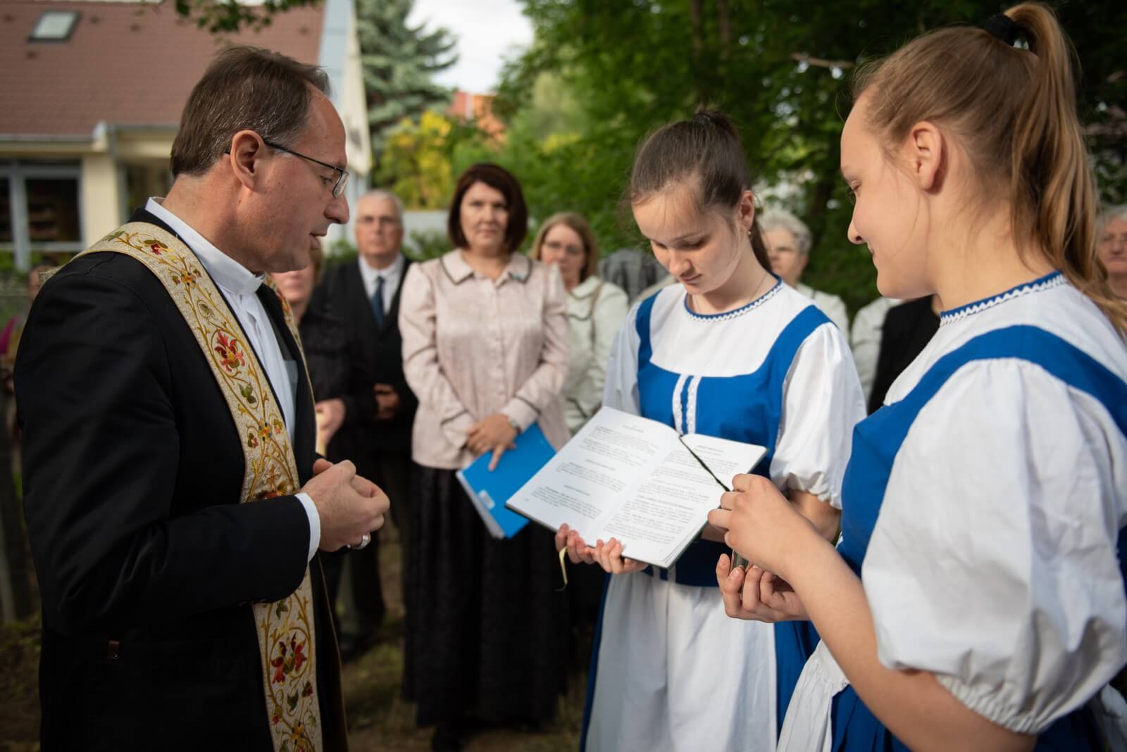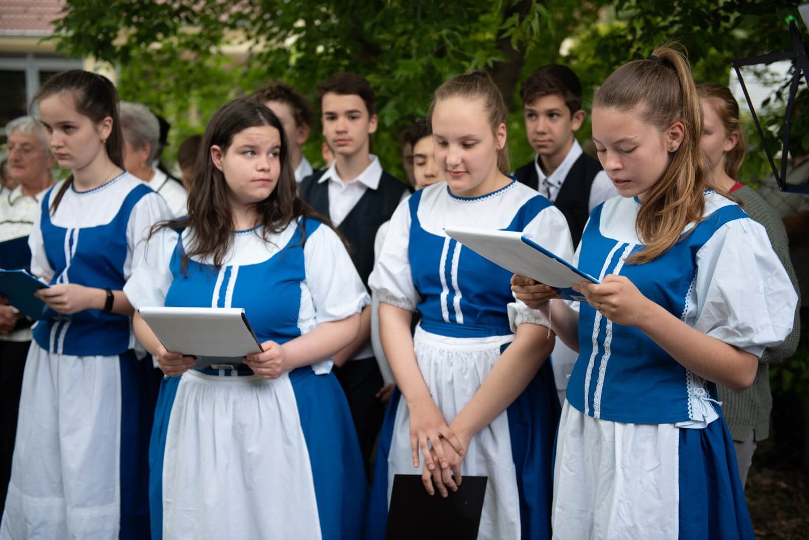 Az önkéntes segítők mellett a csömöri német nemzetiségi önkormányzat, a Sváb Baráti Kör és a Mátyás Király Általános Iskola német tagozatos diákjai évről évre segítenek a kert rendben tartásában.