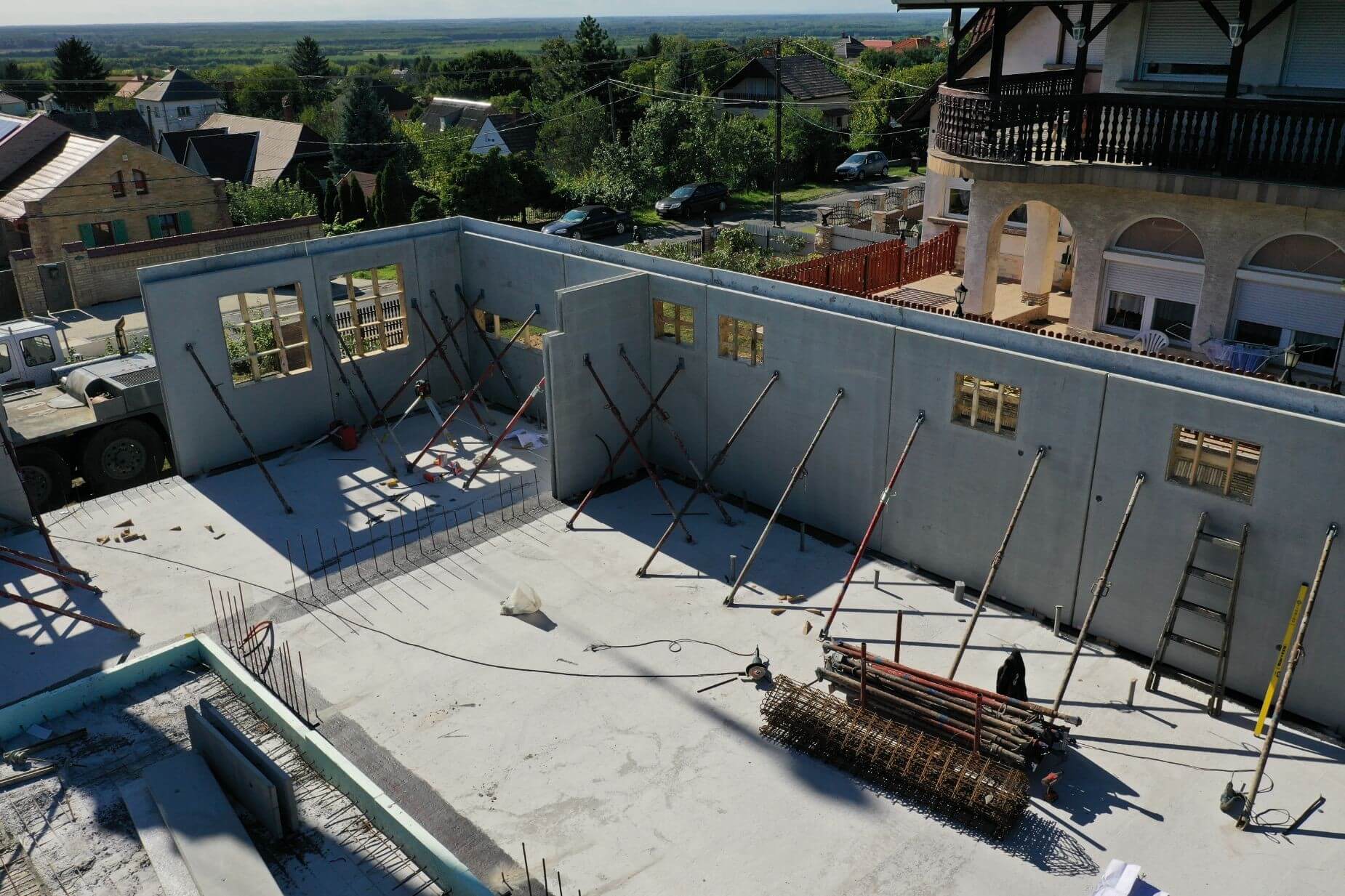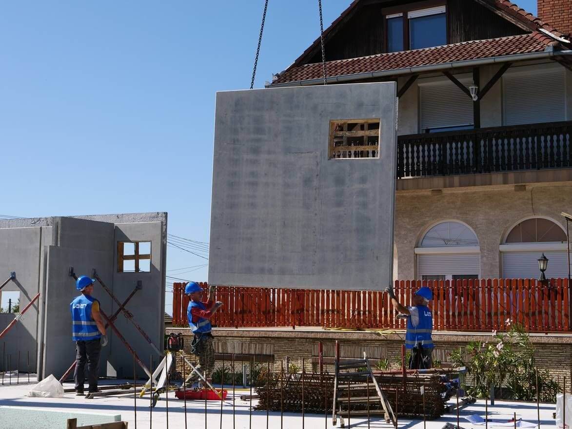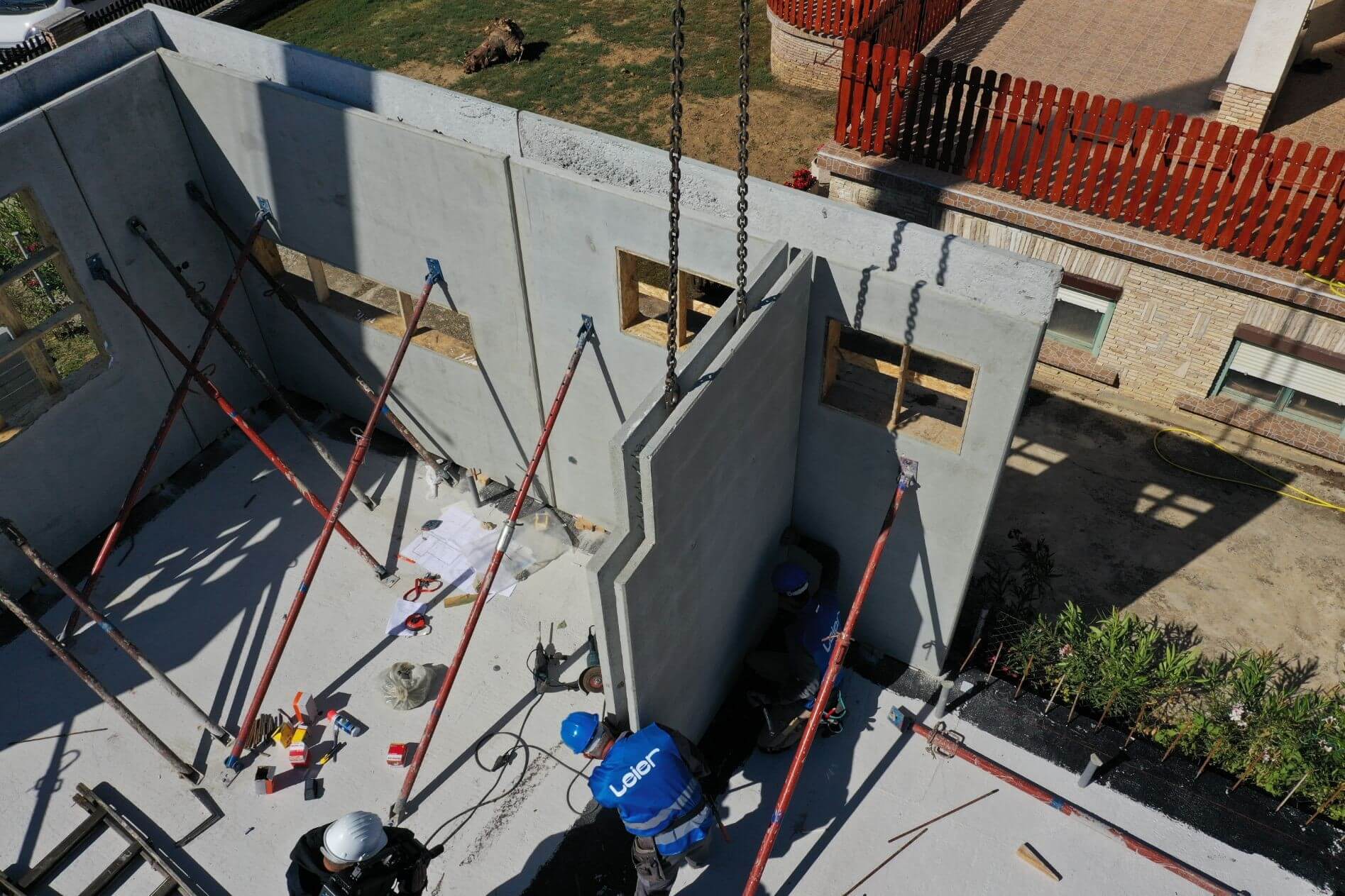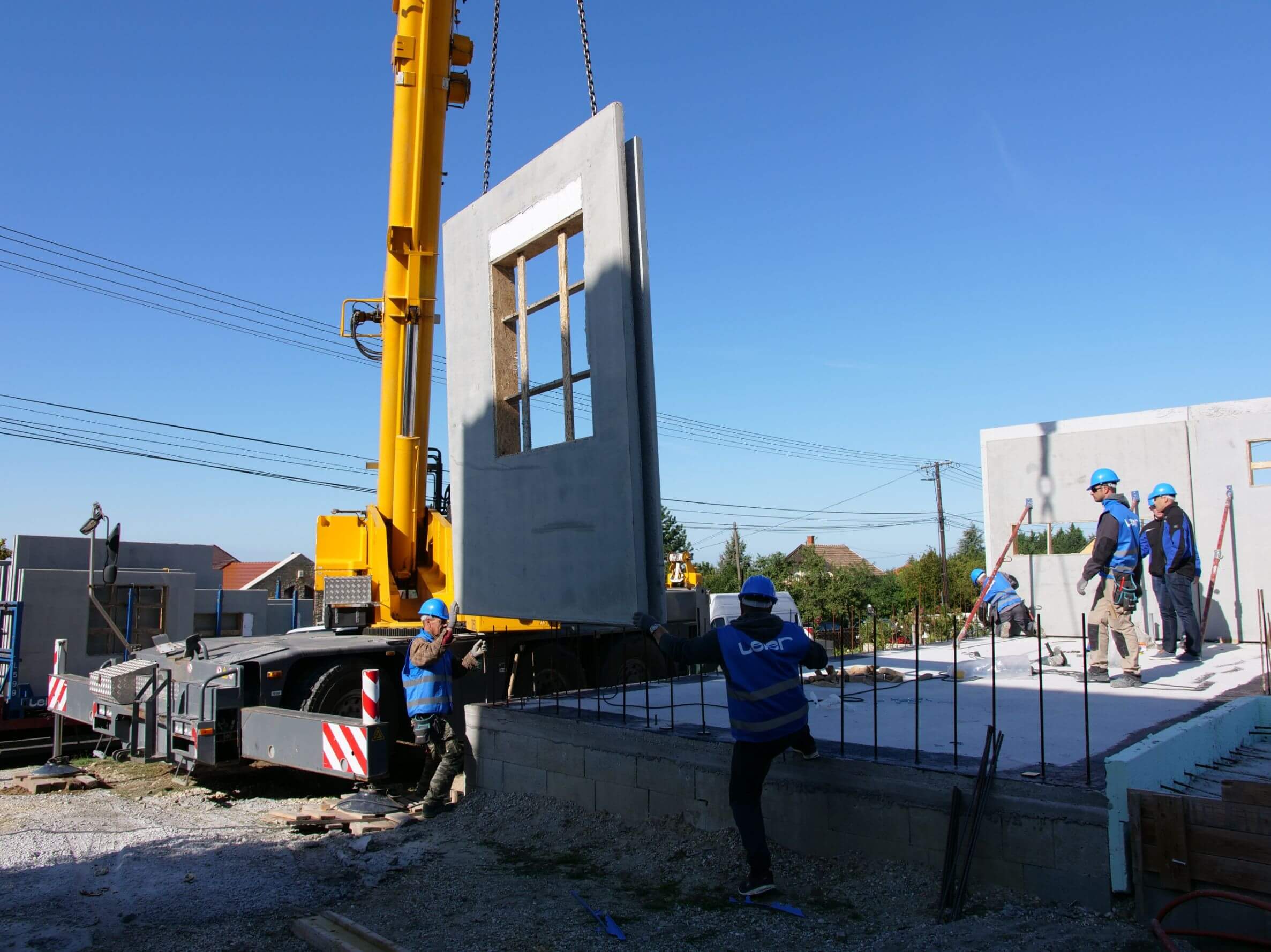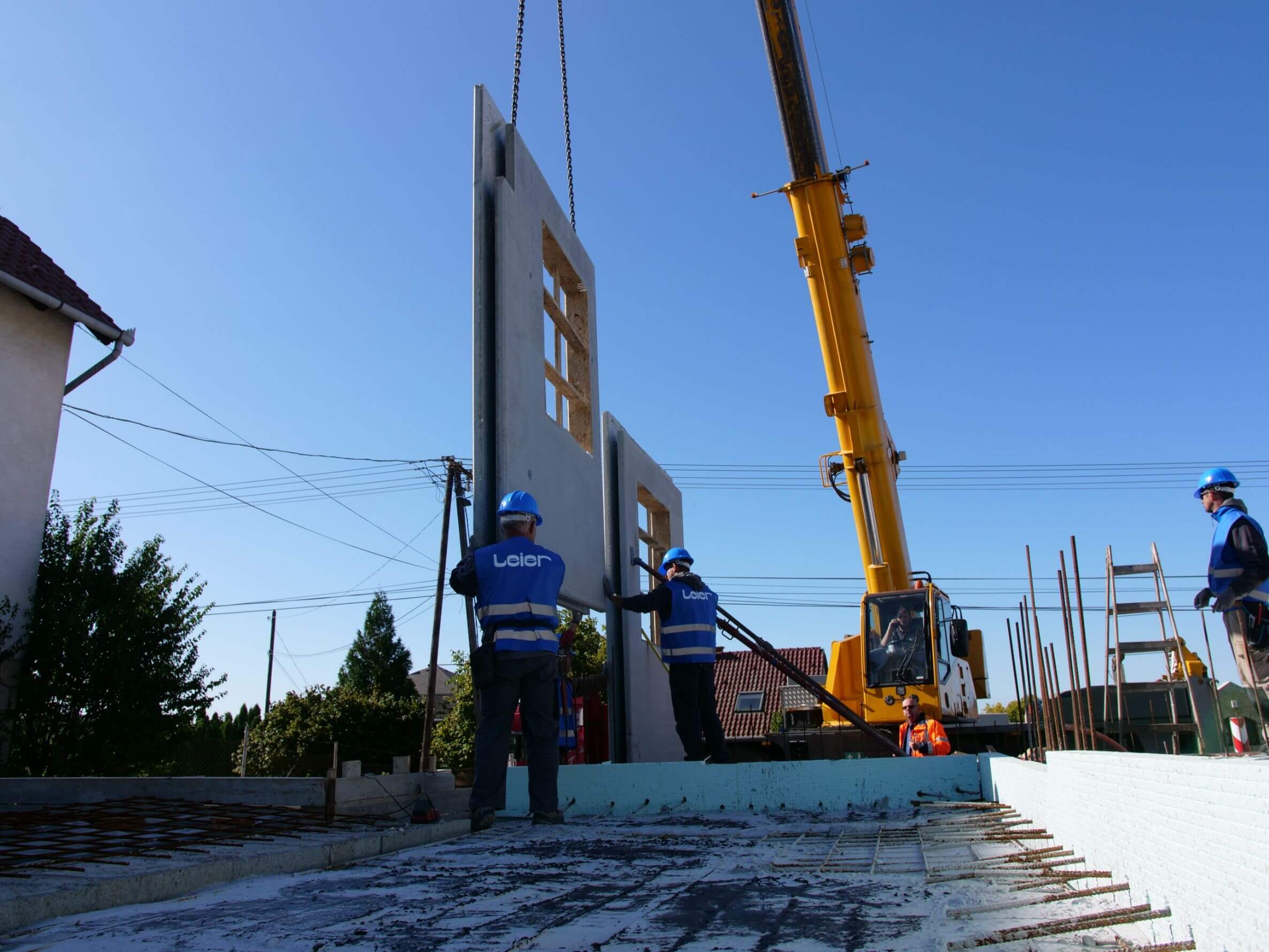 Az általánosnál jóval gyorsabban épül Győrújbarát egyik új családi háza. Az épületbe hamarosan beköltöző tulajdonos a Leier Kft. alkalmazottja, aki munkája során számos alkalommal találkozott a cég modulárisan előregyártott kéregfal- és födémelemeivel és a magyar építőipari szegmens munkaerőhiányával is.