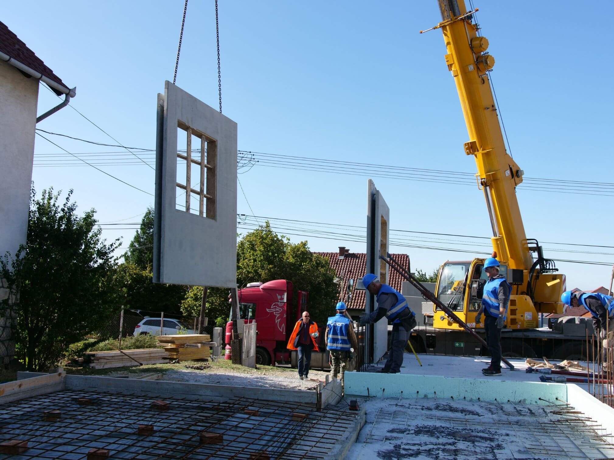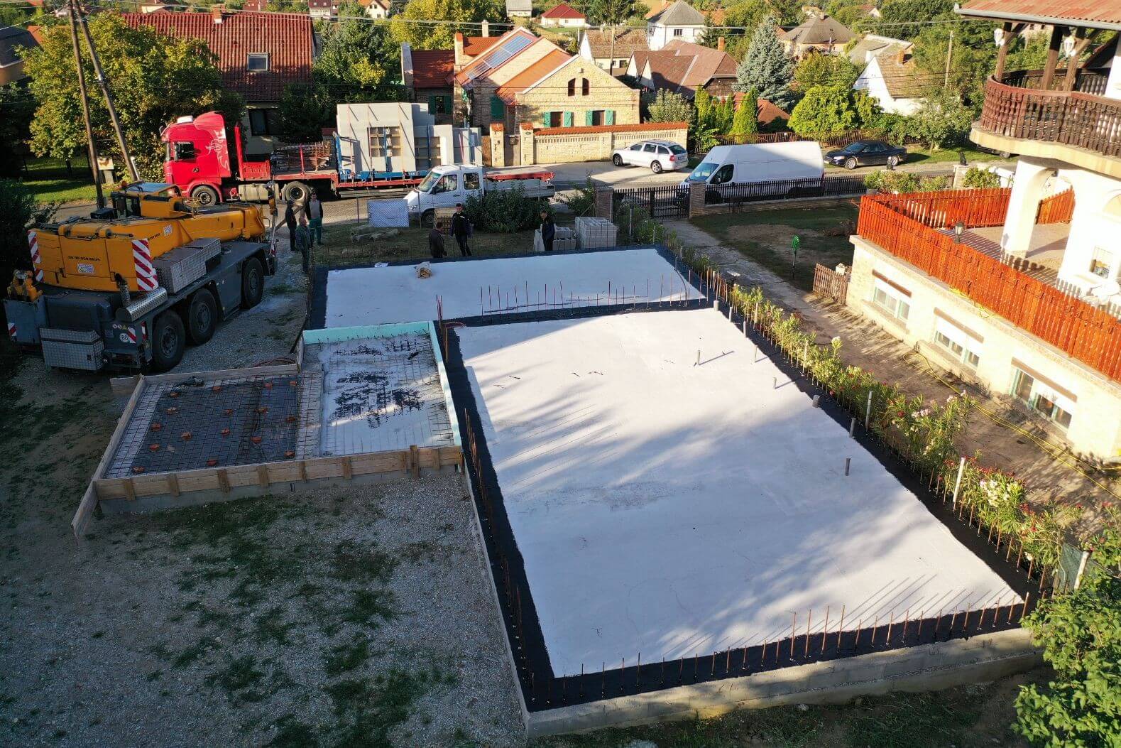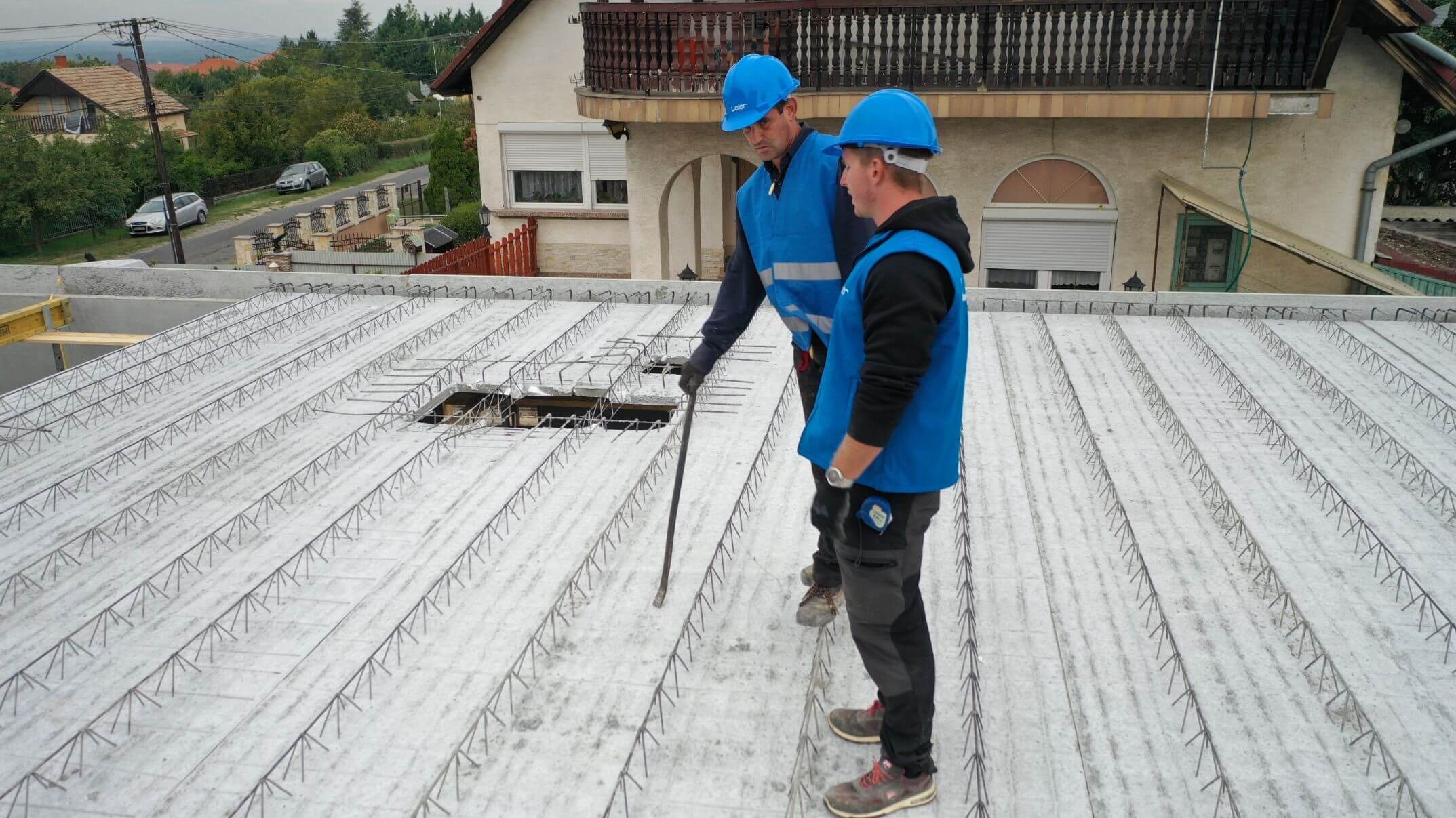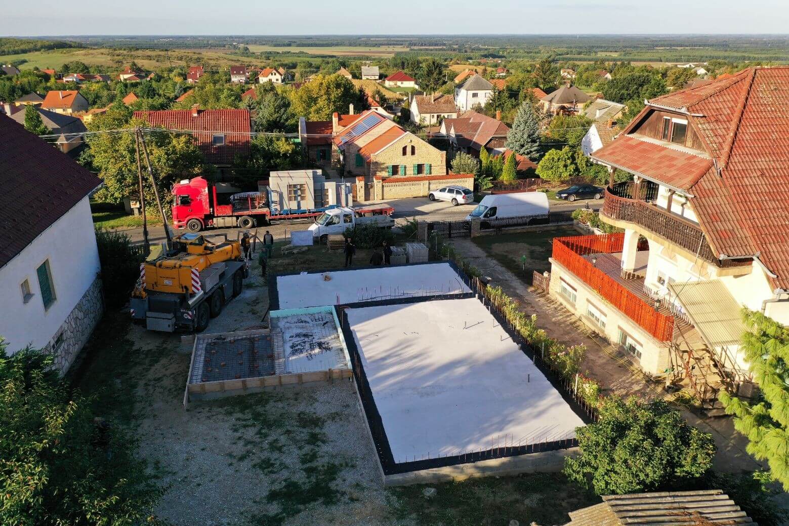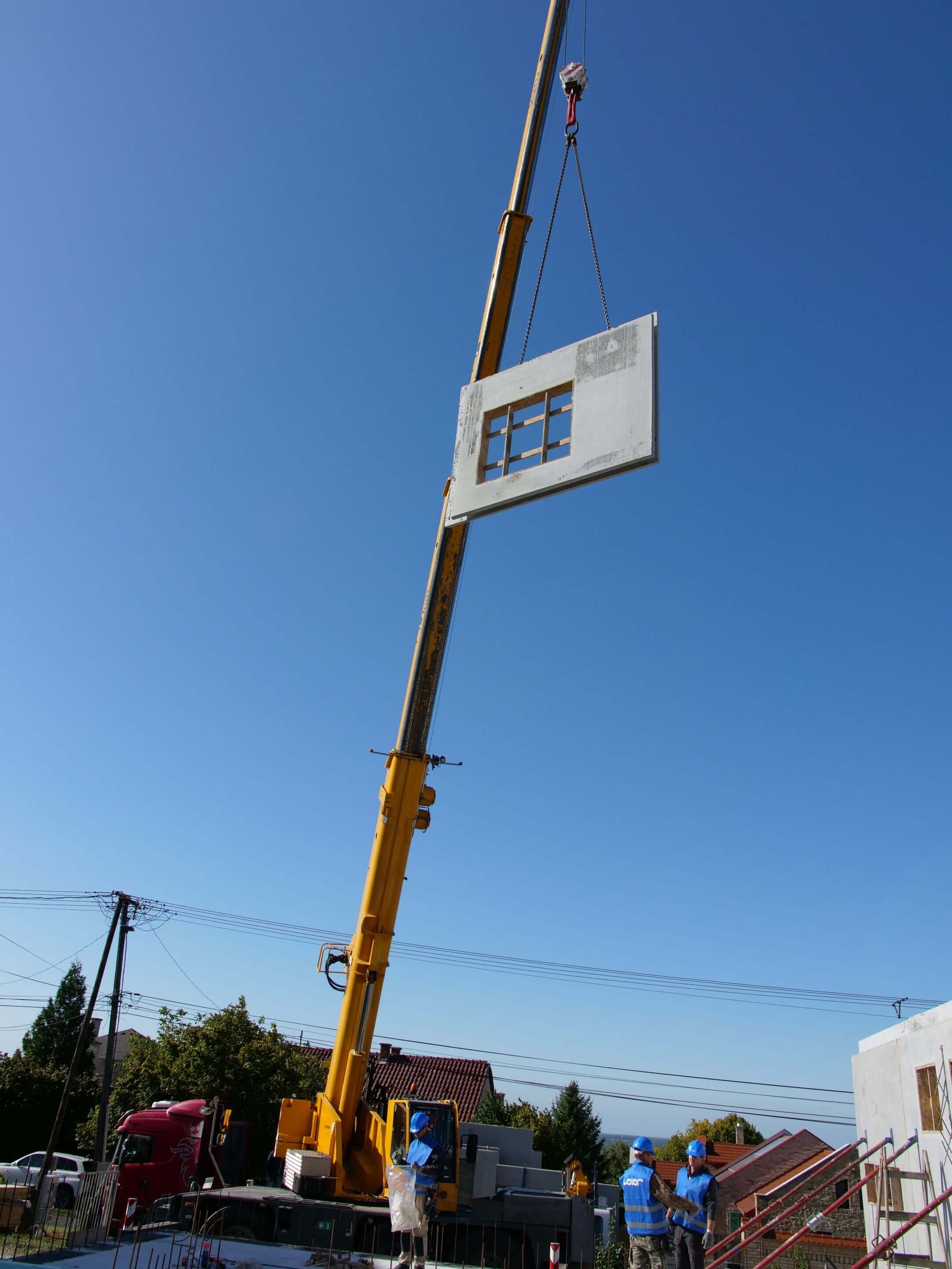 Az általánosnál jóval gyorsabban épül Győrújbarát egyik új családi háza. Az épületbe hamarosan beköltöző tulajdonos a Leier Kft. alkalmazottja, aki munkája során számos alkalommal találkozott a cég modulárisan előregyártott kéregfal- és födémelemeivel és a magyar építőipari szegmens munkaerőhiányával is.