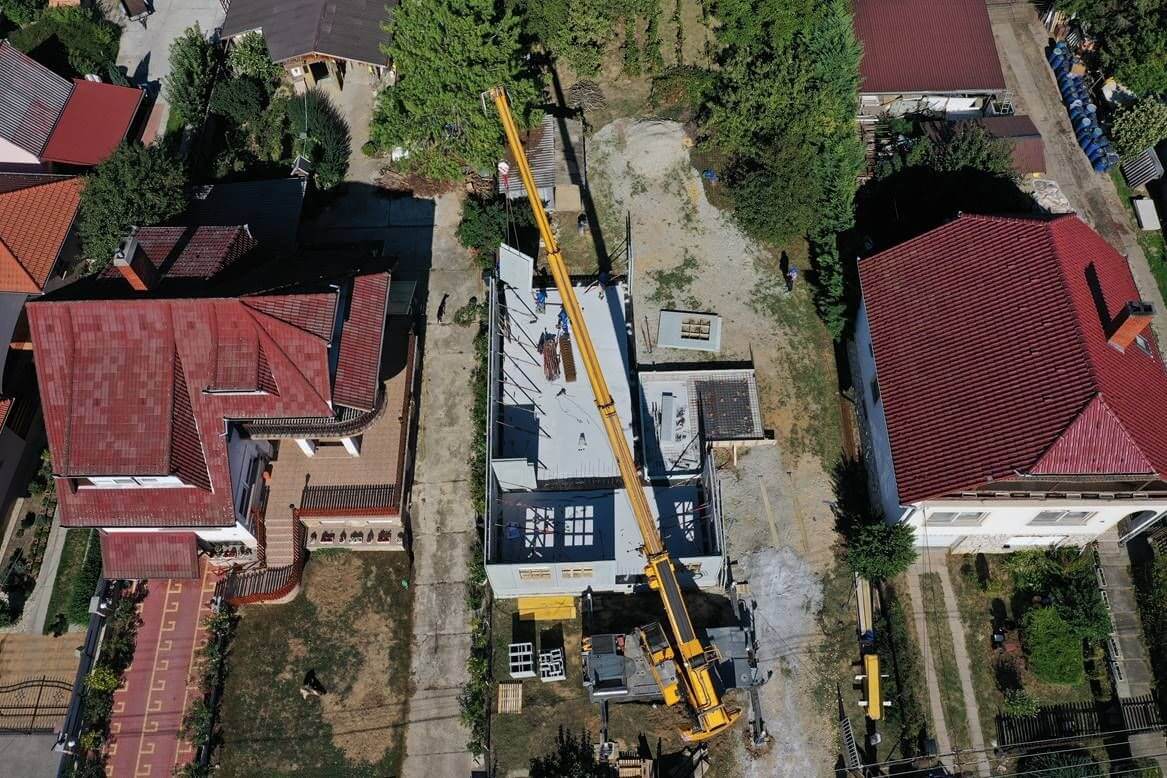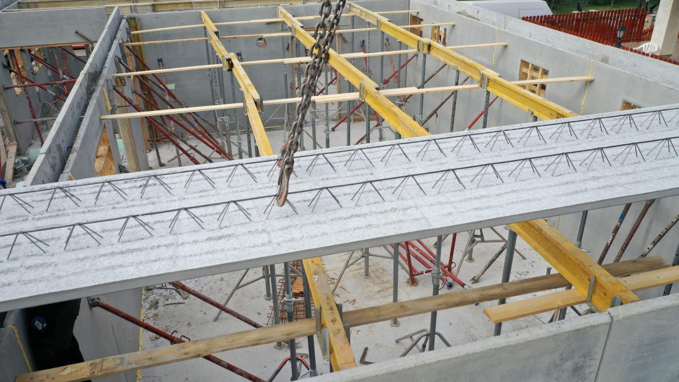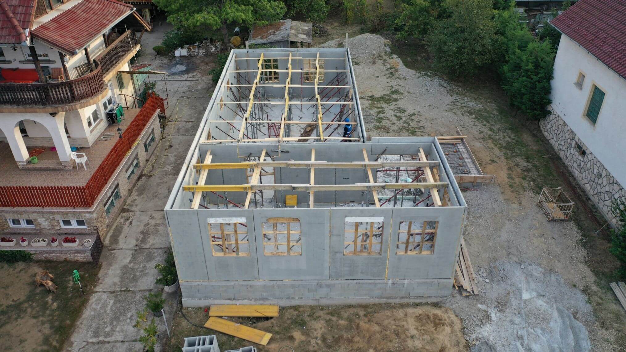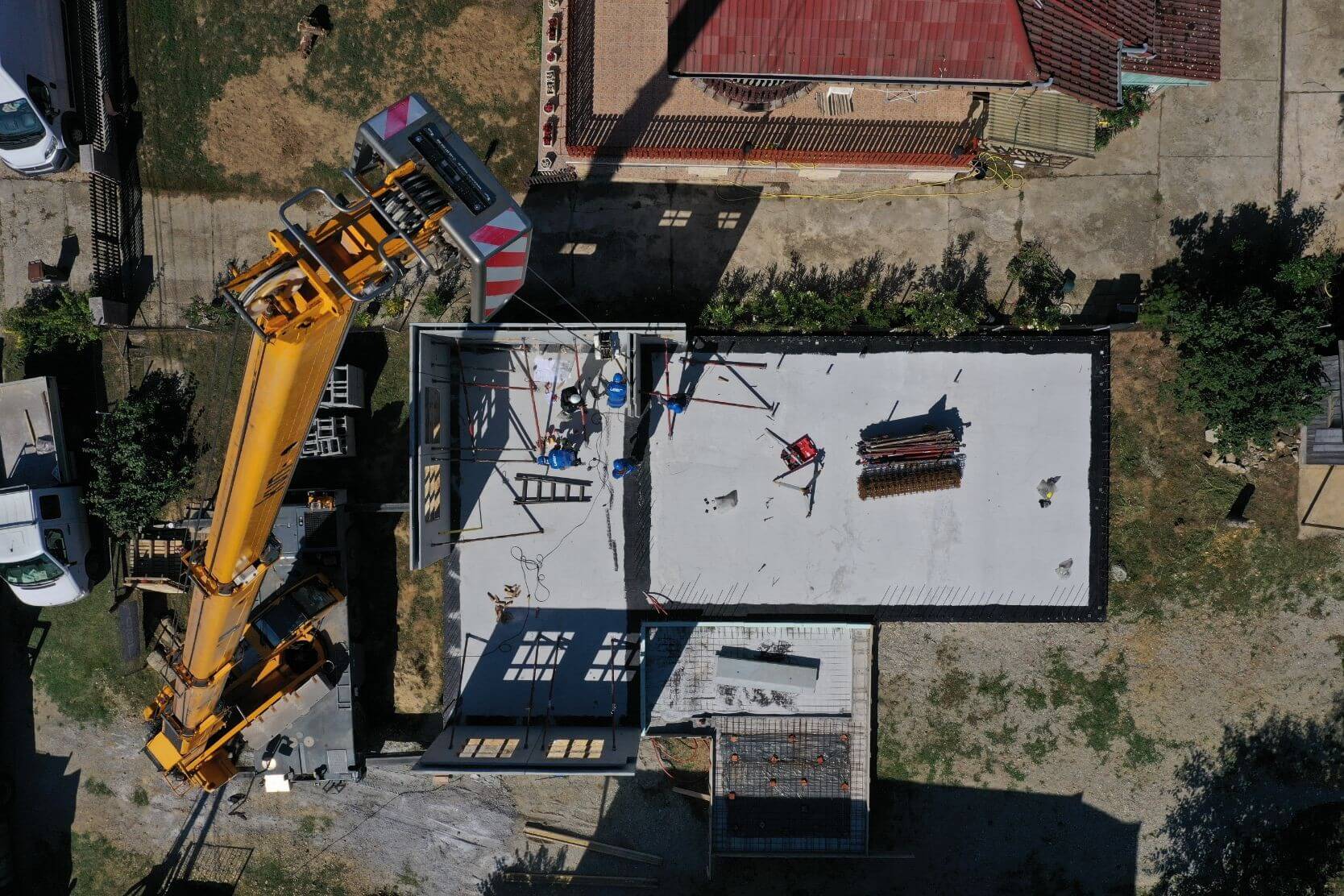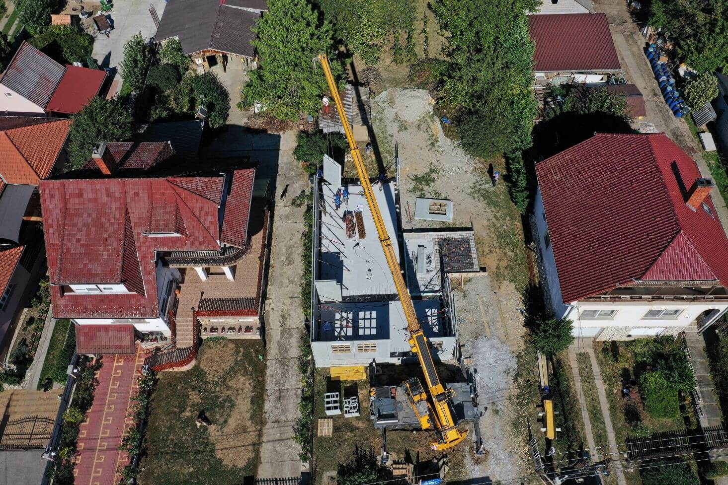 Az általánosnál jóval gyorsabban épül Győrújbarát egyik új családi háza. Az épületbe hamarosan beköltöző tulajdonos a Leier Kft. alkalmazottja, aki munkája során számos alkalommal találkozott a cég modulárisan előregyártott kéregfal- és födémelemeivel és a magyar építőipari szegmens munkaerőhiányával is.