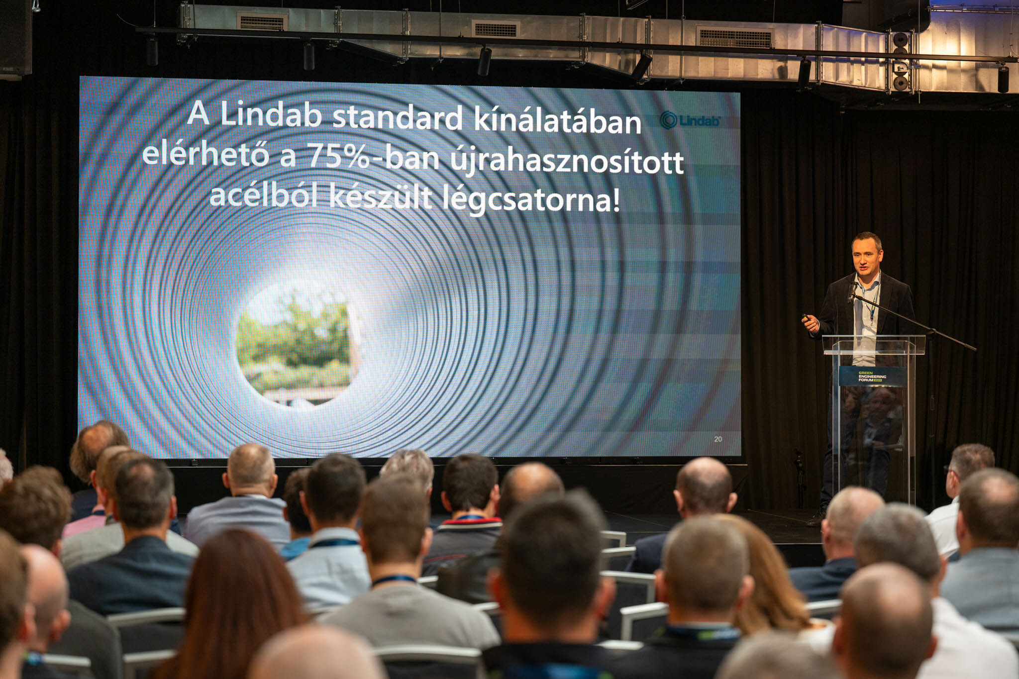 Az eseményen a Lindab kereskedelmi vezetője, Vigh Gellért egy meglehetősen aktuális kérdést feszegetett: mihez kezdhetünk az energiapazarló légtechnikai rendszerekkel?