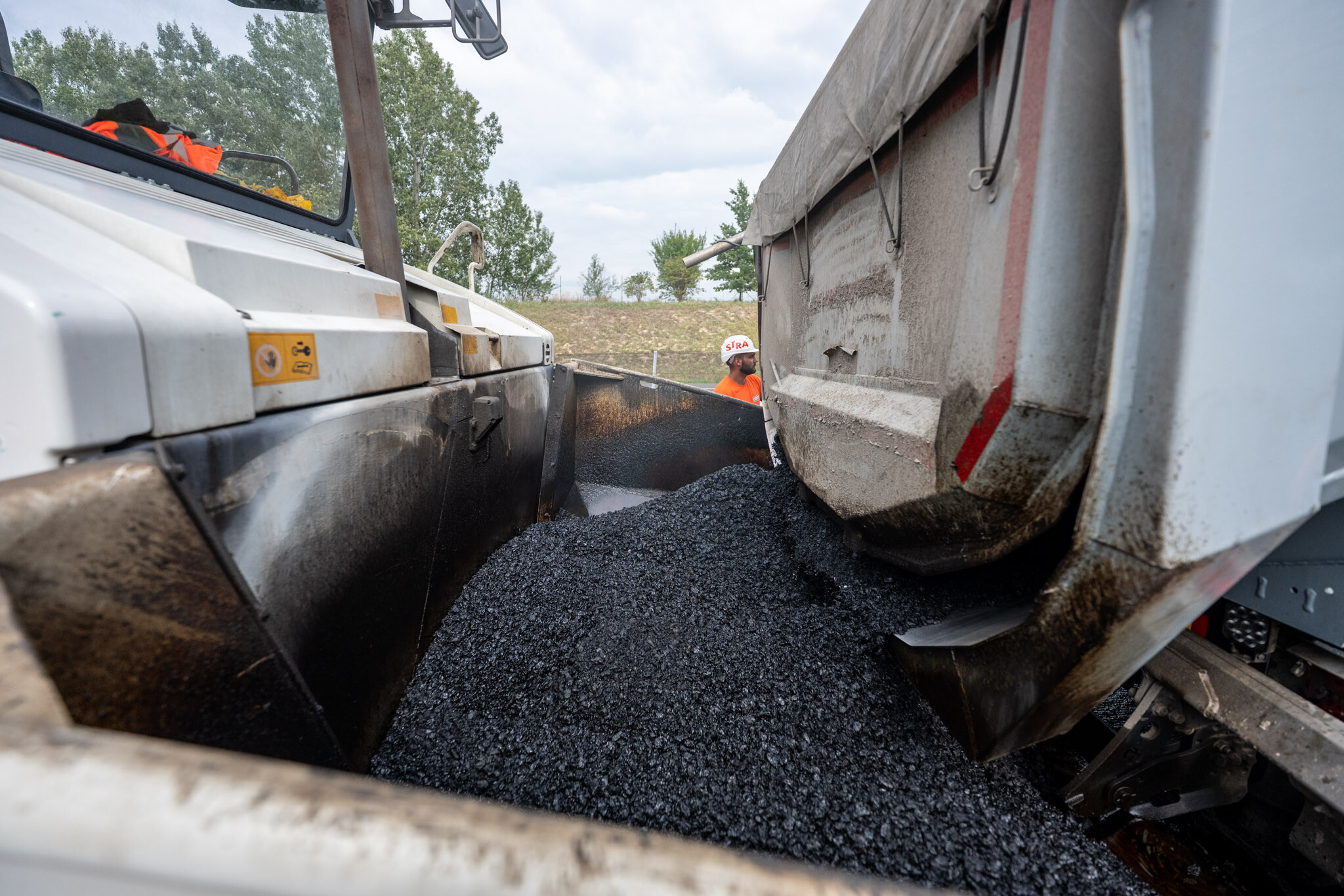 Az M60-as bal pályán a 9+500-6+700 kilométerszelvényei között a kopóréteg marása után, ahol szükséges volt a kötőréteget is kicserélték. A WMA, vagyis a mérsékelten meleg aszfalt 700 méteren került a kötőrétegbe, 1400 méteren pedig a kopórétegbe.
